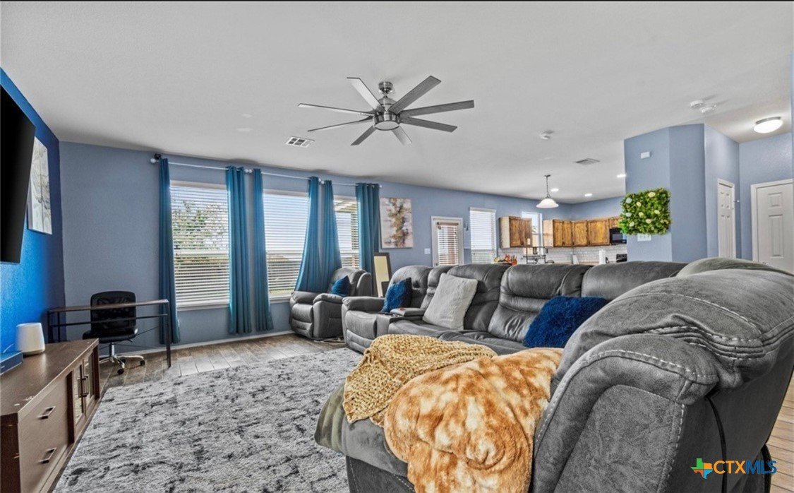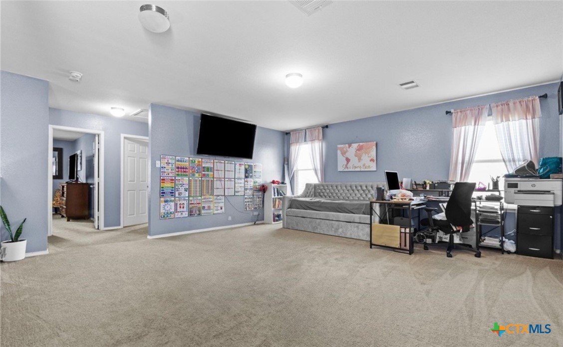 Well-maintained two-story home in a convenient Killeen location close to Fort Hood, shopping, and restaurants. All bedrooms are located upstairs, including a large primary suite. The main level offers an open layout with a spacious living area and a modern kitchen featuring a large island, perfect for entertaining. Enjoy outdoor living with a covered patio, open stone patio with fire pit, privacy-fenced yard, and storage shed. Upgrades include tile flooring, carpet in bedrooms, "brand new roof 2025", and thoughtful finishes throughout.