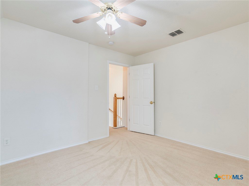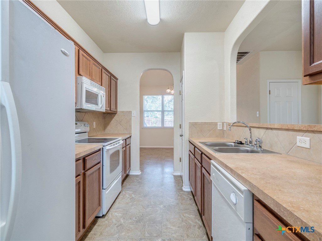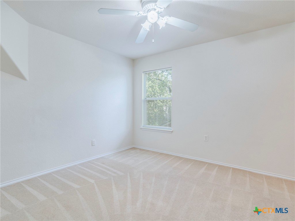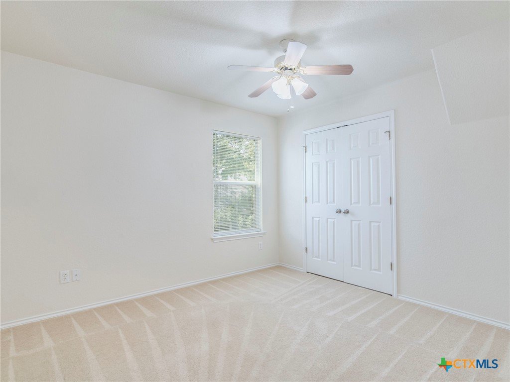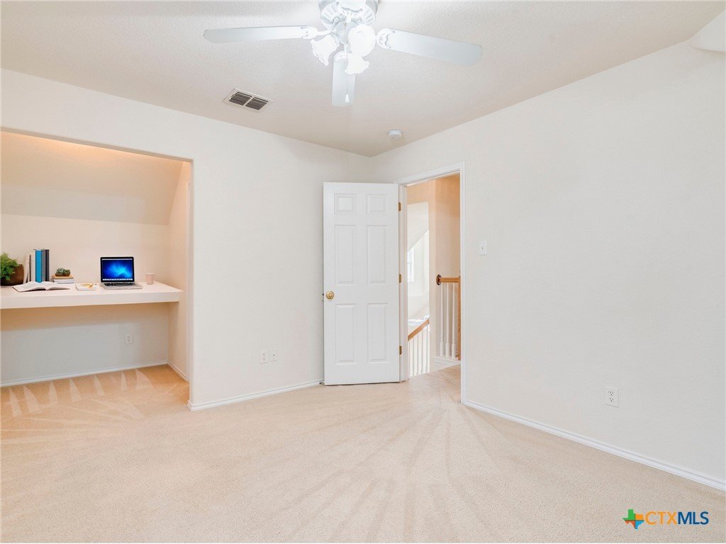 Close to Texas State! This freshly painted home offers a great mix of updates and practical features. Inside, you’ll find a light and bright kitchen with a recently replaced disposal and sink, white appliances, and plenty of storage. The living area features a cozy wood-burning fireplace, while the first floor primary retreat includes two closets and a full en suite bathroom with garden tub, separate shower and extended counter for vanity space. One of the upstairs bedrooms has its own walk-in closet and a built-in desk, perfect for studying or working from home. Interior HVAC components just replaced in 2024. Fresh blinds installed throughout the home. Outside, large trees offer great shade and curb appeal. Back fence will be installed soon as well!