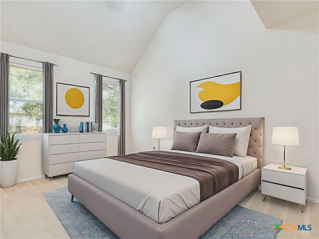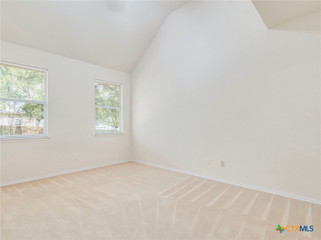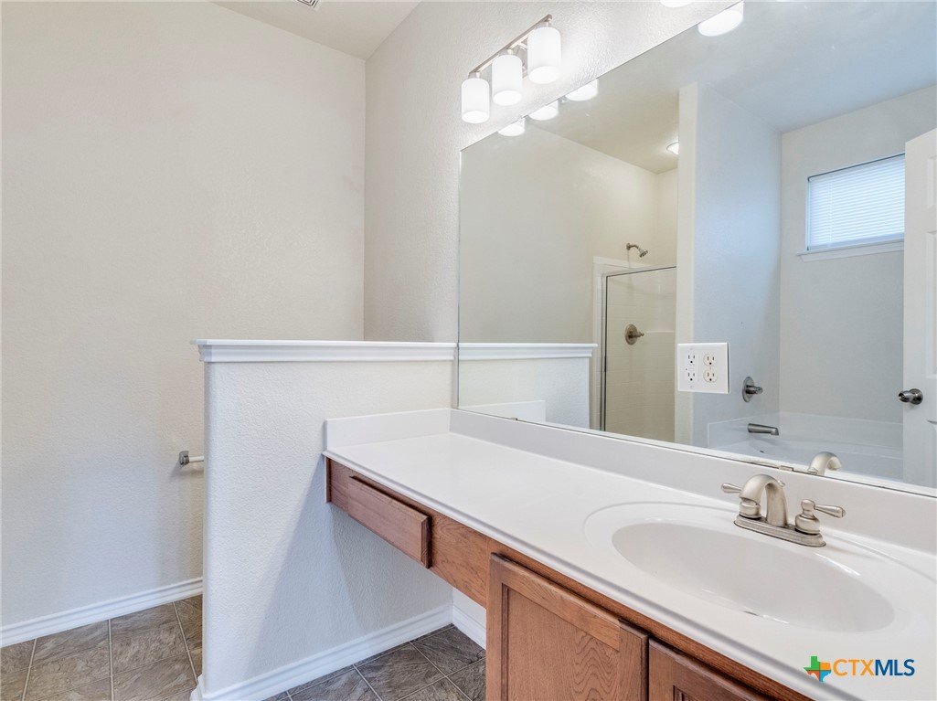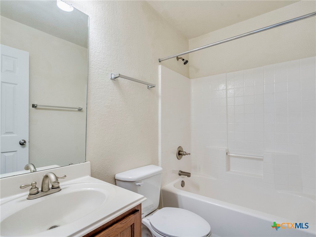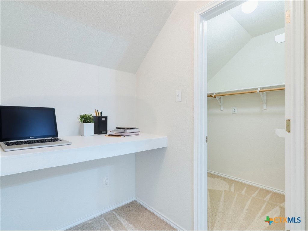 Close to Texas State! This freshly painted home offers a great mix of updates and practical features. Inside, you’ll find a light and bright kitchen with a recently replaced disposal and sink, white appliances, and plenty of storage. The living area features a cozy wood-burning fireplace, while the first floor primary retreat includes two closets and a full en suite bathroom with garden tub, separate shower and extended counter for vanity space. One of the upstairs bedrooms has its own walk-in closet and a built-in desk, perfect for studying or working from home. Interior HVAC components just replaced in 2024. Fresh blinds installed throughout the home. Outside, large trees offer great shade and curb appeal. Back fence will be installed soon as well!