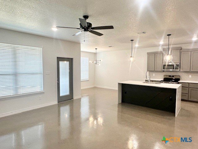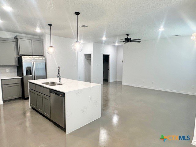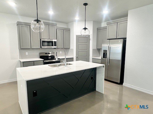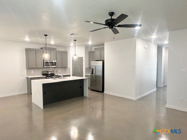 Welcome to this charming 3 bedroom, 2-bathroom home, designed with a modern aesthetic. Once you take in the beauty of the exterior, you will be welcomed into an open floor plan that contains 1500 square feet of living space. The kitchen showcases stainless steel appliances, creating a sleek and modern look, perfect for preparing delicious meals. The polished concrete floors throughout the home offer durability and easy maintenance, while also contributing to its modern appeal. With its modern design, custom cabinets, stainless steel appliances, sprinkler system, and privacy fence, this home seamlessly combines style, functionality, and comfort. It's the perfect place to create lasting memories and call your own.