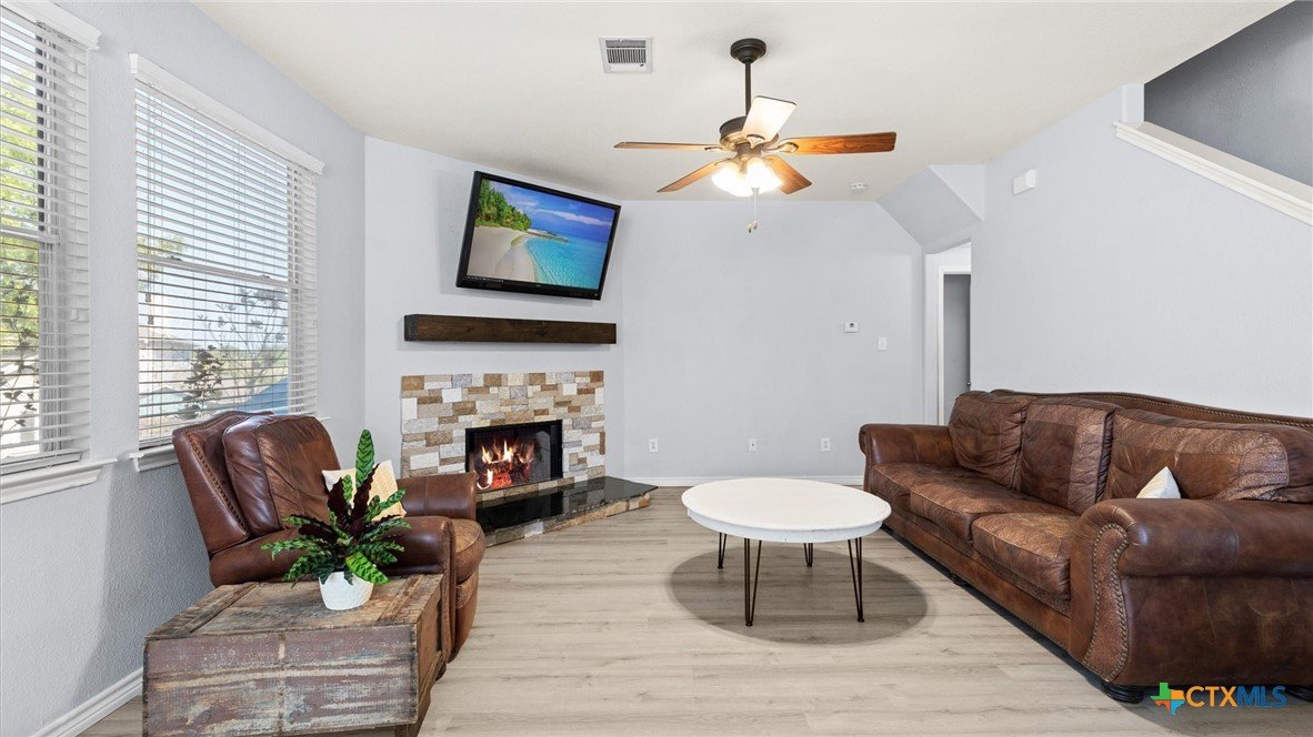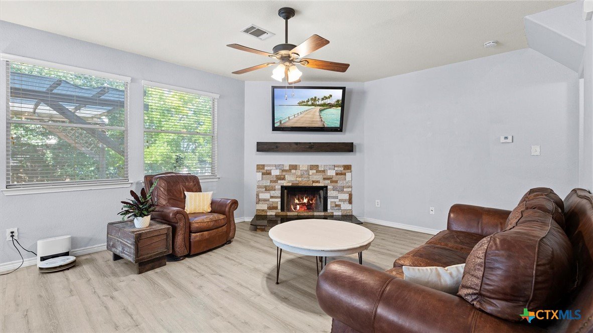 Don’t miss this 4-bedroom, 2.5-bath home just steps from Fischer Park and within walking distance of the elementary school! Inside, you’ll find a welcoming entry with barn doors leading to a private home office, a cozy living room with a wood-burning fireplace, and an open, remodeled kitchen. The main-level primary suite offers a custom walk-in closet and private bath. Upstairs, enjoy a large game room, three additional bedrooms, and a full bath. Outside, relax on the oversized deck and take advantage of the Tuff Shed for extra storage. Best of all, Fischer Park is right around the corner—complete with scenic trails for jogging, walking, and biking, plus a splash pad, playground, and fishing ponds. Best of all: NO HOA!