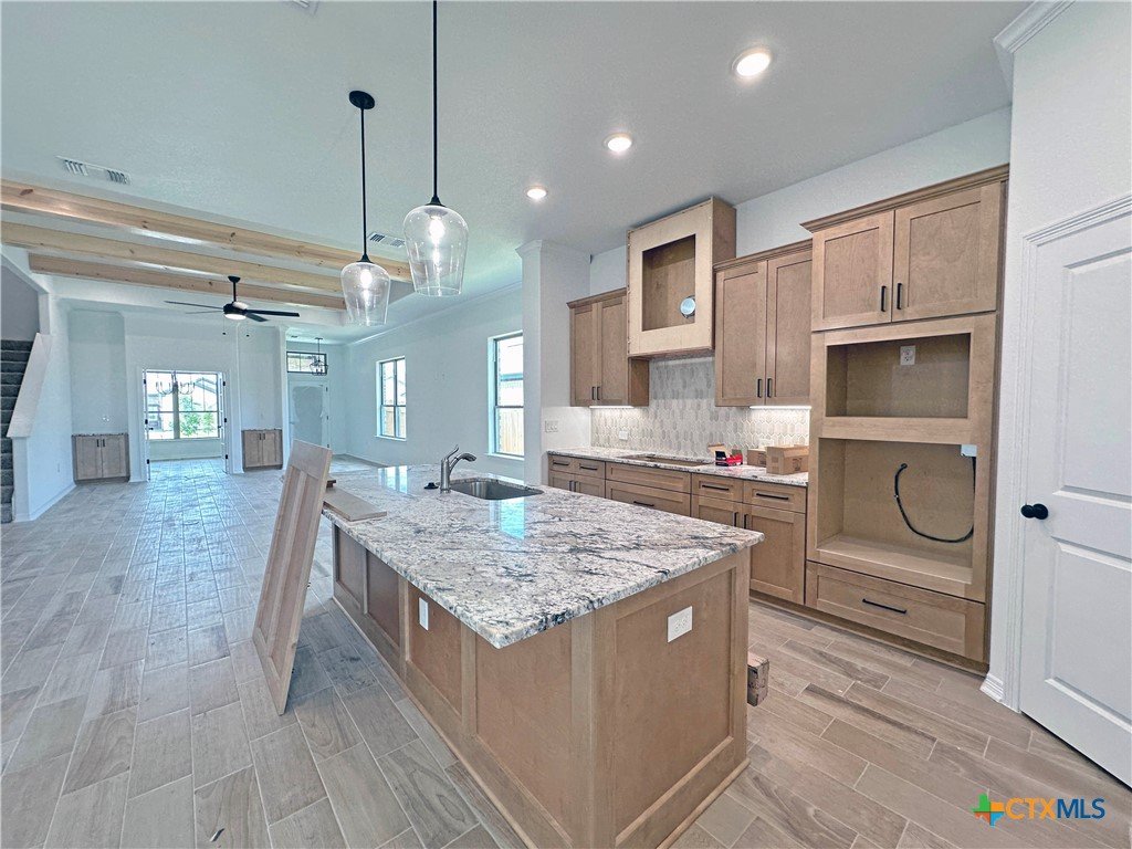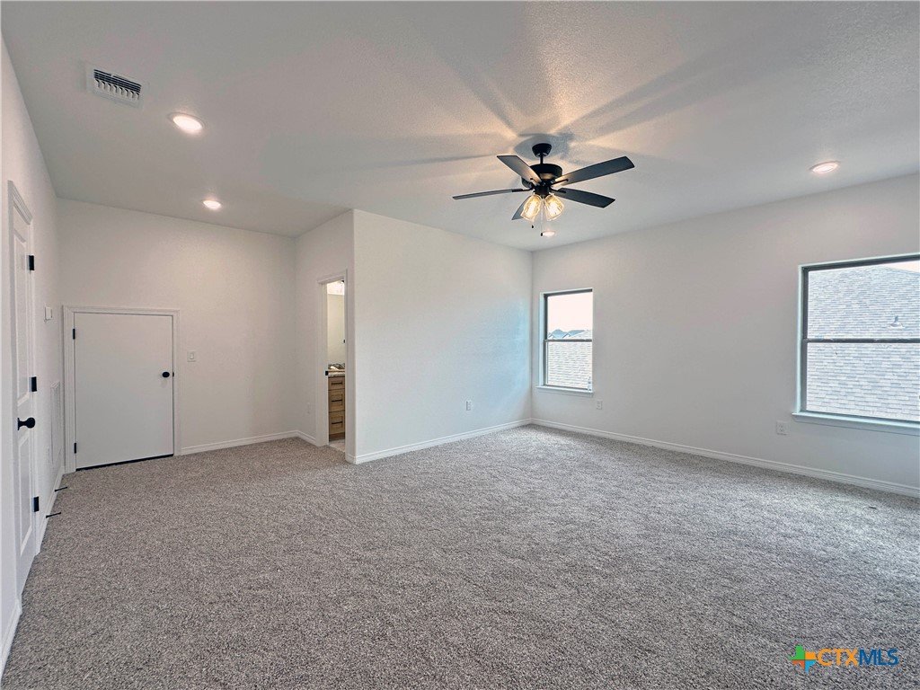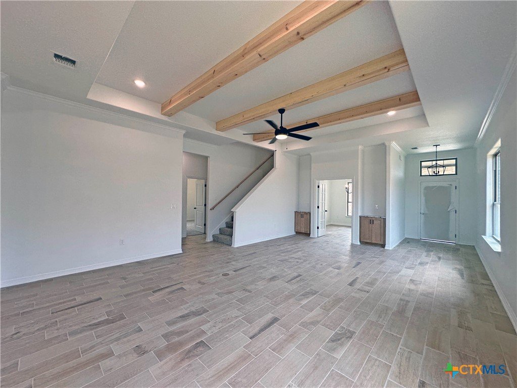 The Wimberley Bonus | Carothers Executive Homes – Mesa Ridge With over 2,500 sq. ft., this spacious plan features 4 bedrooms, 3 baths, a dedicated study, and a gourmet kitchen with a massive island, GE appliances, and soft-close custom cabinetry. Beamed ceilings add charm to the flexible living space, while the luxurious master suite includes a walk-in shower and oversized closet. Upstairs offers a large 4th bedroom, dual closets, and attic storage—perfect for a growing family. Located near Lake Belton, shopping, and top-rated Belton ISD schools.
