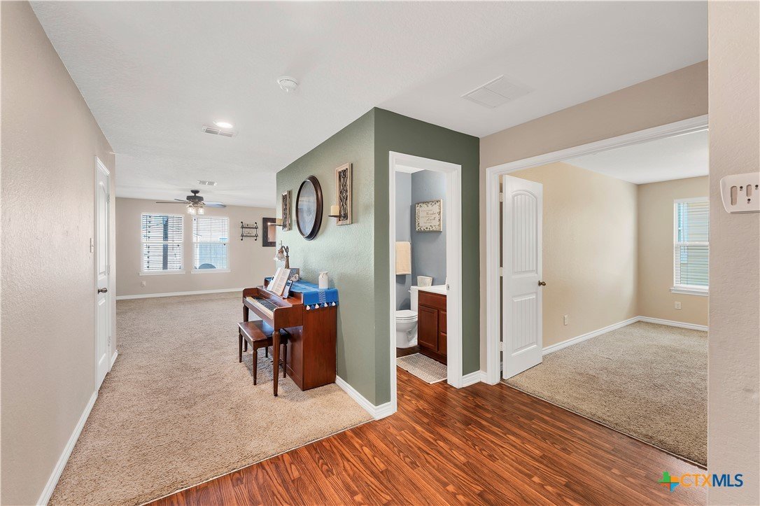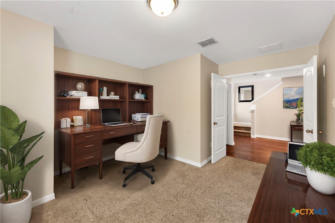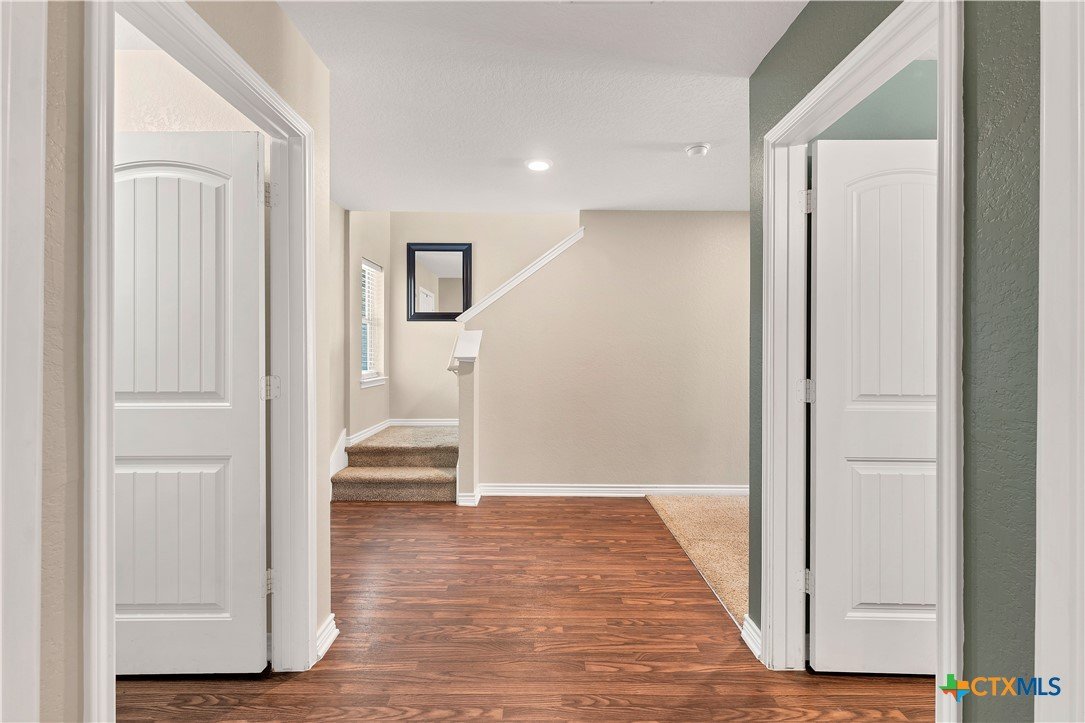 PRICE Improvement!!! OPTION 4th BEDROOM (downstairs). WALKING DISTANCE TO POOL & Schools! Welcome to 2027 Shire Meadows. This captivating residence boasts 3 generous bedrooms (possible 4th) and two well-appointed bathrooms, along with a convenient half bath on the lower level with a flex space or 4th bedroom. This home is also equipped with multiple closets, providing abundant storage solutions throughout. You’ll find the downstairs half bath includes additional storage space, while the bathrooms feature a convenient bathtub and shower combination. The master bathroom boasts a double vanity, adding a touch of luxury to your daily routine. Step outside to discover a Texas-sized covered back patio, ideal for outdoor gatherings and relaxation. The covered front patio provides a warm welcome to guests as they arrive. Noteworthy upgrades include stylish lighting fixtures, window blinds, and a garage door opener.This home offers large bedrooms, expansive closets, and a thoughtful layout that prioritizes both functionality and elegance. The spacious walk-in laundry room enhances functionality, while the two-car garage ensures ample parking space and storage. The downstairs flex room is a multifaceted space; whether you choose to use it as an office, playroom, or even convert it into a fourth bedroom. The main living areas—comprising the living room and dining room—are bathed in natural light, creating an inviting atmosphere for entertaining friends and family. With its desirable location, modern amenities, and potential for personalization, 2027 Shire Meadows stands as a remarkable opportunity for any buyer. In addition to the immediate community amenities of a pool and park, you will find yourself just moments away from the vibrant Creekside Shopping Center. Avariety of restaurants, entertainment venues, boutique shops, and grocery stores. The easy access to I35 makes commuting a breeze. Prime location within the Comal​​‌​​​​‌​​‌‌​‌‌‌​‌​​​​‌​​​‌‌​‌​​ ISD.