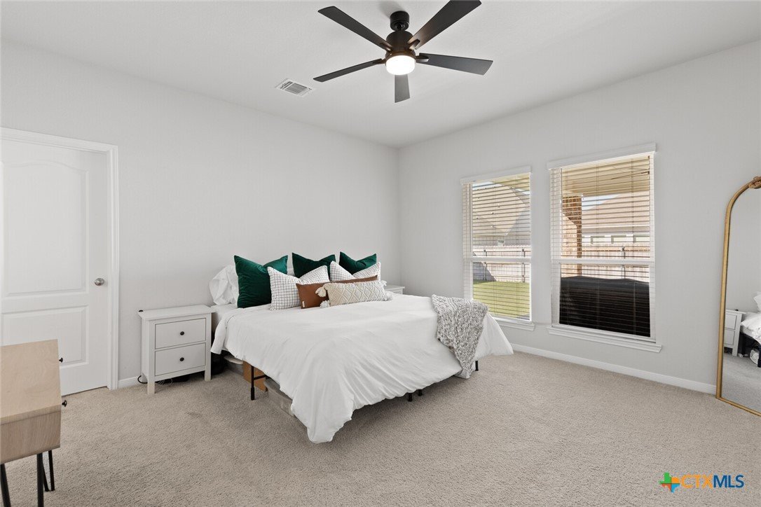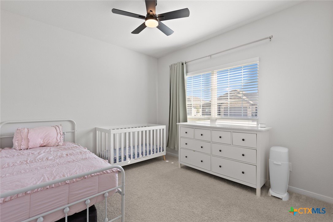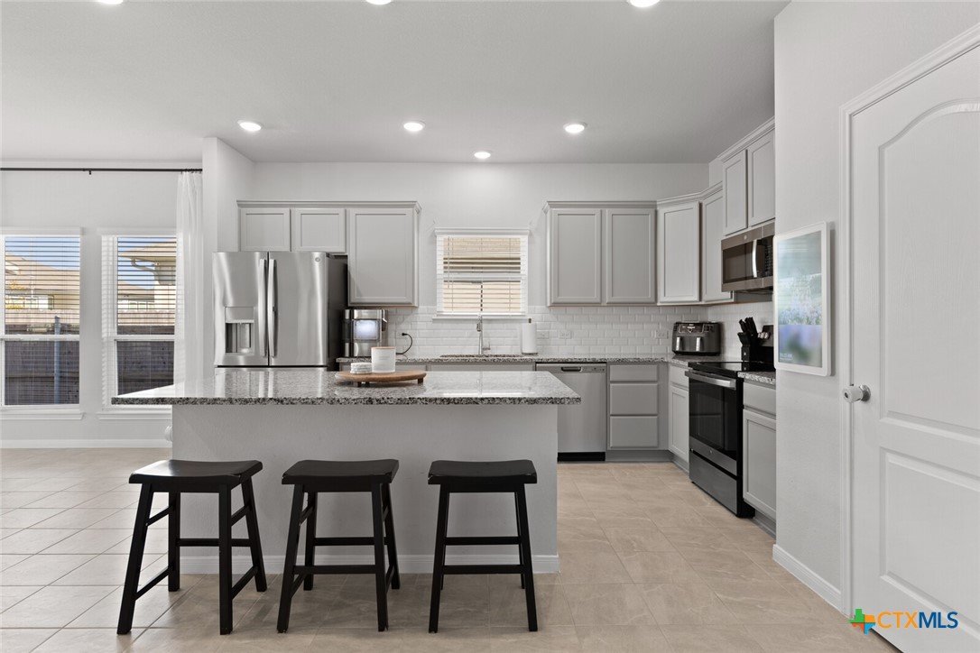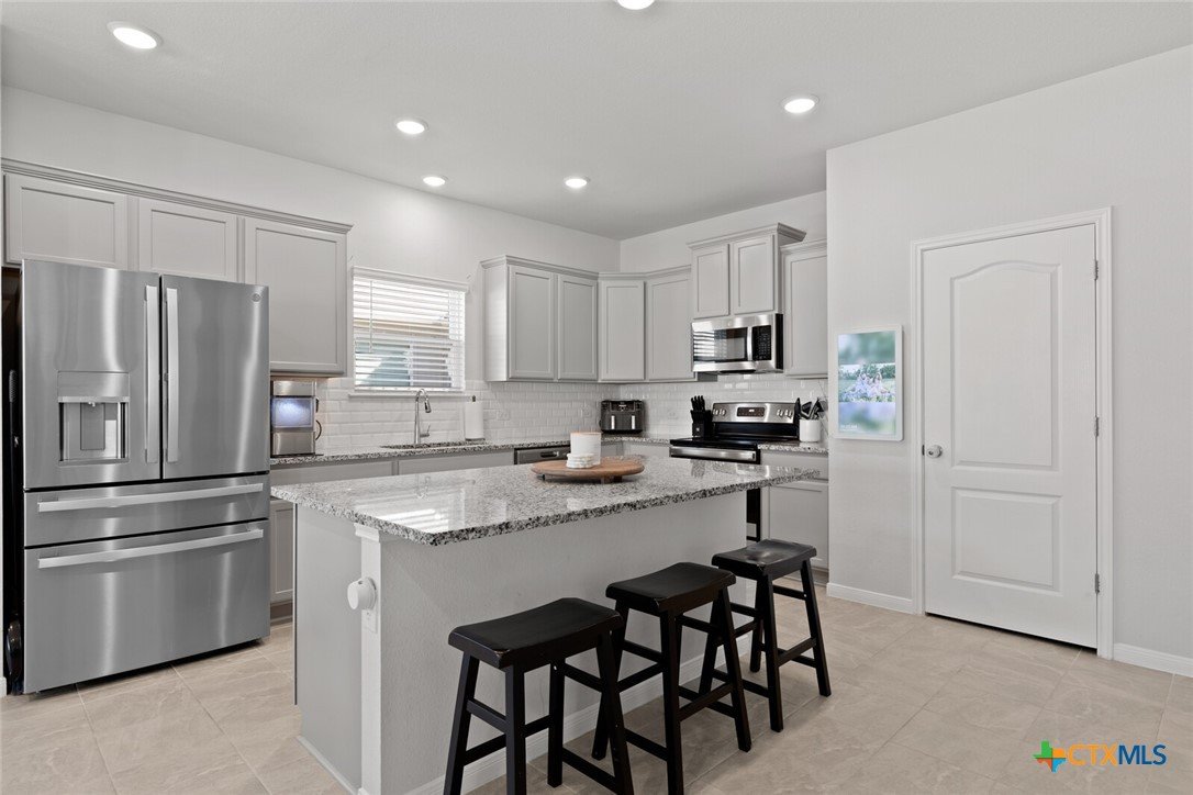 IMMACULATE 2023-BUILT, ONE-STORY HOME IN MESA RIDGE AND HIGHLY SOUGHT-AFTER BELTON ISD! This light and bright 4-bedroom, 2.5-bath beauty offers a spacious open floor plan and standout curb appeal with a brick-and-stone craftsman exterior, wide driveway, and rare 3-car garage. Inside, a neutral color palette pairs perfectly with tile flooring throughout the main living areas and plush carpet in the bedrooms. The showstopping kitchen is designed for everyday living and entertaining—featuring an abundance of cabinetry, granite countertops, subway tile backsplash, stainless steel appliances, and a dedicated working island with bar seating, all illuminated by ample recessed lighting. The generous dining area provides plenty of space for hosting, while the living room is flooded with natural light thanks to expansive west- and south-facing windows. The spacious primary suite opens into a double vanity bath complete with granite countertops, a private toilet room, soaking tub, and step-in shower. Secondary bedrooms are nicely sized and conveniently located near the laundry room and guest bath. All bedrooms are equipped with ceiling fans for maximum comfort! Enjoy easy outdoor living from the large, fully covered back patio complete with an installed sunshade, two ceiling fans, and a full gutter system for rainy days. The private backyard is fully irrigated and offers plenty of room to run, play, and relax. This beautiful home on a cul-de-sac street checks all the boxes—don’t miss it!***Target move-out date beginning of June.***