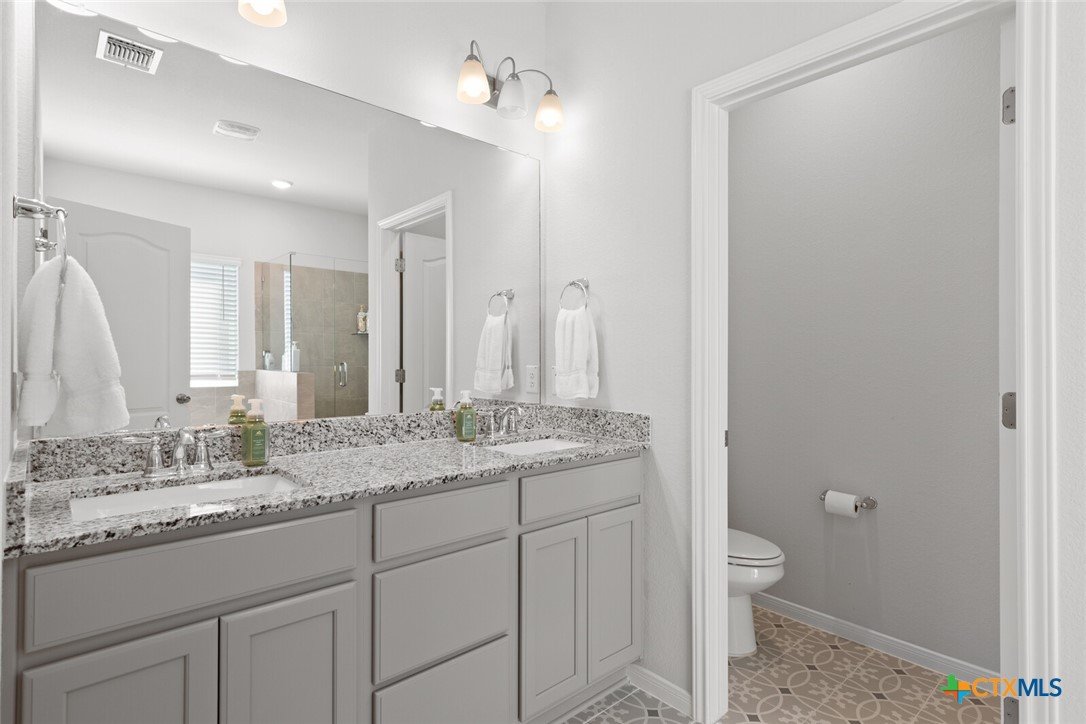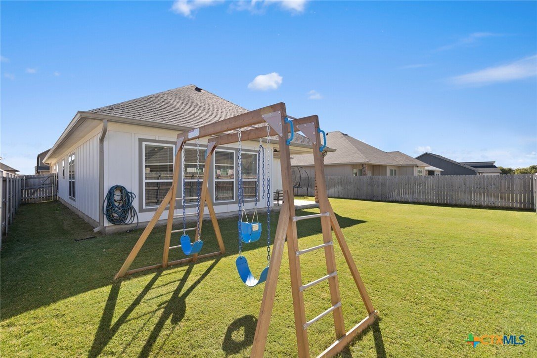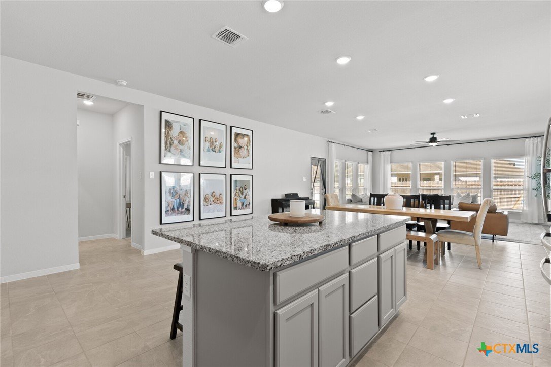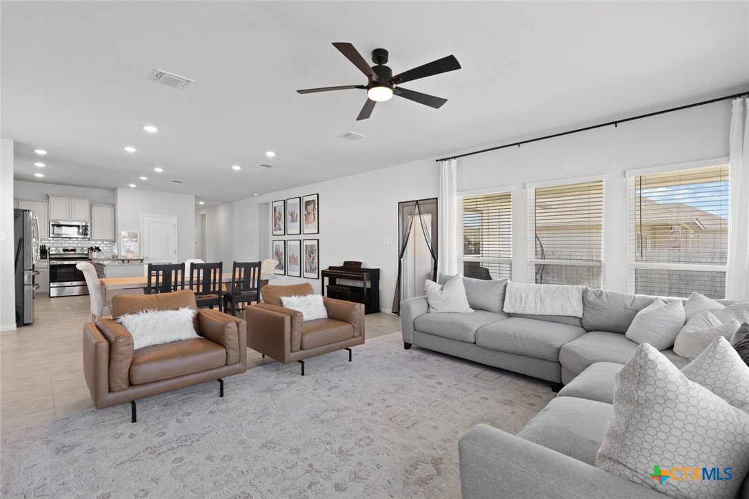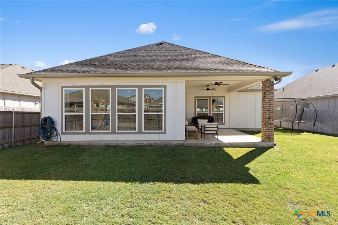 IMMACULATE 2023-BUILT, ONE-STORY HOME IN MESA RIDGE AND HIGHLY SOUGHT-AFTER BELTON ISD! This light and bright 4-bedroom, 2.5-bath beauty offers a spacious open floor plan and standout curb appeal with a brick-and-stone craftsman exterior, wide driveway, and rare 3-car garage. Inside, a neutral color palette pairs perfectly with tile flooring throughout the main living areas and plush carpet in the bedrooms. The showstopping kitchen is designed for everyday living and entertaining—featuring an abundance of cabinetry, granite countertops, subway tile backsplash, stainless steel appliances, and a dedicated working island with bar seating, all illuminated by ample recessed lighting. The generous dining area provides plenty of space for hosting, while the living room is flooded with natural light thanks to expansive west- and south-facing windows. The spacious primary suite opens into a double vanity bath complete with granite countertops, a private toilet room, soaking tub, and step-in shower. Secondary bedrooms are nicely sized and conveniently located near the laundry room and guest bath. All bedrooms are equipped with ceiling fans for maximum comfort! Enjoy easy outdoor living from the large, fully covered back patio complete with an installed sunshade, two ceiling fans, and a full gutter system for rainy days. The private backyard is fully irrigated and offers plenty of room to run, play, and relax. This beautiful home on a cul-de-sac street checks all the boxes—don’t miss it!***Target move-out date beginning of June.***