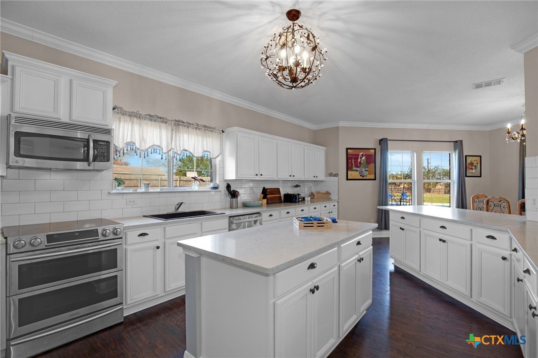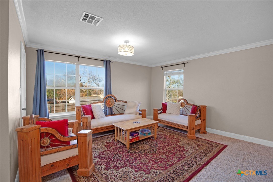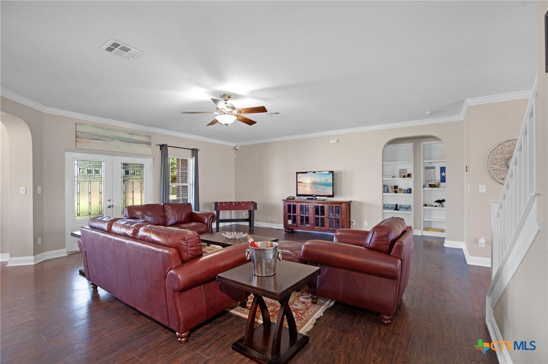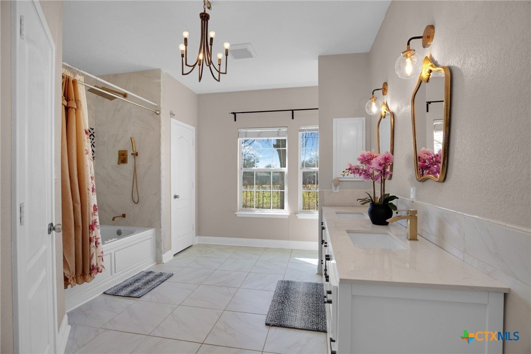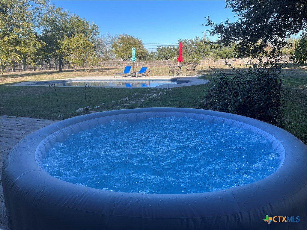 Gorgeous 2 Story 5BD/4BA/5000 sq ft Home, Outdoor Heated Pool and Hot tub sits on a 2-Acre Lot in the Highly Sought-After Arroyo Ranch. 3-car garage w huge driveway. Warm and inviting interior offers gorgeous wooden flooring downstairs & carpet upstairs. Huge, bright open floorplan connecting the kitchen, dining area, Living and Full Guest bath. Walls with windows along the kitchen, dinning & spacious office area provide beautiful views of backyard and natural light. Kitchen w plenty counter space ,cabinetry, tile backsplash & a large center island. Owners Master suite downstairs, Master Bath w double vanity and Jacuzzi and Secret Media room. Upstairs has second Living room w Game room. Second master bedroom suite w ensuite bathroom, vanity sink, glass Rain shower. 3 additional bedroom and guest bathroom located upstairs & open to Media or gaming area. Large 5 acre community park. Patio & massive backyard for relaxing or entertaining. Hays ISD. Both Furnished/Unfurnished options !!