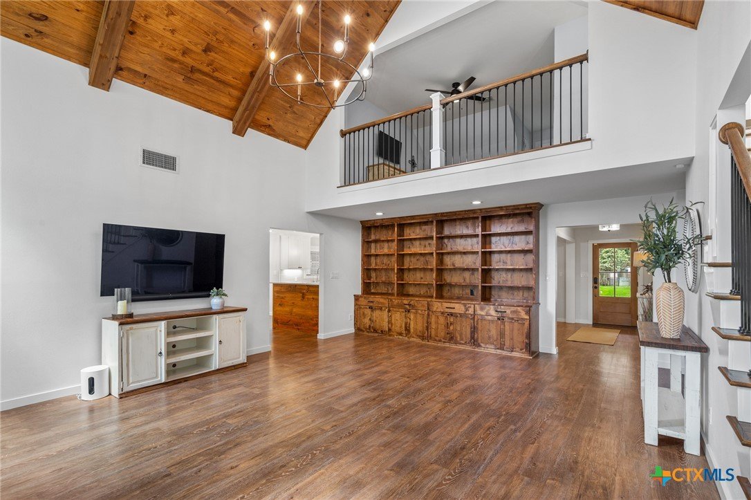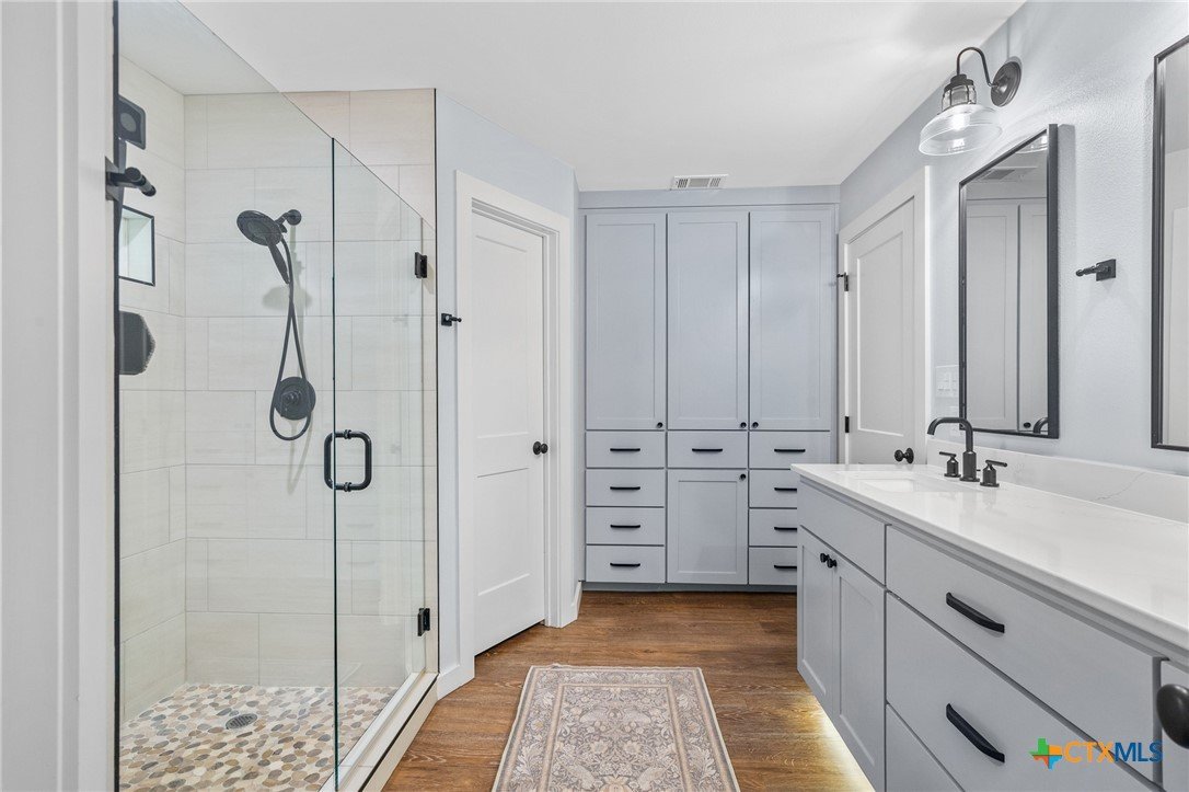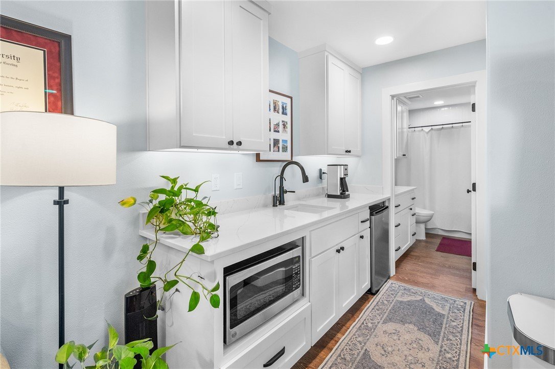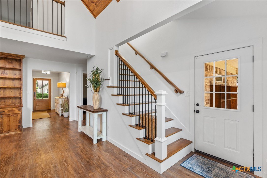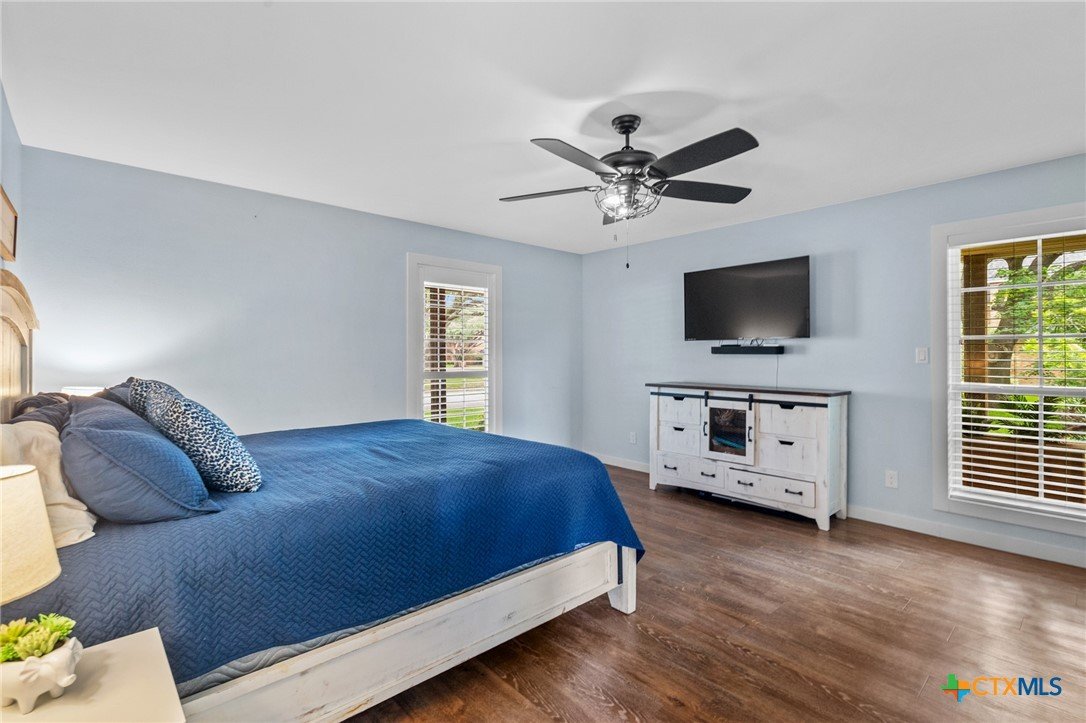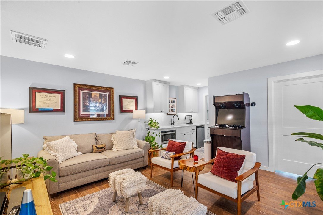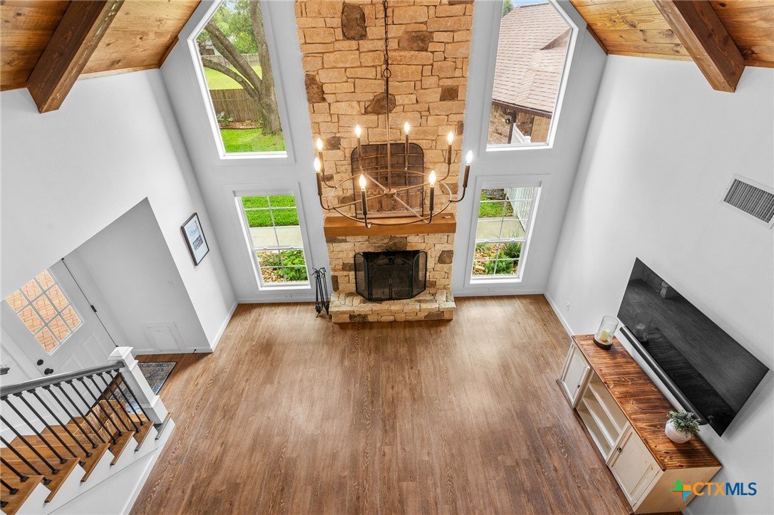 Welcome to 203 Champions Row, an exceptional property nestled in the heart of Country Club Village. Situated on three oversized, oak-shaded lots, this home offers the perfect blend of space, elegance, and comfort—inside and out. Step inside to a warm and inviting interior, where natural light fills the thoughtfully designed spaces. The show-stopping floor-to-ceiling rock fireplace serves as the dramatic centerpiece of the main living area, instantly drawing the eye and creating a cozy, welcoming atmosphere. The primary suite is conveniently located on the main floor, while upstairs features two spacious bedrooms and a flexible loft area, ideal as a game room, second living space, or reading nook. Outdoors, enjoy the ultimate in Texas-style living with a split-yard design offering two distinct outdoor spaces: One side features a custom-built pavilion with a stunning stone fireplace, built-in grill, and ample seating—perfect for entertaining year-round. Just beyond, you'll find a fully equipped mother-in-law suite, complete with a full bathroom, kitchenette, living/bedroom area, and a bonus room that can serve as a home office, storage space, or private guest room. The opposite side of the yard is a resort-style retreat with a refreshing pool, waterslide, and a pergola-covered lounge area for relaxing in the sun. From the storybook curb appeal to the thoughtfully upgraded features, this home is the definition of versatile luxury in a prime location. Don't miss your chance to tour this stunning property—schedule your private showing today!