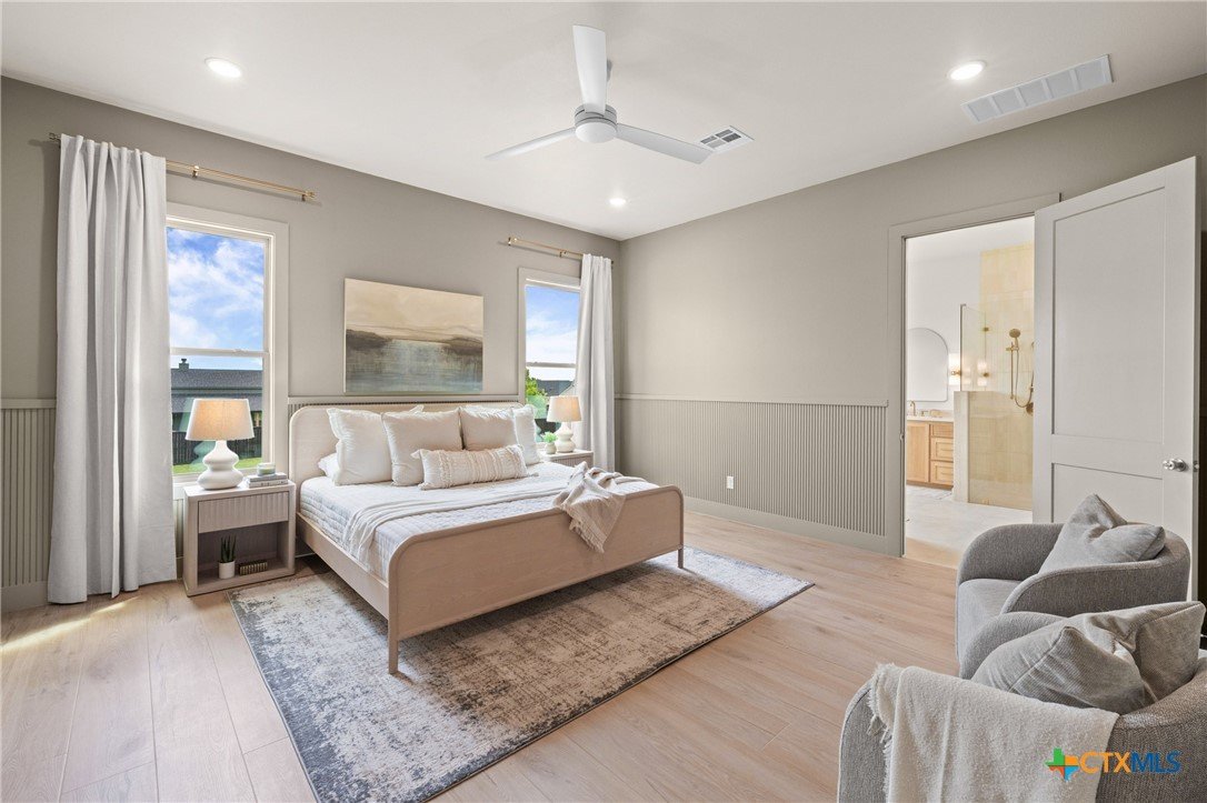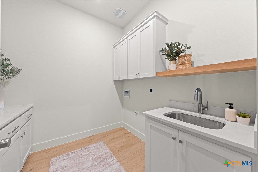Brandon Whatley Homes presents a stunning home that exudes European-inspired cottage charm, blending traditional elements with a fresh take. Its defining feature is the swooping roofline, which gracefully curves over the stone-clad entry. The popular 4-bedroom, 3½-bath plan also includes a bonus room and a spacious office. The open kitchen is ready for entertaining and features GE Café appliances, including the refrigerator. The white oak cabinetry has a unique design that is carried throughout the home. And… arches are back! Altogether, it’s a cozy, welcoming design with just a hint of old-world European flair, located in a rural neighborhood just outside of Belton, within Belton ISD.