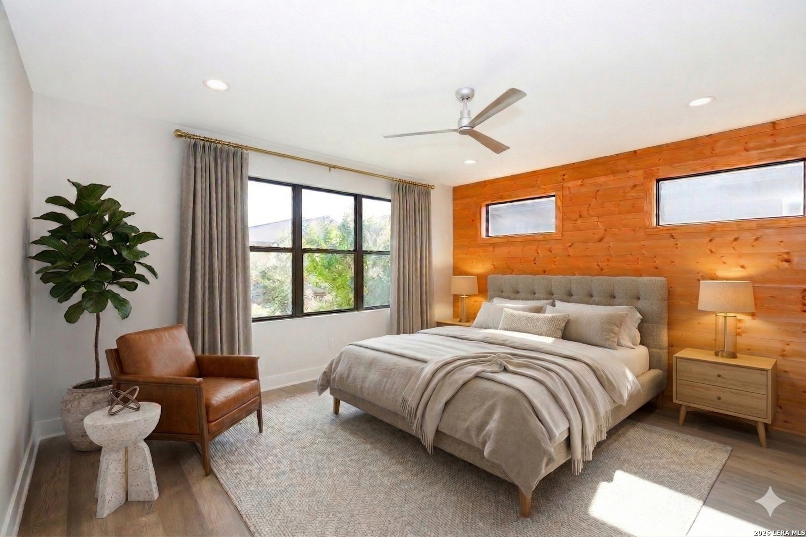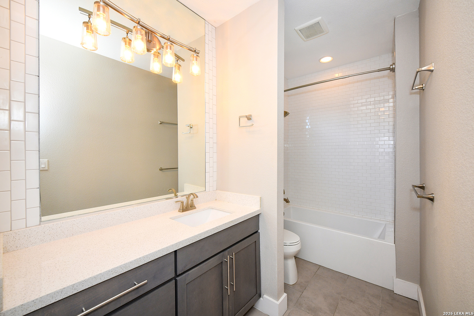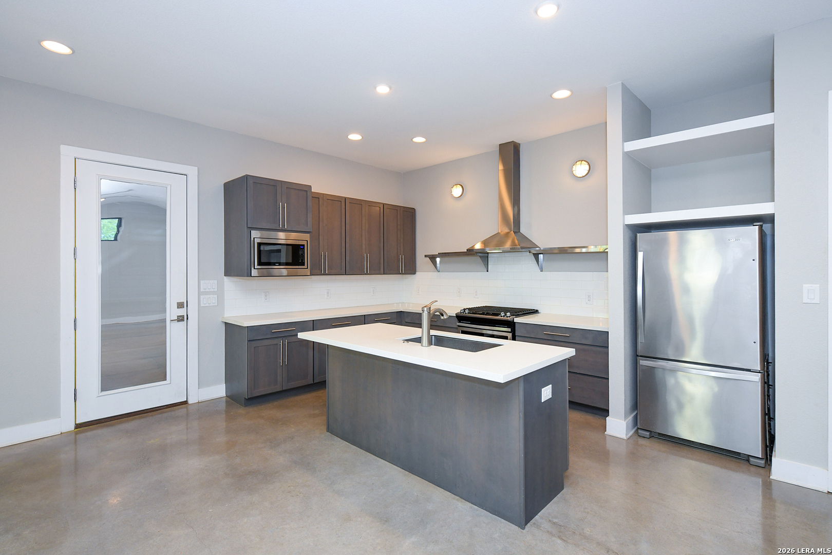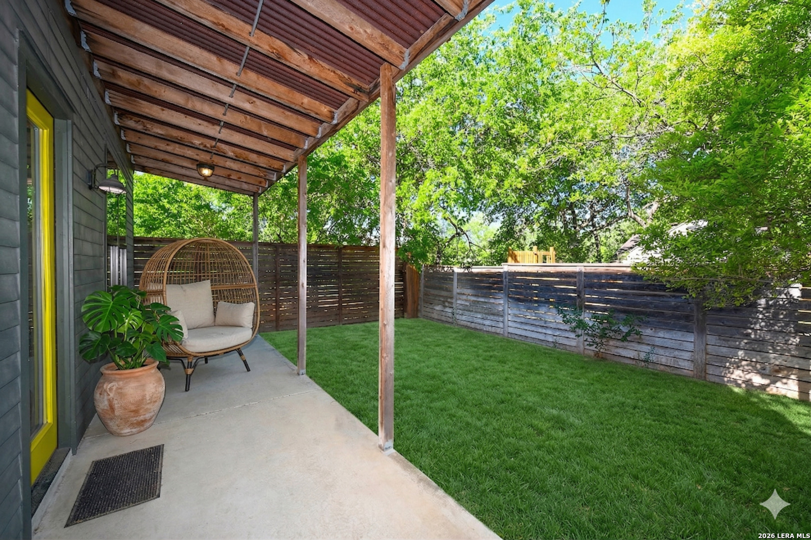 Stunning 3-bedroom, 2.5-bath home featuring a spacious open-concept design. The kitchen and living area showcase custom cabinetry, a large quartz island, concrete floors, and stainless steel appliances, including a refrigerator, perfect for both everyday living and entertaining. All bedrooms and the utility room are conveniently located upstairs. The primary suite offers a private ensuite bath and an expansive walk-in closet. Enjoy a private backyard with a covered patio, ideal for relaxing or hosting guests. Located just minutes from Blue Star Arts Complex and close to the Mission Reach, this home provides easy access to dining, entertainment, and outdoor recreation.
