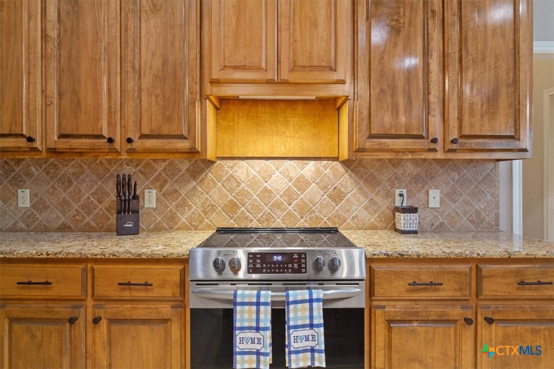 Beautiful brick home with rock accents featuring four bedrooms, two bathrooms, and a versatile flex room, all centered around a sparkling in-ground pool. The spacious den offers a rock wood-burning fireplace with a gas starter and large windows that bring in an abundance of natural light. The kitchen is a chef’s dream with granite countertops, a center island with butcher block, an electric range, dishwasher, and Kohler double sink. Additional appliances include a built-in microwave and a convection oven, making meal prep a breeze. The high bar offers ample space for seating, and there's plenty of room for a full dining table. The primary suite is generously sized with a luxurious en-suite bathroom. Black cabinetry complements the spa-like feel, which includes a large soaking tub, walk-in shower, dual sinks with plenty of counter space, and a spacious walk-in closet. On the opposite side of the home are three nicely sized bedrooms and a full bathroom with a single sink and a tub-shower combination. The flex room offers endless possibilities, whether for a home office, classroom, or formal dining room. Step into the beautifully landscaped backyard and take a dip in the in-ground pool, which is less than five years old and ready to enjoy. Want to swim year-round? The pool is equipped with a gas heater and features a peaceful rock waterfall. A wood privacy fence encloses the backyard, offering seclusion. The large covered back porch includes a gas hook-up for grilling, perfect for outdoor entertaining. The garage features special flooring for easy maintenance, and the laundry room is conveniently located between the kitchen and primary suite, complete with a large sink. This is a gorgeous home with so many extras—truly a must-see!
