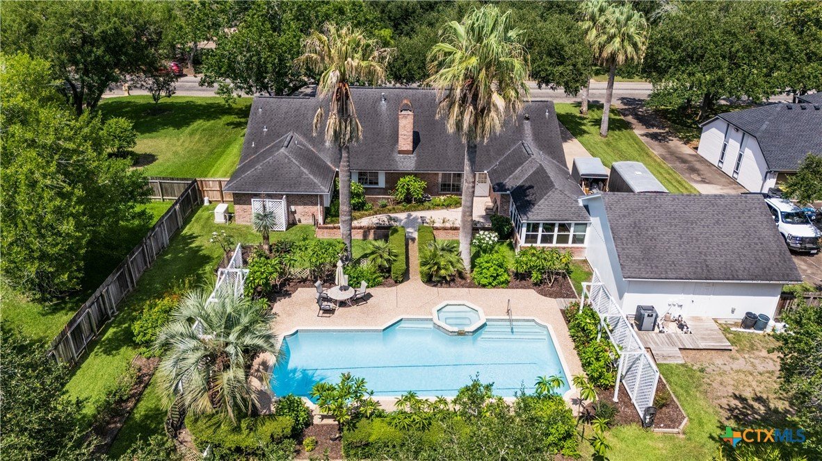 Charming traditional and beautifully maintained brick home offering timeless curb appeal and inviting living spaces. A winding sidewalk leads to the classic front porch framed by elegant columns, mature trees, and manicured landscaping, setting the tone for the warmth inside. Step inside to a spacious interior designed for both comfort and entertaining. Large picture windows invite in natural light while offering views of the tree-shaded yard. The flowing layout includes generous living and dining areas, a bright kitchen, and ample room for gatherings of all sizes. Four large bedrooms, three full bathrooms with incredible storage spaces throughout. Never be without electricity with home generator. Outdoors, the expansive backyard provides space for recreation and relaxation picturesque landscaping, in-ground pool and hot tub. The American flag and thoughtful landscaping enhance the home’s welcoming presence. Located in the desirable Whispering Creek, this residence combines classic style with modern convenience truly a wonderful place to call home.