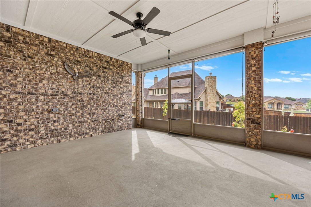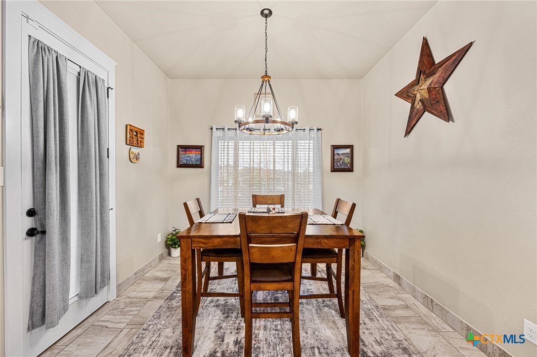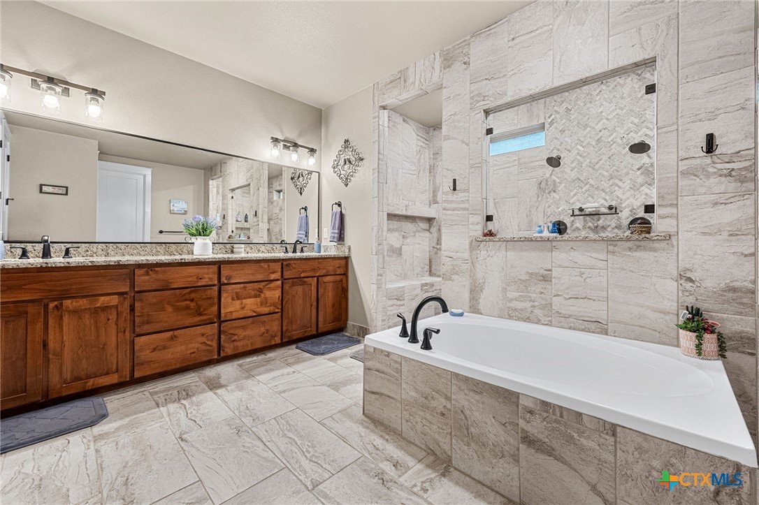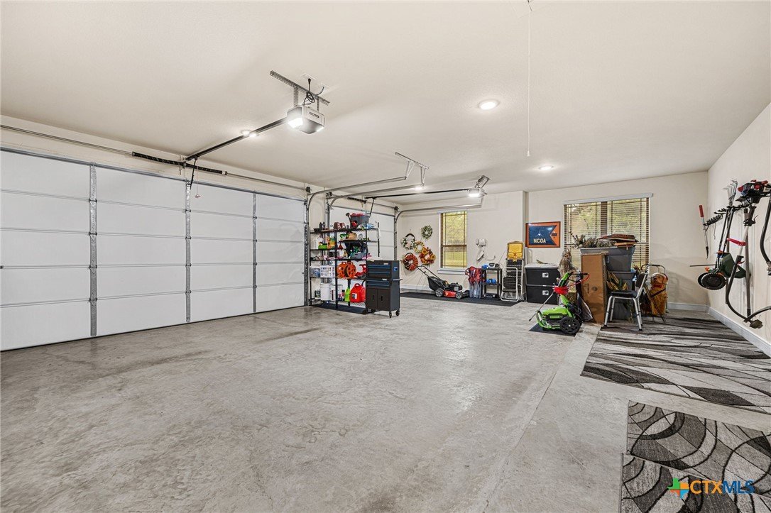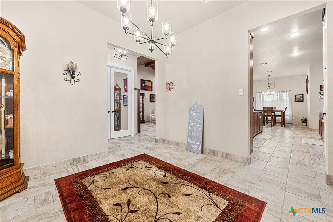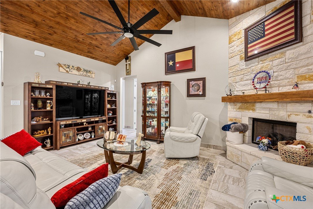 This stunning Ben Atkinson built single owner home in the highly sought after Bella Charca subdivision sits on a generous .39 acre lot and offers nearly 2,700 square feet of beautifully designed single story living. From the moment you walk in, you’re greeted by a spacious foyer with a private office to the left and a formal dining room to the right. The main living area opens into a beautiful living room featuring a corner gas fireplace and a vaulted ceiling with rich woodwork that adds warmth and character. The kitchen offers custom multi level wood cabinetry, a large island, gas cooktop, separate oven and microwave, brand new refrigerator, and a bright breakfast area perfect for everyday living or entertaining. The primary suite is tucked away and oversized at 24 x 18.7 with a sitting area, and the en suite bath features a soaker tub, double vanities, a massive walk around shower with dual entrances and a built in seat, and a spacious walk in closet. On this side you’ll also find a guest bathroom and a laundry room with a sink, folding space, and cabinetry. On the opposite side are three additional bedrooms with ceiling fans and large closets, along with a full bathroom featuring double vanities and a tiled shower. The only carpet in the home is in two bedrooms and all closets. Step outside into a 27 x 16 screened porch overlooking a beautifully landscaped yard with 2 live oaks in the front and 3 maple trees, 2 frontier elms, and 2 purple flowering trees in the backyard, creating a peaceful and private setting. Additional upgrades include a KitchenAid dishwasher, solar screens, a wood front door with speakeasy detail, full gutters, and a Generac 24KW whole home generator. The oversized side entry three car garage measures 24.2 x 32.7 and offers plenty of space for vehicles, storage, or a workshop. This home offers space, upgrades, and character in one of the area’s most desirable communities.