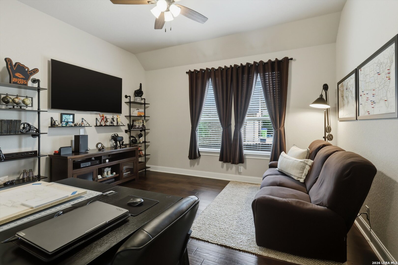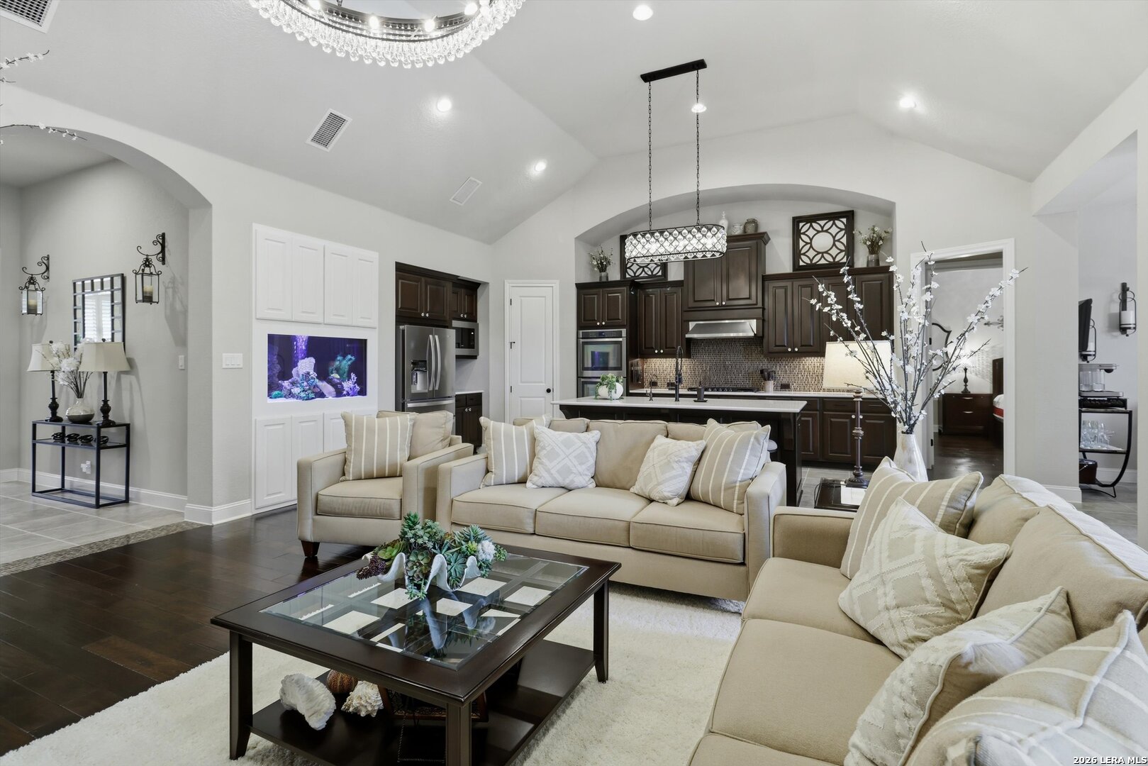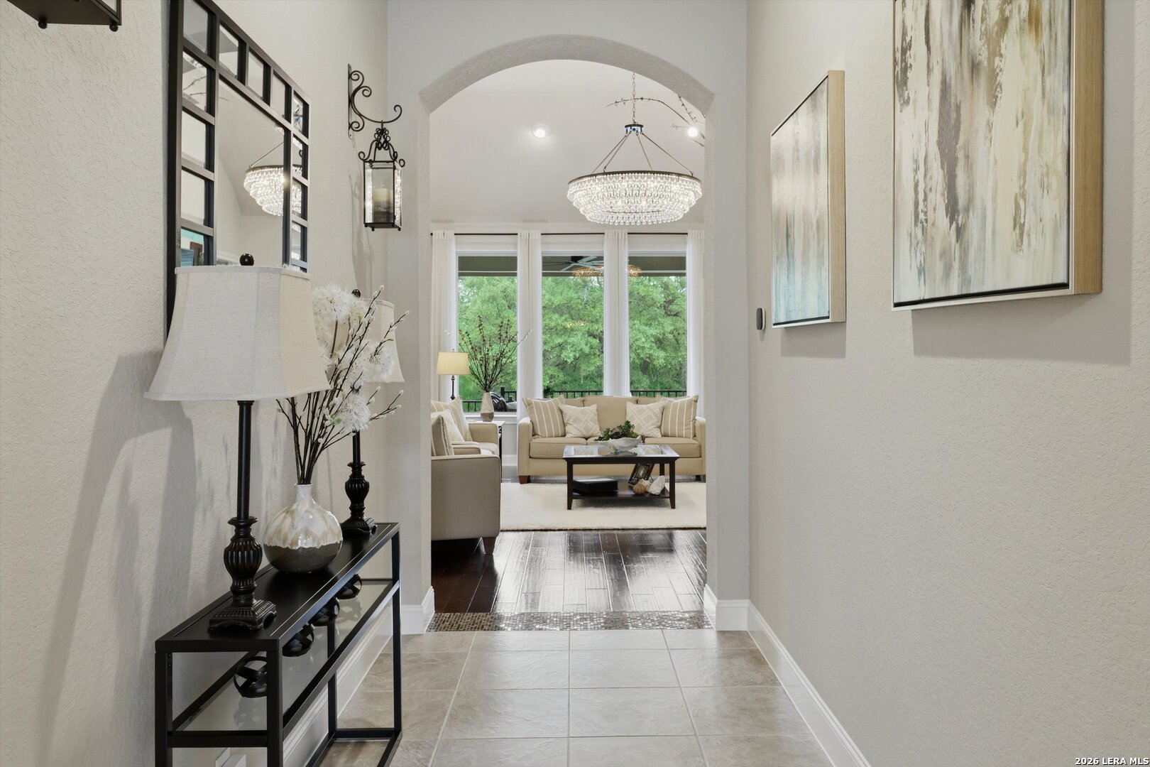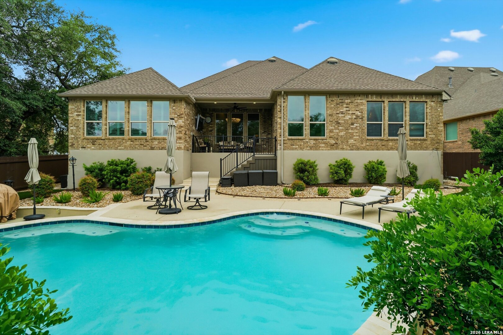 Discover a rare opportunity to own a residence that redefines modern living. This captivating home seamlessly blends timeless sophistication with contemporary comforts, offering an unmatched sanctuary for relaxation. Step inside this stunning single-story residence featuring four spacious bedrooms, a versatile game room, a bright sunroom, a private study, and three full luxurious bathrooms, truly offering space for everyone to live, work, and play. The chef-inspired kitchen is a culinary masterpiece, boasting premium finishes, abundant storage, and ample counter space ideal for hosting memorable gatherings. Enjoy both formal dining and a welcoming eat-in kitchen for every occasion. The fish tank alone is a sight to see. Hardwood throughout the main areas. The primary suite is a peaceful retreat, complete with a spa-like bathroom and a generously sized walk-in closet conveniently located next to the laundry room. Outdoors, your private oasis awaits: a professionally landscaped yard with lush turf and mature trees, and an inground pool that can be heated for year-round enjoyment. The pool area backs onto a serene green space, creating the perfect setting for entertaining or relaxing in privacy. Additional highlights include a spacious three-car garage-ideal for storage, hobbies, or your prized car collection-and a covered patio with breathtaking views of the pool and natural surroundings. Professional landscaped lighting makes this home stand out. The gated community offers exclusive amenities such as a sparkling pool, scenic park, and secure entry for peace of mind. This is more than just a house; it's a lifestyle upgrade designed for those who appreciate quality, beauty, and effortless living. Experience the absolute best in comfort and sophistication-schedule your private tour today and make this extraordinary home yours!