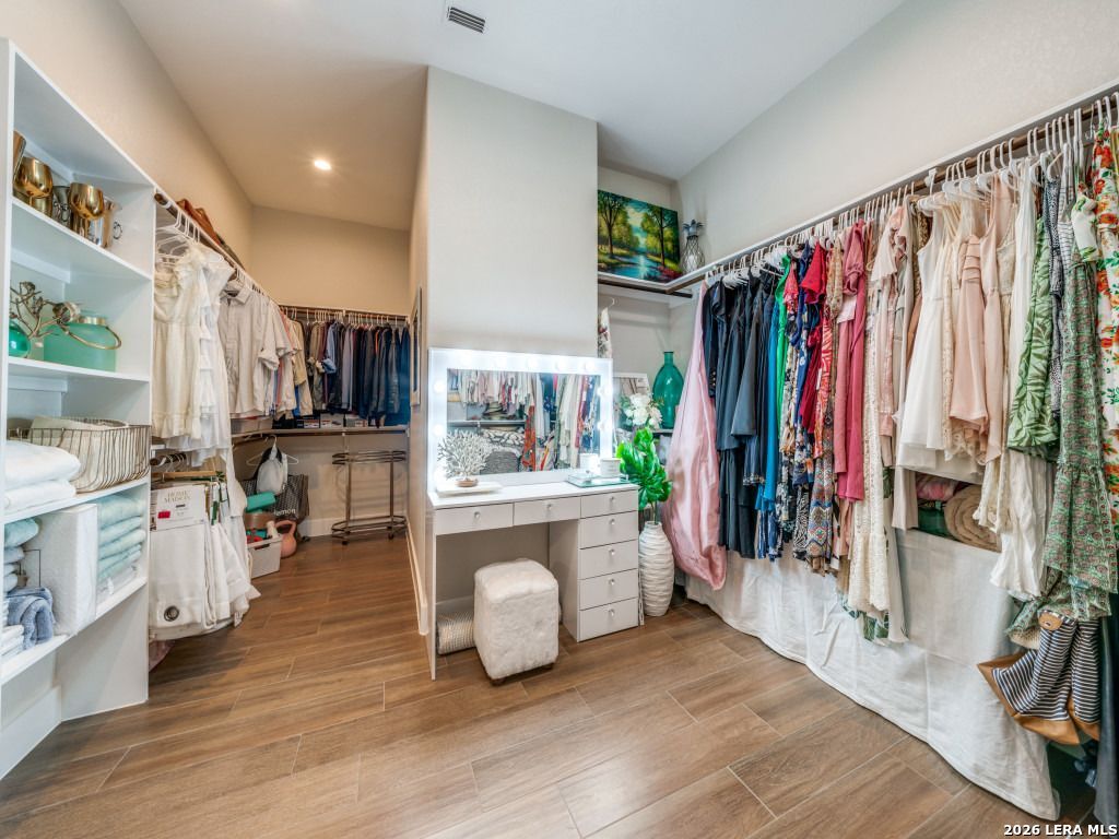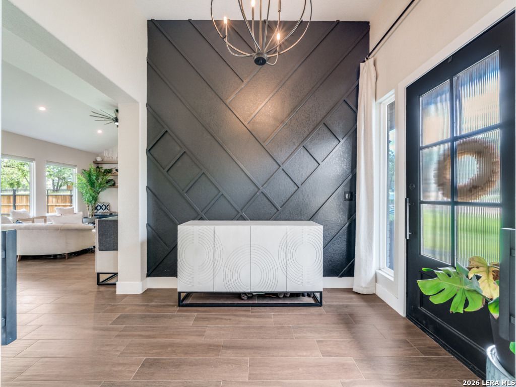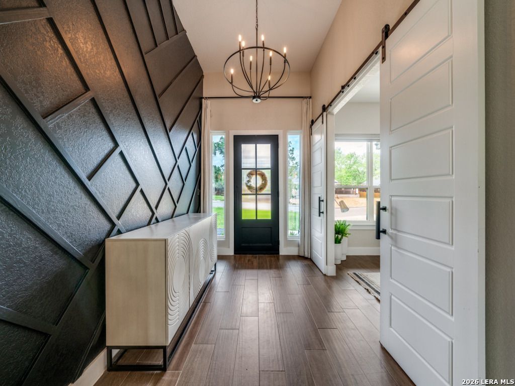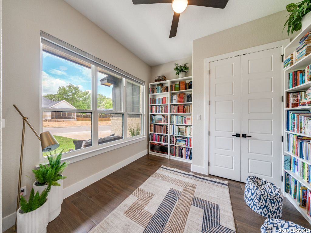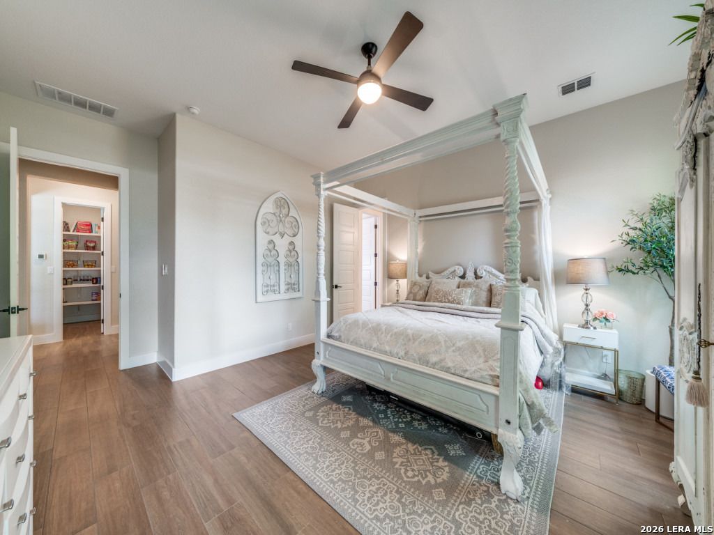 Step into your dream home in the gated community of Woodbridge Farms, where neighborhood amenities include, a splash pad, two playgrounds, a basketball court, event pavilion and sidewalks throughout -all within La Vernia ISD. This custom-built, one-story home offers a thoughtfully designed split floor plan perfect for both entertaining and everyday living. Luxury tile flooring flows seamlessly throughout the entire home, leading you into a spacious living area highlighted by vaulted ceilings, a striking accent wall, and a stunning floor-to-ceiling fireplace that serves as the heart of the home. The open-concept kitchen is designed to impress, featuring stainless steel appliances, a large modern sink, hand-selected tile, an oversized island perfect for gathering, and an expansive walk-in pantry with abundant storage for food and appliances. The private owner's suite is a true retreat, complete with a massive walk-in closet and a spa-like en-suite bathroom showcasing custom tile work, double vanities, and a large walk-in shower. Two additional generously sized bedrooms each include their own walk-in closets, while an office with a closet offers flexibility as a fourth bedroom. Additional highlights include a spacious laundry room and a two-car garage with an insulated door and epoxy flooring-perfect for your organizational and storage needs. Energy-efficient spray foam insulation enhances comfort while helping reduce utility costs year-round. This home is loaded with upgrades, including automated blinds throughout, a whole-home water softener and charcoal filter, a reverse osmosis system in the kitchen. The backyard is thoughtfully designed with a newly seeded lawn, and dividing fence-ideal for gardening, projects, or pets. Finally, step outside to your private outdoor retreat featuring front and back sprinkler systems and an extended covered patio, perfect for entertaining or simply unwinding. Don't miss your chance to own this stunning move-in-ready property. Schedule a private tour today and see it for yourself!