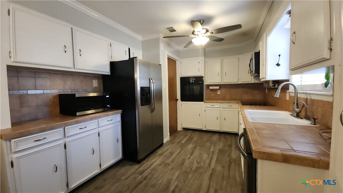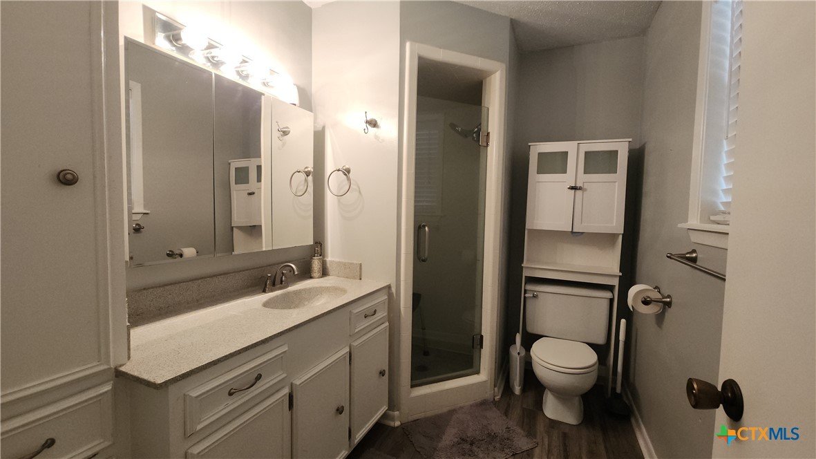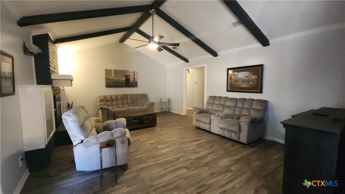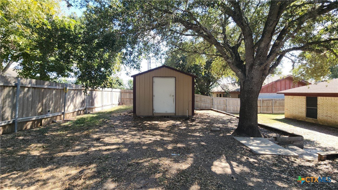 Welcome home! This charming three bedroom, two bath home is located in a great neighborhood, that is centrally located with easy access to restaurants, shopping and the park. As you walk through the foyer, you are greeted with the fireplace as a great focal point with built in shelving. Adjacent to the kitchen is the dining area and kitchen. The kitchen has an abundance of cabinet space, along with a combined pantry and laundry room. The nicely sized primary bedroom offers an en suite with a walk-in shower and a walk in closet. The spacious yard is privacy fenced and houses a nice workshop that is perfect for those projects and additional storage. This home is move in ready with fresh paint, a new HVAC and newer roof.