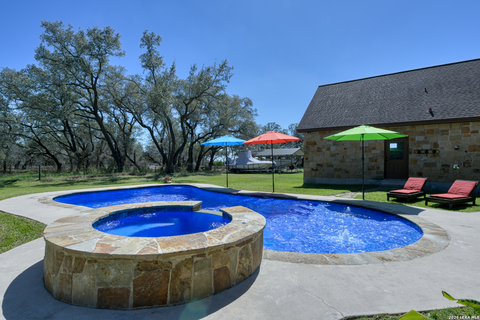 For those who crave wide-open spaces without sacrificing luxury, this stunning custom home delivers on every level. Stone accents, soaring vaulted ceilings, and rich wood beams set the tone the moment you arrive, while a warm, thoughtfully designed interior makes it instantly feel like home. The expansive primary suite offers a true private retreat, complete with an adjoining flex room ideal for a home office, fitness space or nursery. The hub of the house is the gorgeous, fully equipped kitchen while an upstairs loft with sink and wine refrigerator offers an escape. Outside, your own private resort awaits - a gorgeous pool, adjoining hot tub, covered patio, and entertaining pavilion create an outdoor living experience that's simply unmatched. . For those who bring their passions home, a three-car garage and detached covered carport provide exceptional room for large vehicles, recreational toys, and weekend projects. A generously sized bonus space above the garages is insulated and decked, offering exceptional accessible storage that hobby and lifestyle-driven buyers will immediately appreciate. Set on 1.28 acres and cherished by a single owner, this meticulously maintained property is move-in ready and waiting for a new family to put down roots. True custom quality, genuine acreage, and refined outdoor living at this level rarely come available. A list of Special Features is available under Additional Information. Make an appointment today to schedule a private showing.