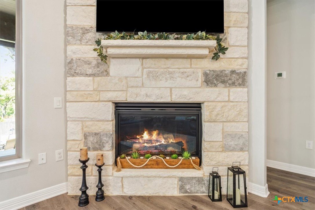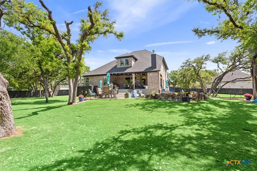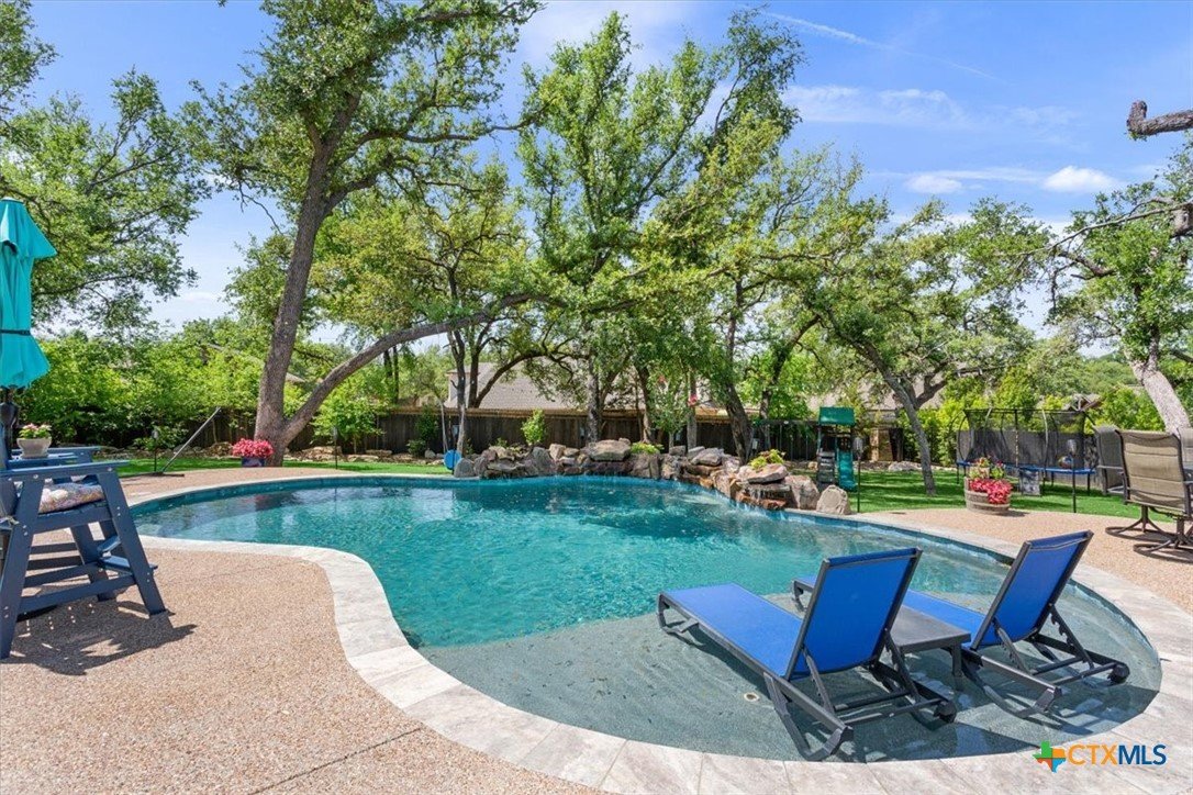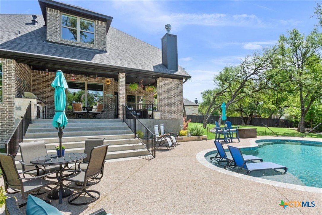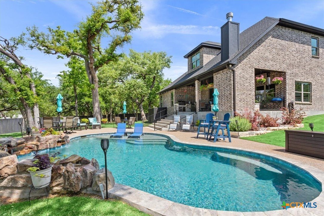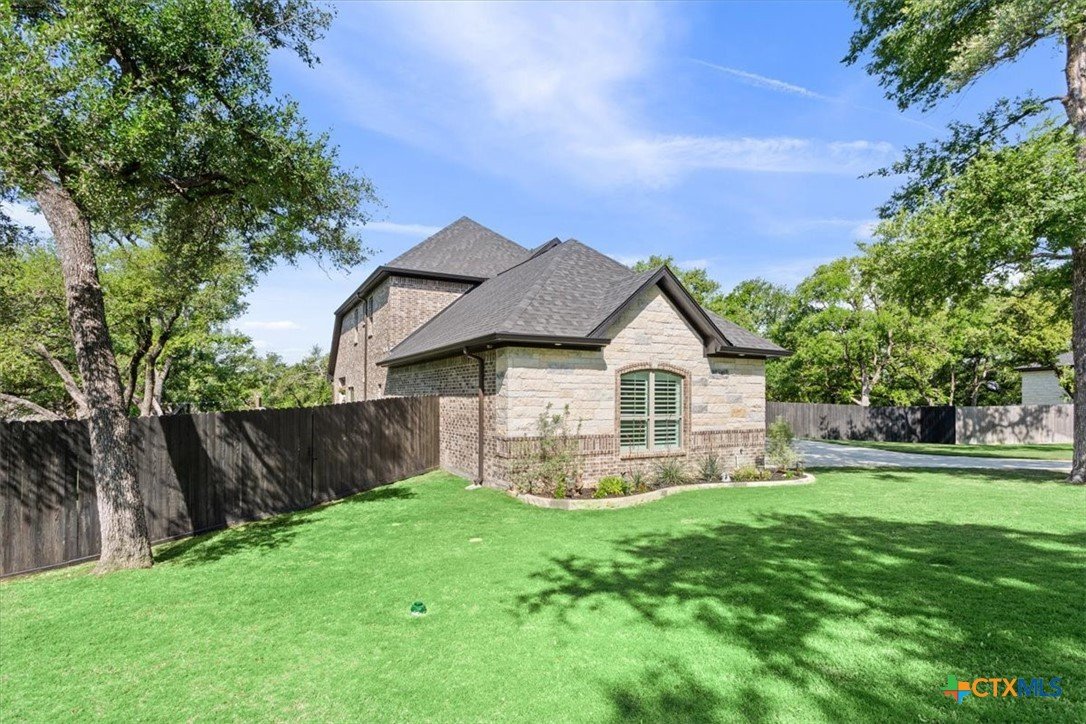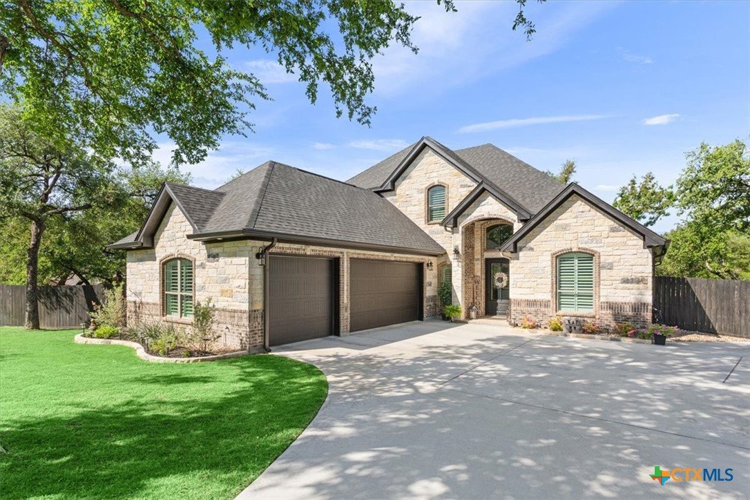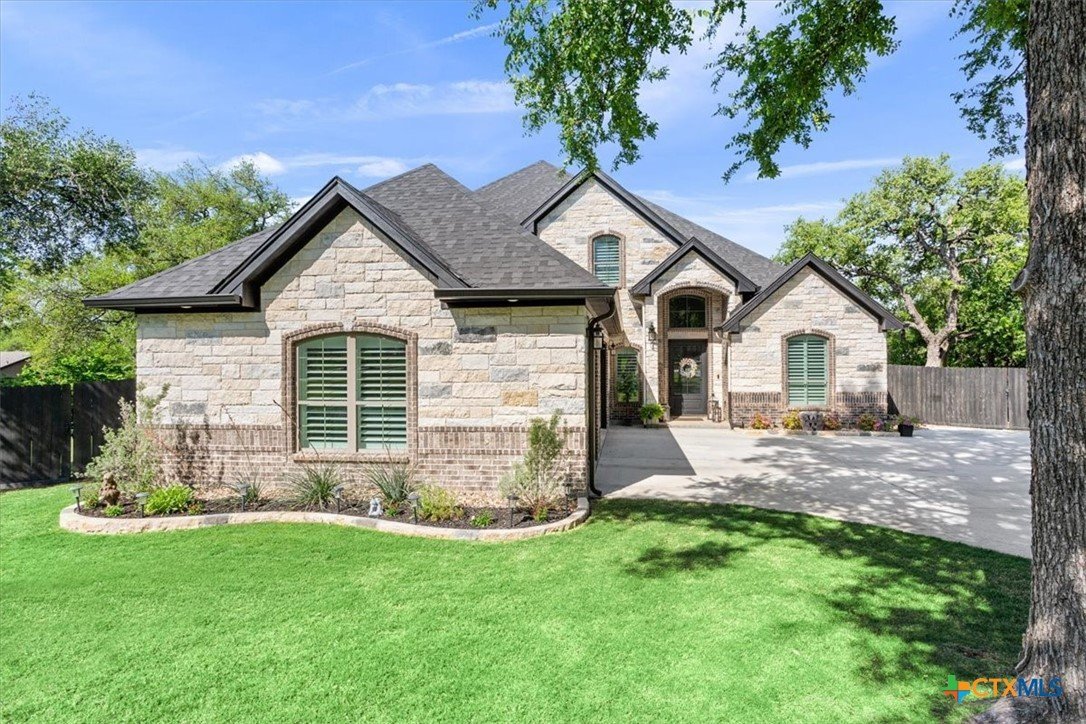 Stunning 4BD/3BA Two-story home on a large corner lot (nearly 1 acre) in a desirable gated community just minutes from Lake Belton. Stone and brick exterior with a 3-car garage and beautifully landscaped yard. Interior boasts 2 living areas, 2 dining spaces, high ceilings, crown molding, wood-beamed ceilings, and recessed lighting throughout. Gourmet kitchen features granite/stone countertops, custom cabinets, walk-in pantry, kitchen island, breakfast bar, built-in gas appliances, and double oven—all overlooking the spacious living area with a gas stone fireplace (EPA qualified). Primary suite offers wood-beamed ceilings, ceiling fan, abundant natural light, and a luxurious en-suite bath with a tiled stone walk-in shower, garden tub, and dual walk-in closets. Additional upgrades include smart thermostat, security system, spray foam insulation, tankless water heaters, water softener, and both gas & electric utilities. Backyard is an entertainer’s dream with a covered patio, built-in outdoor kitchen, and a private energy star qualified pool featuring a waterfall. Zoned for Belton ISD and close to shopping, dining, and lake recreation. Don’t miss this incredible opportunity!