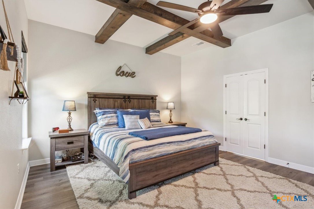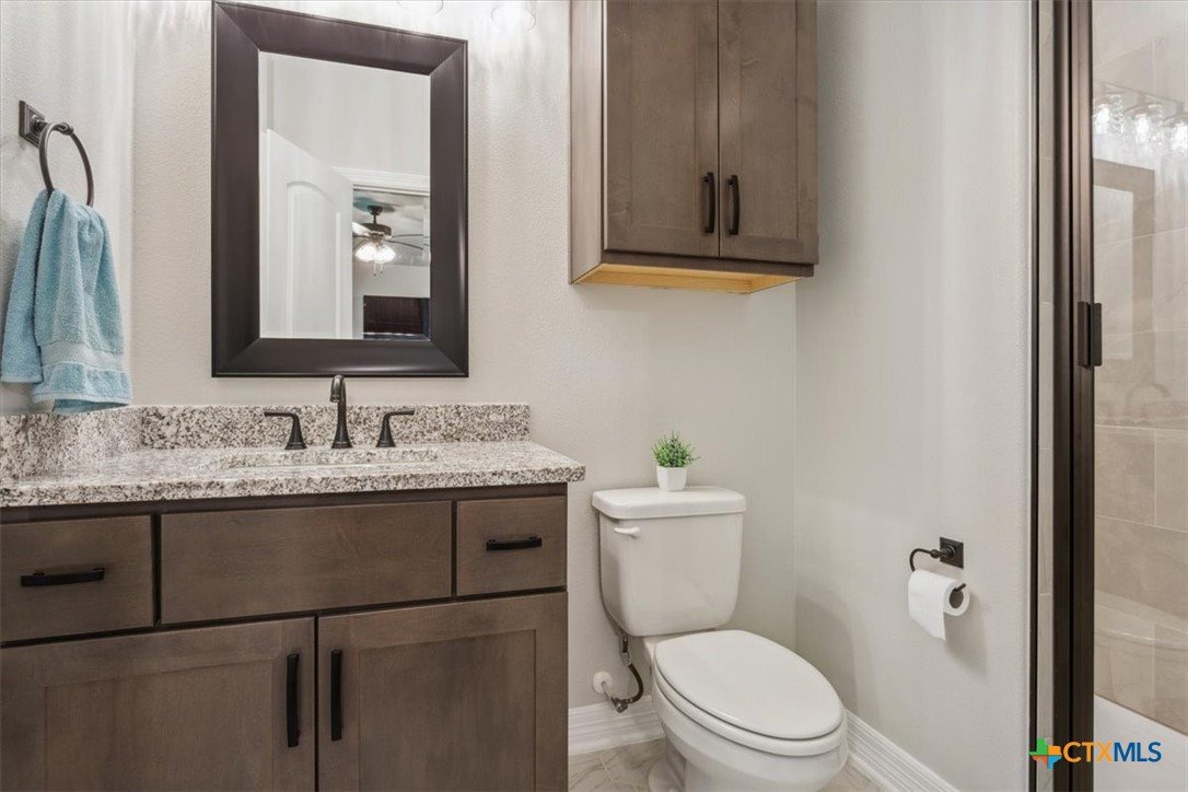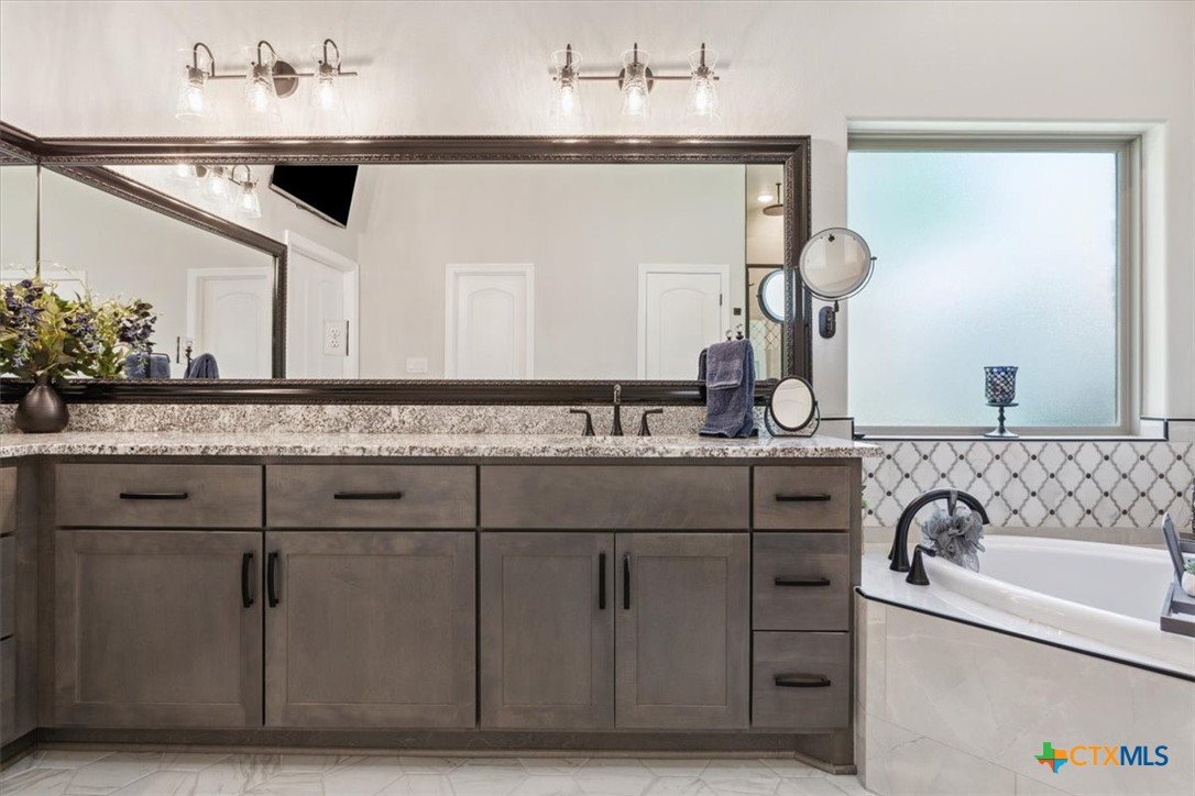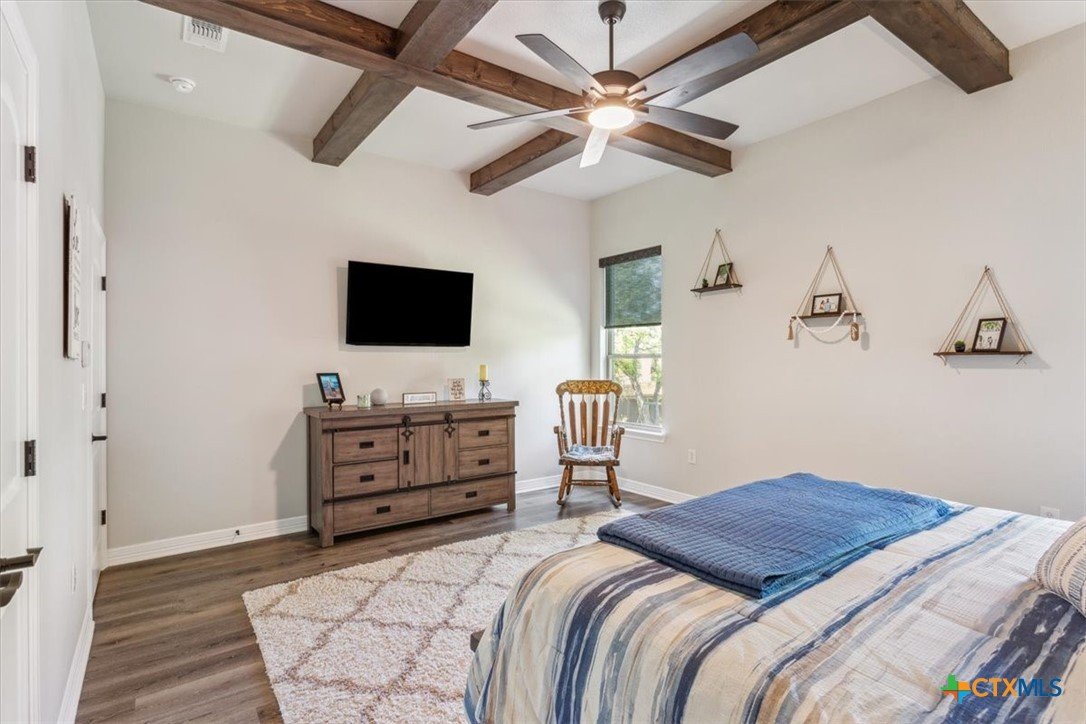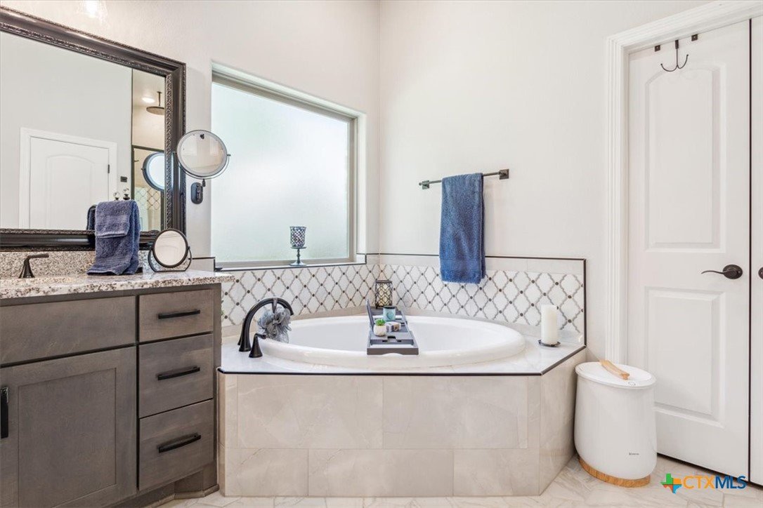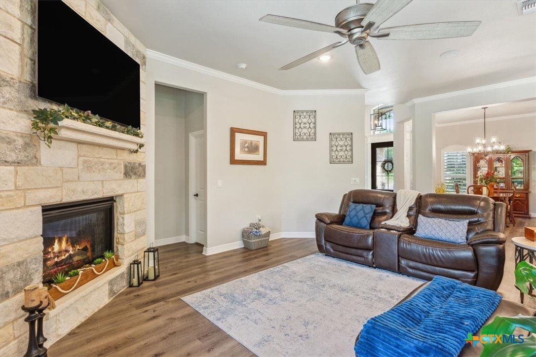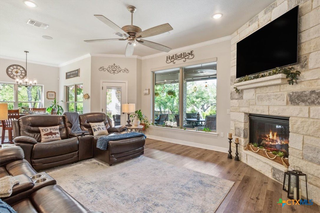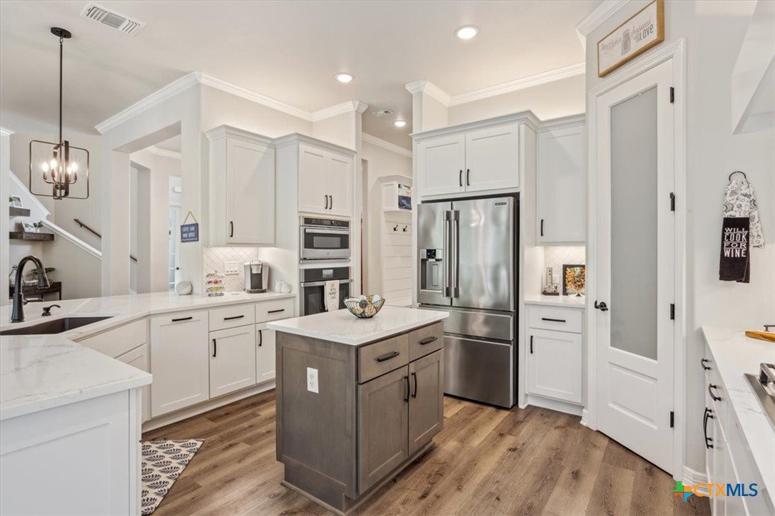Stunning 4BD/3BA Two-story home on a large corner lot (nearly 1 acre) in a desirable gated community just minutes from Lake Belton. Stone and brick exterior with a 3-car garage and beautifully landscaped yard. Interior boasts 2 living areas, 2 dining spaces, high ceilings, crown molding, wood-beamed ceilings, and recessed lighting throughout. Gourmet kitchen features granite/stone countertops, custom cabinets, walk-in pantry, kitchen island, breakfast bar, built-in gas appliances, and double oven—all overlooking the spacious living area with a gas stone fireplace (EPA qualified). Primary suite offers wood-beamed ceilings, ceiling fan, abundant natural light, and a luxurious en-suite bath with a tiled stone walk-in shower, garden tub, and dual walk-in closets. Additional upgrades include smart thermostat, security system, spray foam insulation, tankless water heaters, water softener, and both gas & electric utilities. Backyard is an entertainer’s dream with a covered patio, built-in outdoor kitchen, and a private energy star qualified pool featuring a waterfall. Zoned for Belton ISD and close to shopping, dining, and lake recreation. Don’t miss this incredible opportunity!