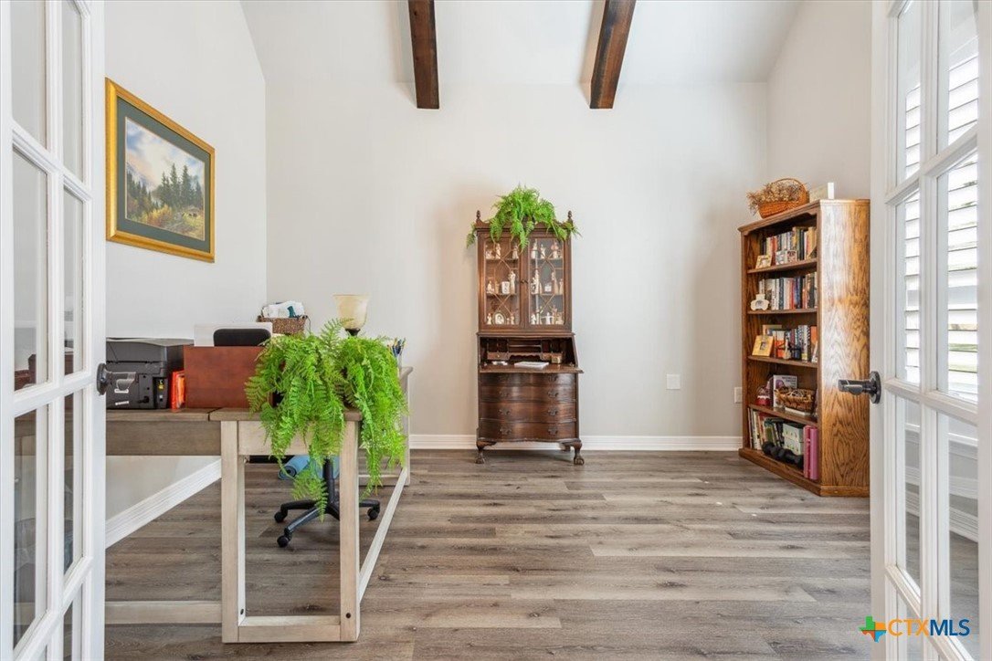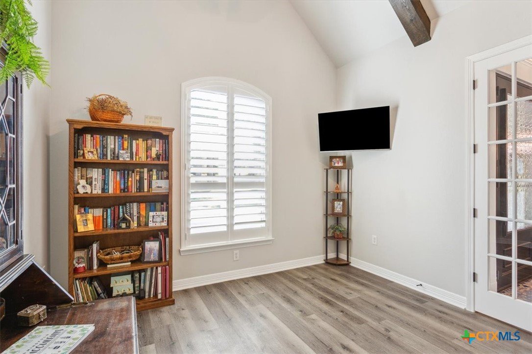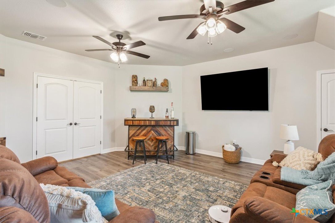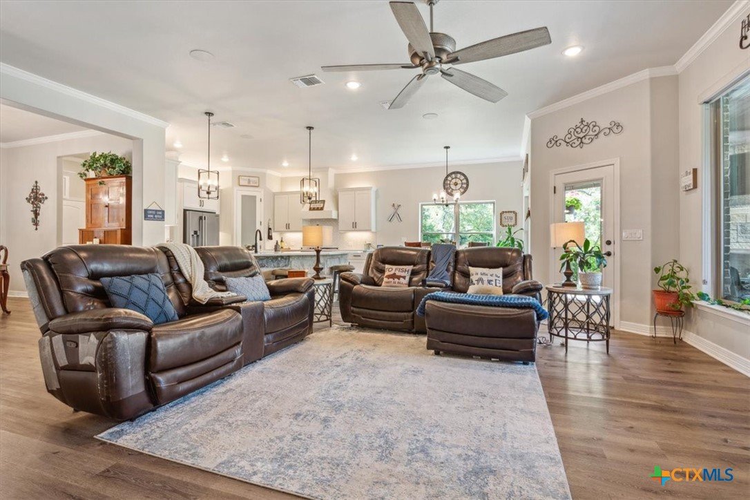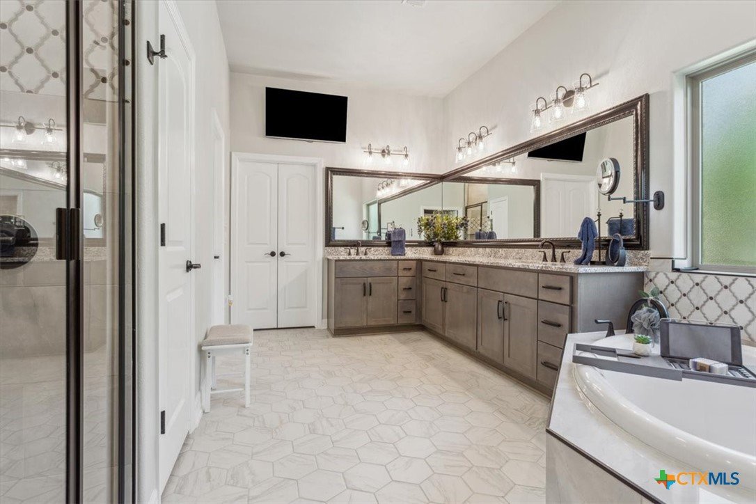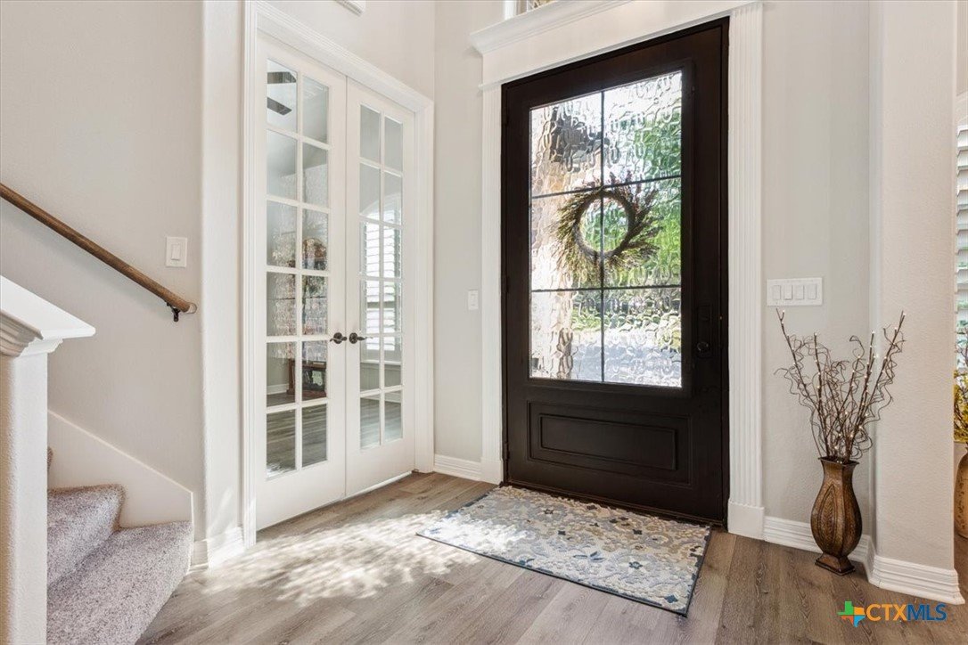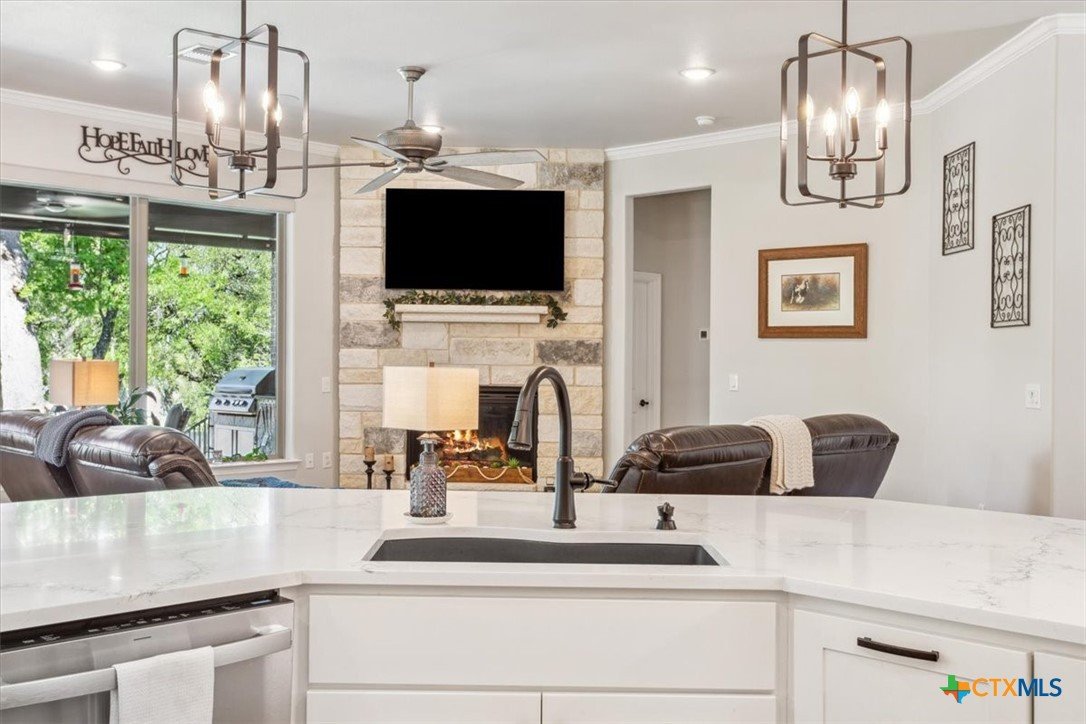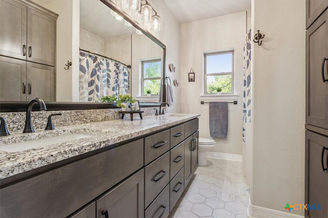 Stunning 4BD/3BA Two-story home on a large corner lot (nearly 1 acre) in a desirable gated community just minutes from Lake Belton. Stone and brick exterior with a 3-car garage and beautifully landscaped yard. Interior boasts 2 living areas, 2 dining spaces, high ceilings, crown molding, wood-beamed ceilings, and recessed lighting throughout. Gourmet kitchen features granite/stone countertops, custom cabinets, walk-in pantry, kitchen island, breakfast bar, built-in gas appliances, and double oven—all overlooking the spacious living area with a gas stone fireplace (EPA qualified). Primary suite offers wood-beamed ceilings, ceiling fan, abundant natural light, and a luxurious en-suite bath with a tiled stone walk-in shower, garden tub, and dual walk-in closets. Additional upgrades include smart thermostat, security system, spray foam insulation, tankless water heaters, water softener, and both gas & electric utilities. Backyard is an entertainer’s dream with a covered patio, built-in outdoor kitchen, and a private energy star qualified pool featuring a waterfall. Zoned for Belton ISD and close to shopping, dining, and lake recreation. Don’t miss this incredible opportunity!