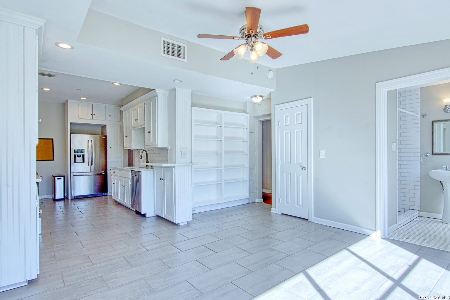 Beautifully remodeled historic home in desirable Olmos Park Terrace! This charming 1940s property blends timeless character with modern updates, featuring original hardwood floors, high ceilings, crown molding, and a cozy wood-burning fireplace. Updated kitchen includes stainless steel appliances (refrigerator included), marble countertops, refinished cabinetry, and subway tile accents. Upgraded bathrooms, fresh interior and exterior paint, and updated electrical wiring add peace of mind. Spacious primary suite offers an oversized 9x13 closet with sliding barn door. Enjoy a large backyard plus 2-car garage and 2-car carport. Well-maintained and move-in ready lease opportunity in a prime central location.