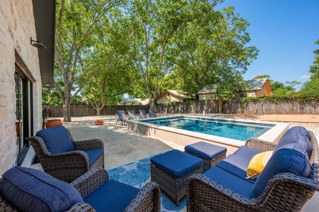 An exceptional property in an unmatched location - 204 Elk Street - one block behind Main St in downtown Fredericksburg, this exquisitely transformed property has undergone a comprehensive restoration and remodel. Perched on a 0.34 acre lot, directly across from the landmark Nimitz Museum, the 1990's stone home conveys with an active short term rental permit, fully furnished, operative and primed as an income producing property. The 3,496 square-foot layout offers an expansive, open-plan central living area, designer kitchen with professional grade appliances, 5 bedrooms and 5 bathrooms with vibrant, colorful and diverse fixtures and design finishes. Three of the bedrooms feature en-suite baths, while the remaining two are paired with their own dedicated bathrooms. The home'sfifth bedroomoffers aprivate escapewith its own entrance, living area, kitchenette, and bathroom. Outside is a back porch with seating, a place to gather, mature shade trees and the stunning newly introduced swimming pool along with a versatile entertainment room for all ages to enjoy. This indoor/outdoor space with wide sliding doors, is outfitted with a mini bar, a variety of games, comfortable seating, bar tables, TV - the perfect spot for fun game nights, hanging out, sports game day watching and an alternate dining experience. The house has a large dedicated laundry with storage and cabinets and there is ample off street parking. All in all, this is an incredible private retreat yet right in the heart of a town that is a thriving tourist destination. Fredericksburg offers an array of diverse activities and attractions : German-influenced restaurants, upscale winery restaurants, bakeries, wineries, tasting rooms, boutiques, art galleries along with the National Museum of the Pacific War, Vereins Kirche, Pioneer Museum, Sunday Houses and living-history farms, Enchanted Rock State Natural Area and so much more. Whether envisioned as a personal Hill Country escape or as an investment with ongoing rental income, opportunity knocks in one of Fredericksburg's most central and sought-after locations. VIDEO INCLUDED.