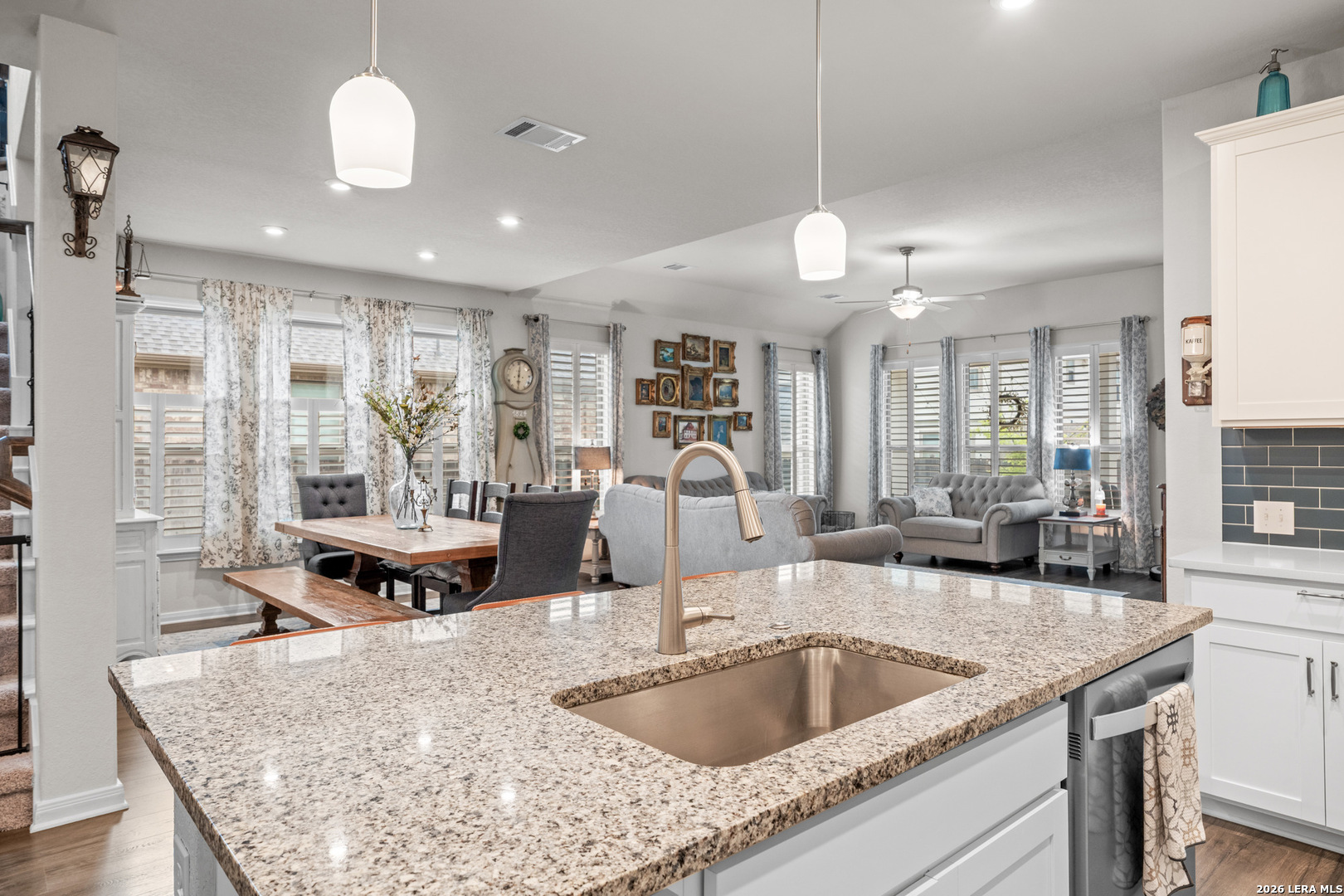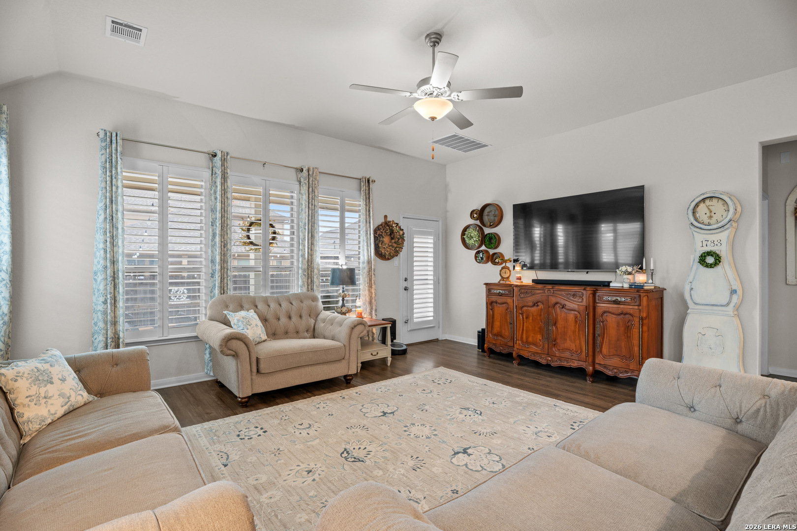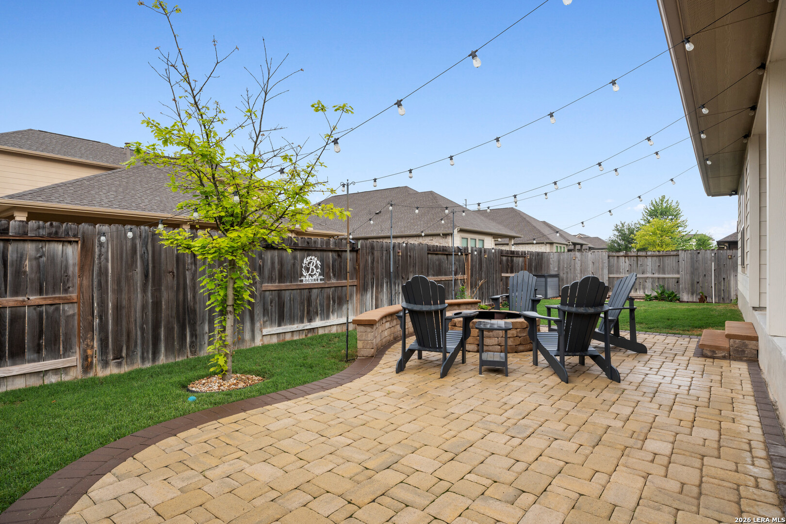 Welcome to this beautifully maintained 4-bedroom home with a dedicated study, offering the perfect blend of comfort, style, and functionality. Built just 5 years ago, this home is in excellent condition and showcases high ceilings, luxury vinyl plank flooring, and a bright open-concept layout designed for modern living. The spacious living area flows seamlessly into the kitchen and dining space, making it ideal for entertaining guests or enjoying quality time at home. Whether you're hosting gatherings or relaxing after a long day, this home provides the perfect setting. Step outside to a stunning backyard retreat featuring a fire pit area and beautifully landscaped surroundings-perfect for evenings under the stars or weekend get-togethers. Conveniently located just 2 miles from Randolph Air Force Base and a short drive to Fort Sam Houston, this home is ideal for those seeking proximity to military installations. The neighborhood is quiet, family-oriented, and offers a peaceful atmosphere, while still being close to a variety of restaurants, shopping, and everyday conveniences. With quick access to Highway 35 and Loop 1604, commuting anywhere in the San Antonio area is a breeze.