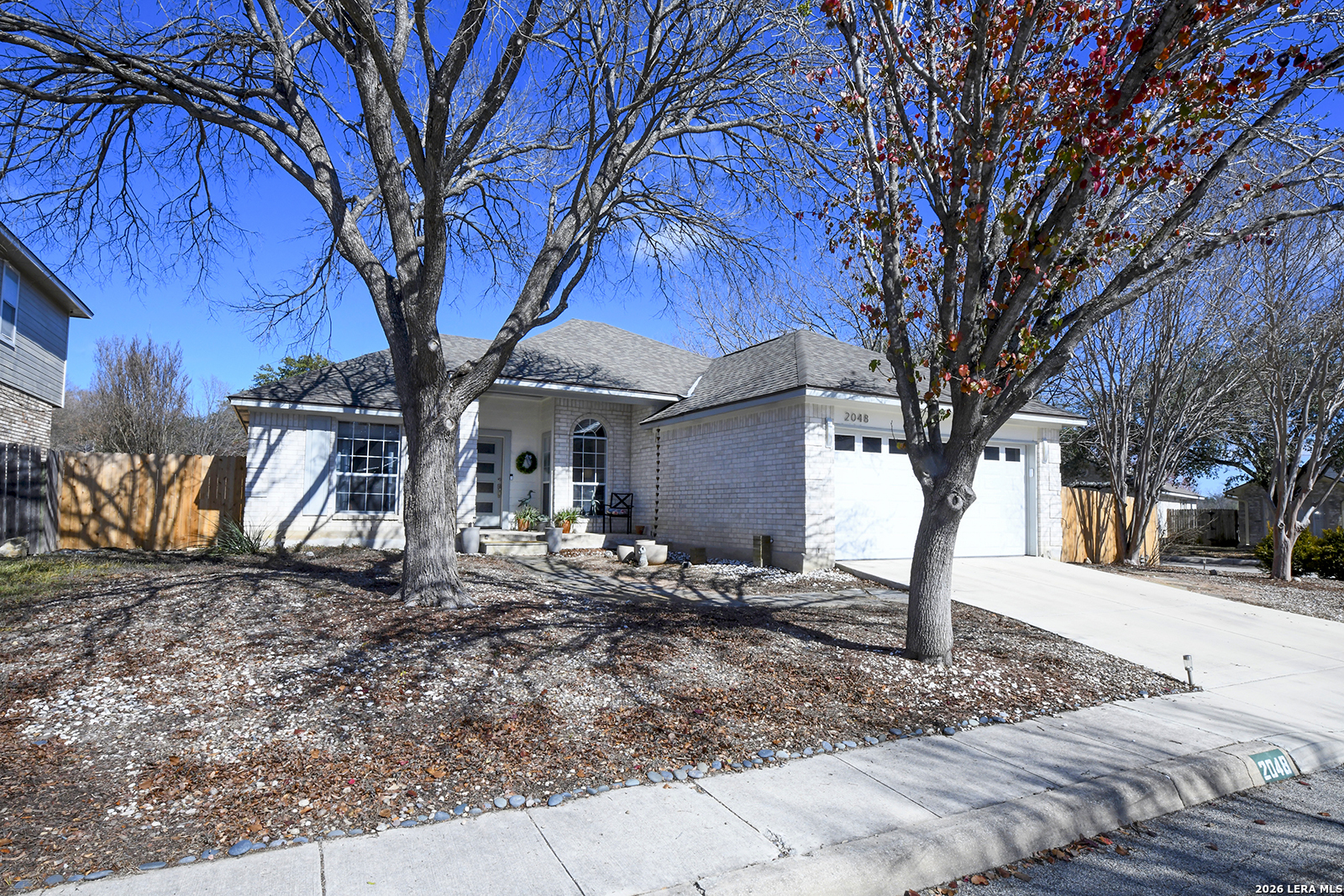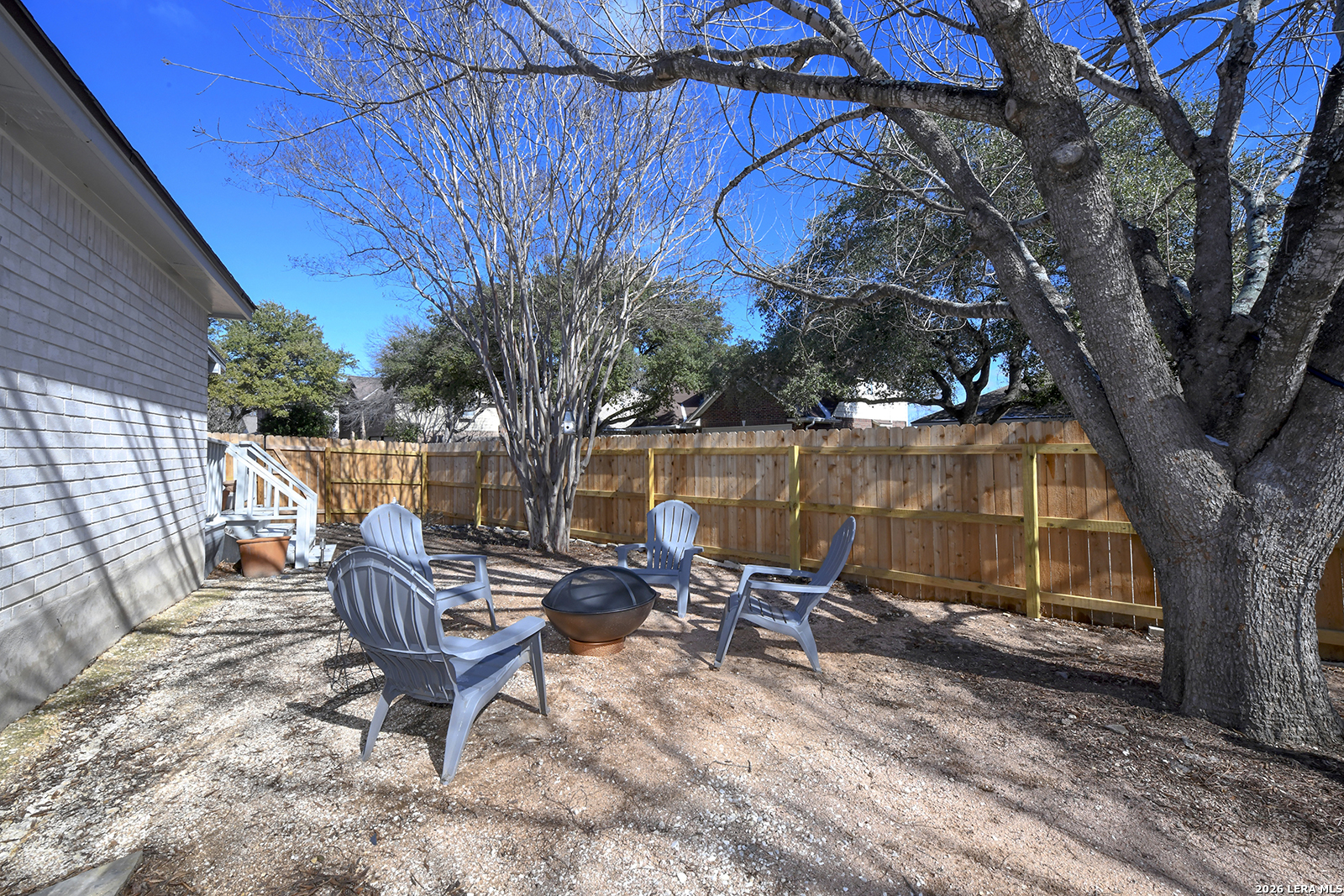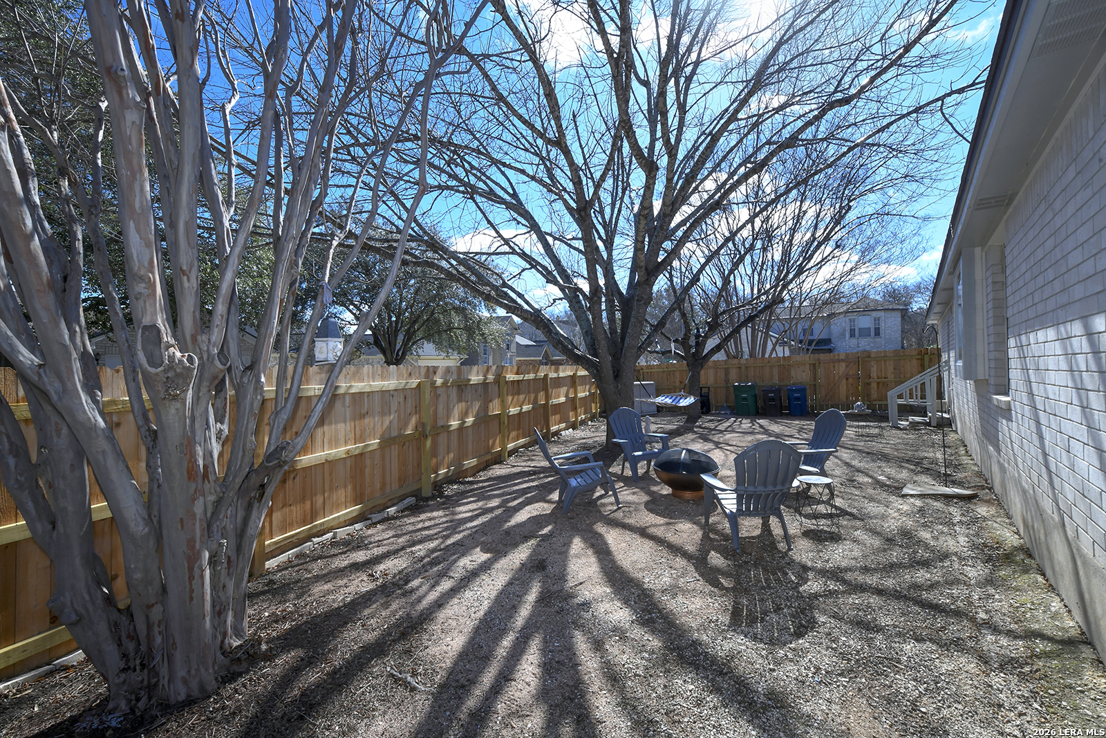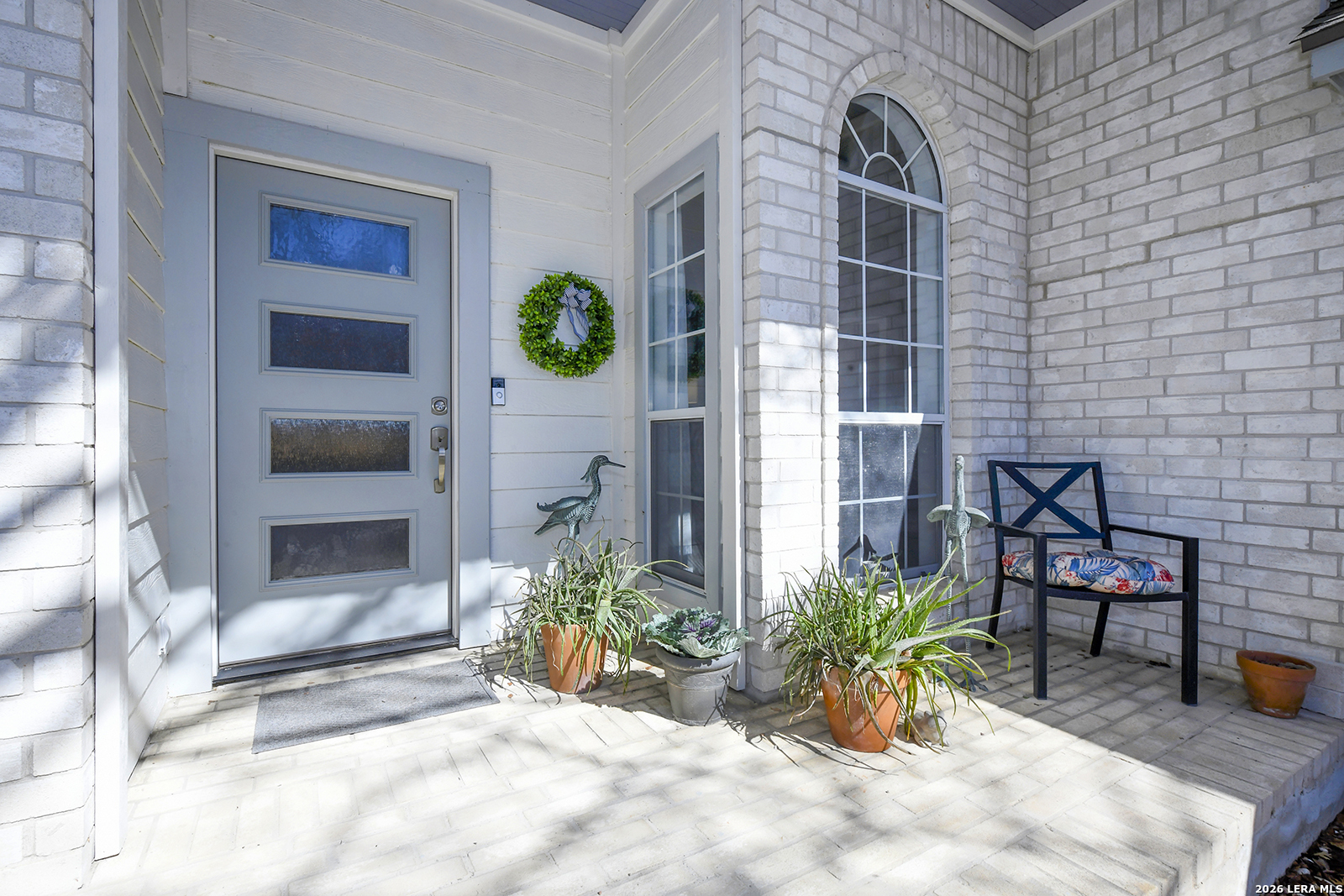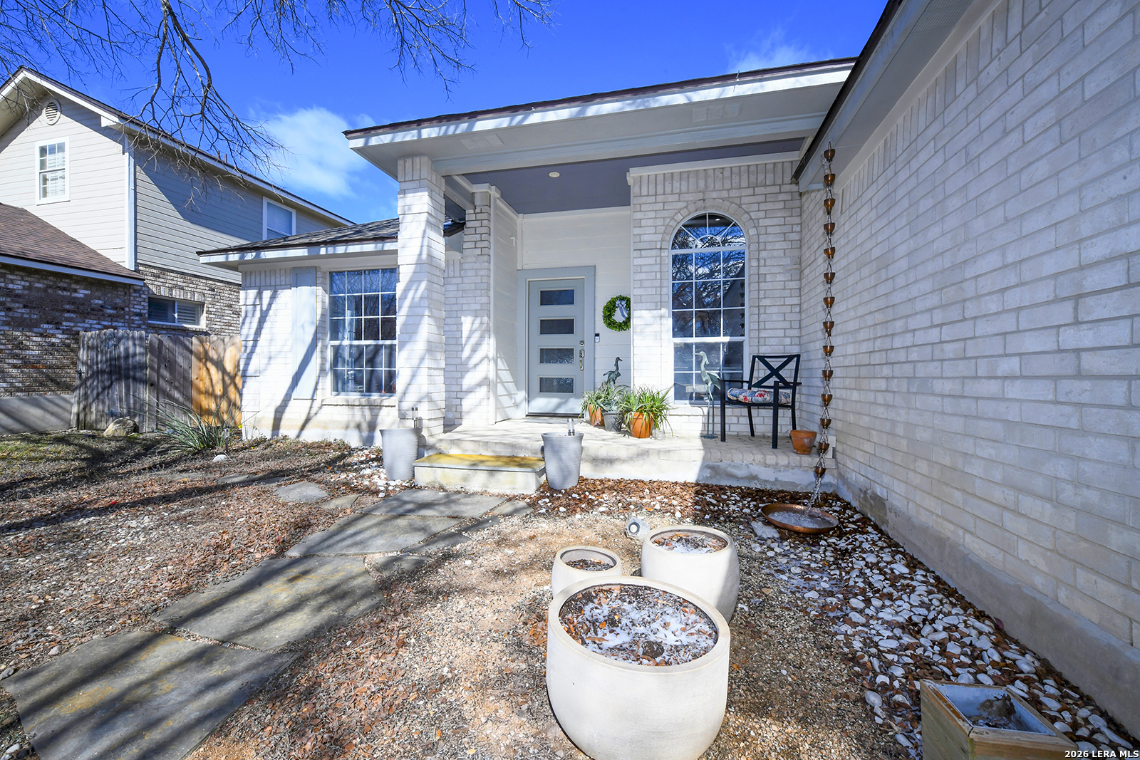 Come home to this beautifully updated 2-owner brick home in highly desirable and gated Parkside Estates. Fantastic location near Wurzbach Pkwy, Hwy 281, the airport, library, and HEB! Situated on a corner lot with mature trees and a maintained green space behind. This beauty underwent a complete interior renovation (2020-21), including replacing all the old plumbing with PEX. It features 13' vaulted ceilings, updated LED lighting and Pergo laminate flooring throughout, Daltile ceramic tile flooring in bathrooms and a custom wood-burning fireplace. The kitchen offers Malibu White shaker cabinetry (soft-close), quartz countertops & backsplash, LED cabinet lighting, Kraus undermount sink, Kohler pull-down faucet, and stainless steel appliances (2020). Primary suite includes electric fireplace, spa-style bathroom with custom glass walk-in shower, dual undermount sinks, quartz countertops, garden window, and a walk-in closet with custom built-ins. All this plus more major upgrades such as a newer roof (2021), Rheem high-efficiency water heater (2021), a professionally maintained water softener, custom exterior doors, and double garage door (2025). Plus a finished 2-car garage with mud sink and storage. Covered 19'x11' porch, xeriscaped yard, and shed and much. much, more! For the right offer, Refrigerator and washer and dryer will be included! Hurry! This one won't last!