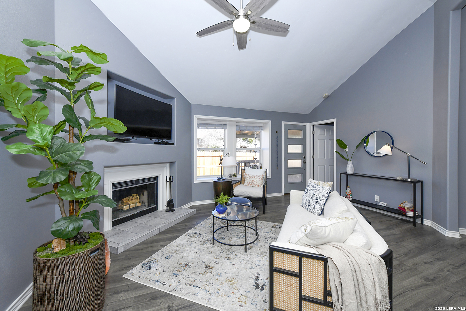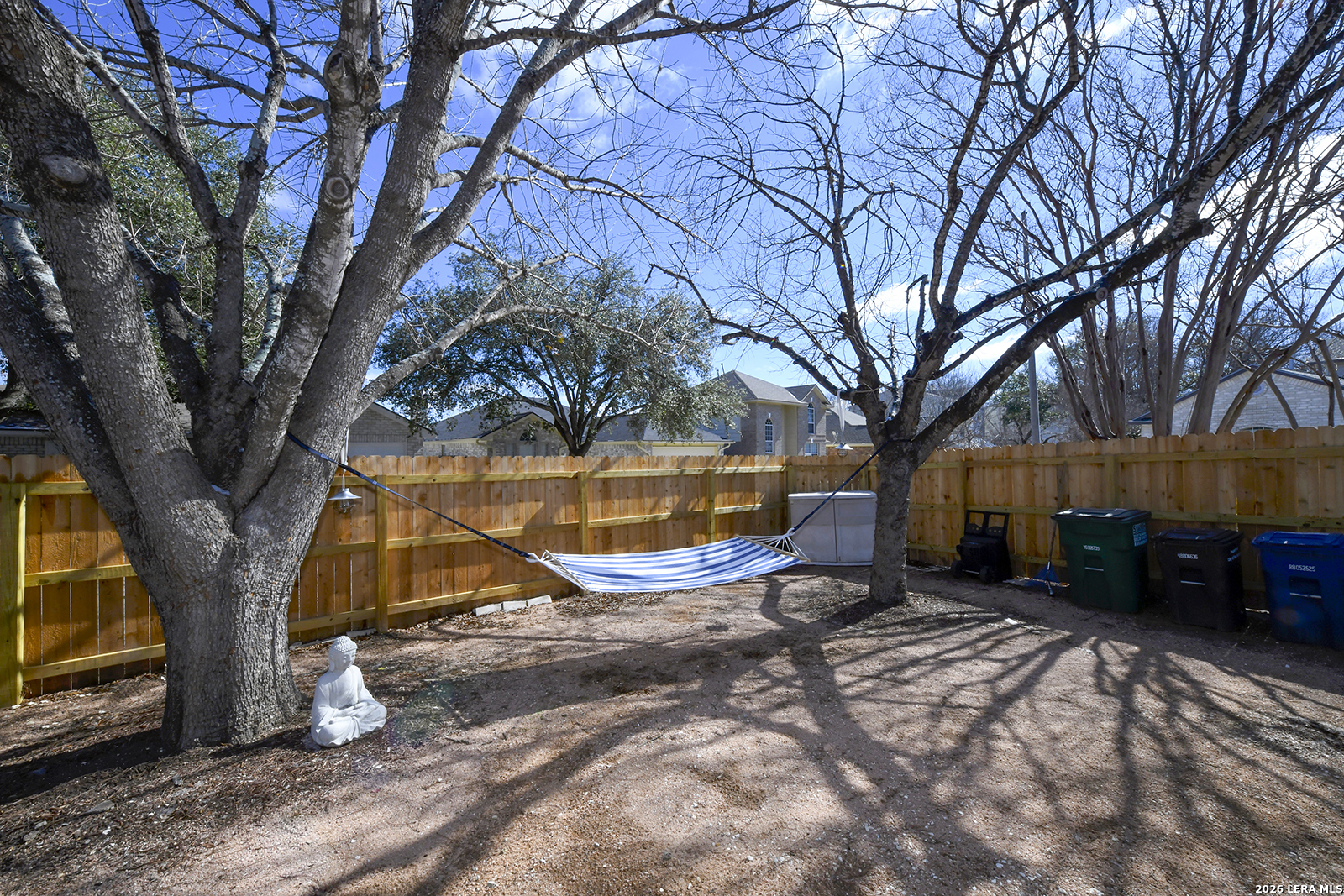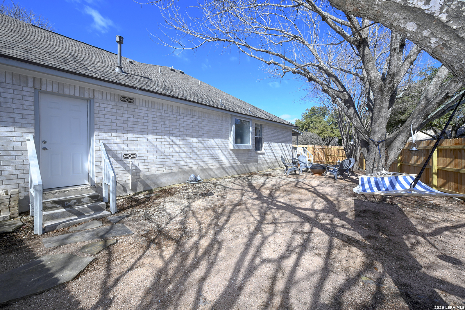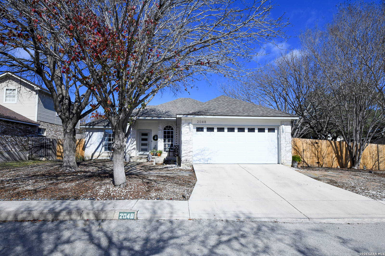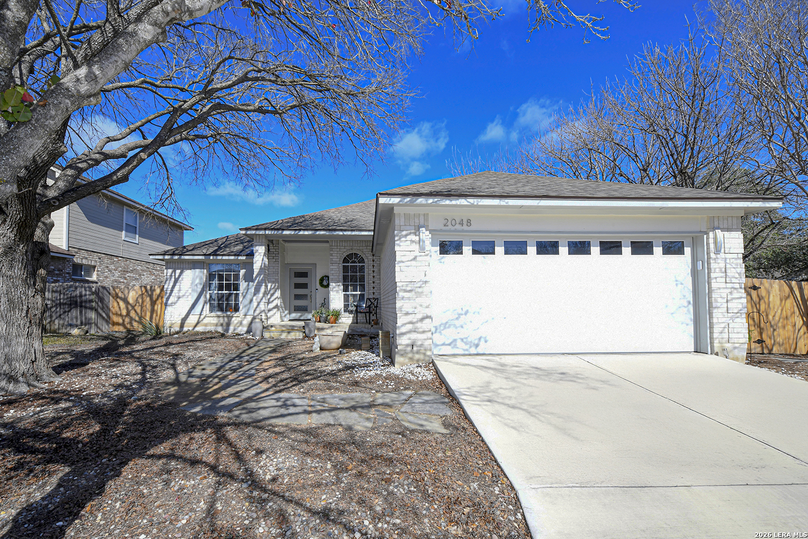 Come home to this beautifully updated 2-owner brick home in highly desirable and gated Parkside Estates. Fantastic location near Wurzbach Pkwy, Hwy 281, the airport, library, and HEB! Situated on a corner lot with mature trees and a maintained green space behind. This beauty underwent a complete interior renovation (2020-21), including replacing all the old plumbing with PEX. It features 13' vaulted ceilings, updated LED lighting and Pergo laminate flooring throughout, Daltile ceramic tile flooring in bathrooms and a custom wood-burning fireplace. The kitchen offers Malibu White shaker cabinetry (soft-close), quartz countertops & backsplash, LED cabinet lighting, Kraus undermount sink, Kohler pull-down faucet, and stainless steel appliances (2020). Primary suite includes electric fireplace, spa-style bathroom with custom glass walk-in shower, dual undermount sinks, quartz countertops, garden window, and a walk-in closet with custom built-ins. All this plus more major upgrades such as a newer roof (2021), Rheem high-efficiency water heater (2021), a professionally maintained water softener, custom exterior doors, and double garage door (2025). Plus a finished 2-car garage with mud sink and storage. Covered 19'x11' porch, xeriscaped yard, and shed and much. much, more! For the right offer, Refrigerator and washer and dryer will be included! Hurry! This one won't last!