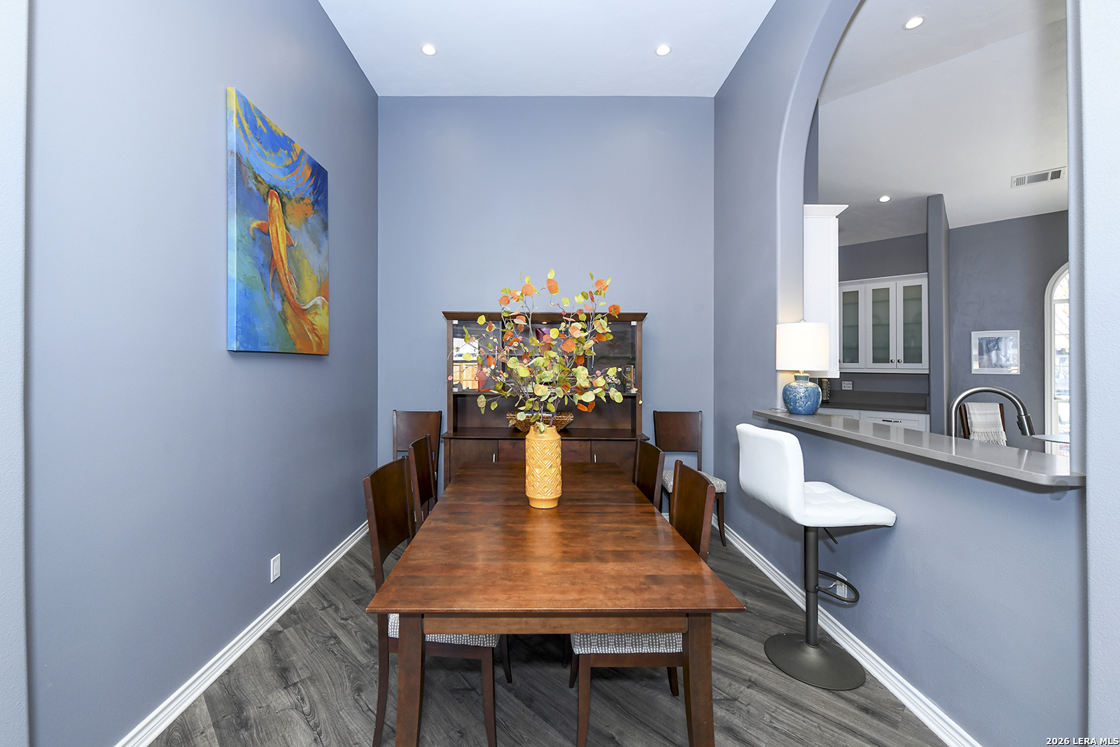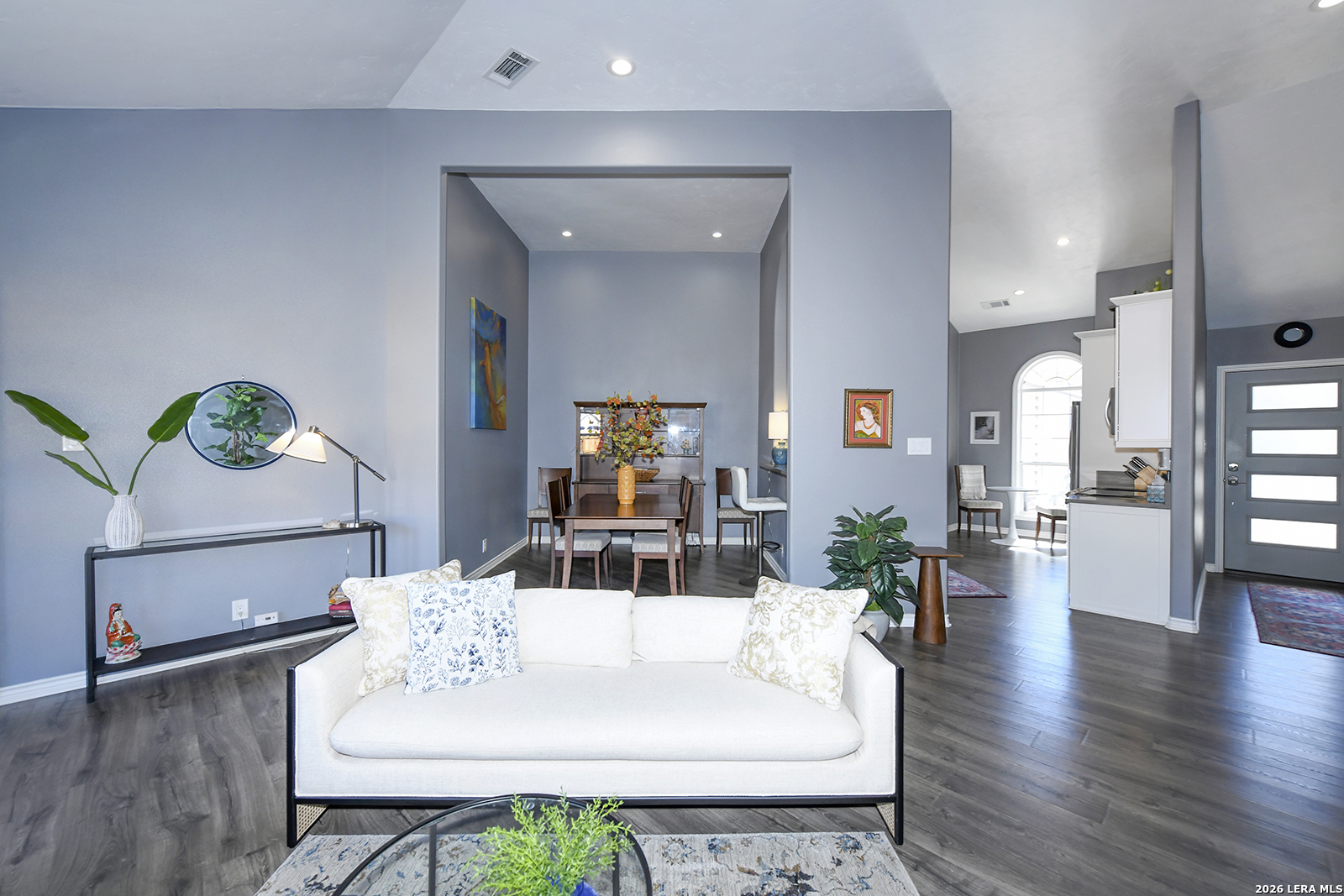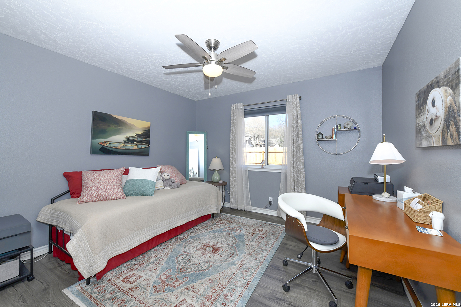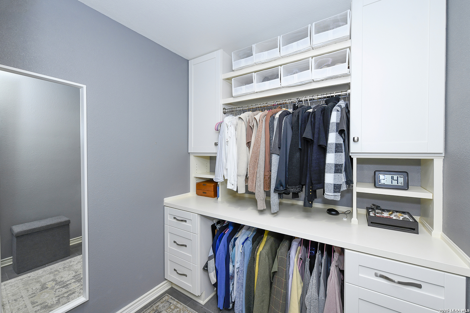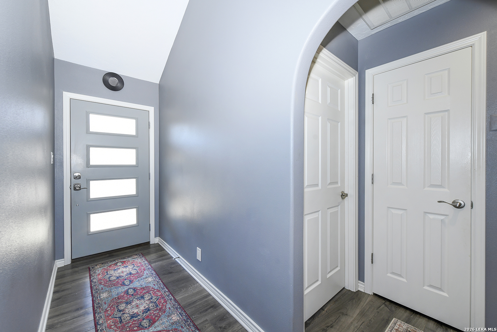 Come home to this beautifully updated 2-owner brick home in highly desirable and gated Parkside Estates. Fantastic location near Wurzbach Pkwy, Hwy 281, the airport, library, and HEB! Situated on a corner lot with mature trees and a maintained green space behind. This beauty underwent a complete interior renovation (2020-21), including replacing all the old plumbing with PEX. It features 13' vaulted ceilings, updated LED lighting and Pergo laminate flooring throughout, Daltile ceramic tile flooring in bathrooms and a custom wood-burning fireplace. The kitchen offers Malibu White shaker cabinetry (soft-close), quartz countertops & backsplash, LED cabinet lighting, Kraus undermount sink, Kohler pull-down faucet, and stainless steel appliances (2020). Primary suite includes electric fireplace, spa-style bathroom with custom glass walk-in shower, dual undermount sinks, quartz countertops, garden window, and a walk-in closet with custom built-ins. All this plus more major upgrades such as a newer roof (2021), Rheem high-efficiency water heater (2021), a professionally maintained water softener, custom exterior doors, and double garage door (2025). Plus a finished 2-car garage with mud sink and storage. Covered 19'x11' porch, xeriscaped yard, and shed and much. much, more! For the right offer, Refrigerator and washer and dryer will be included! Hurry! This one won't last!