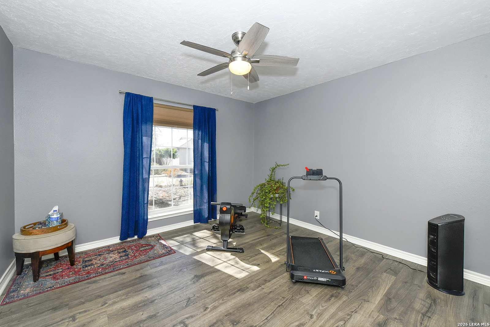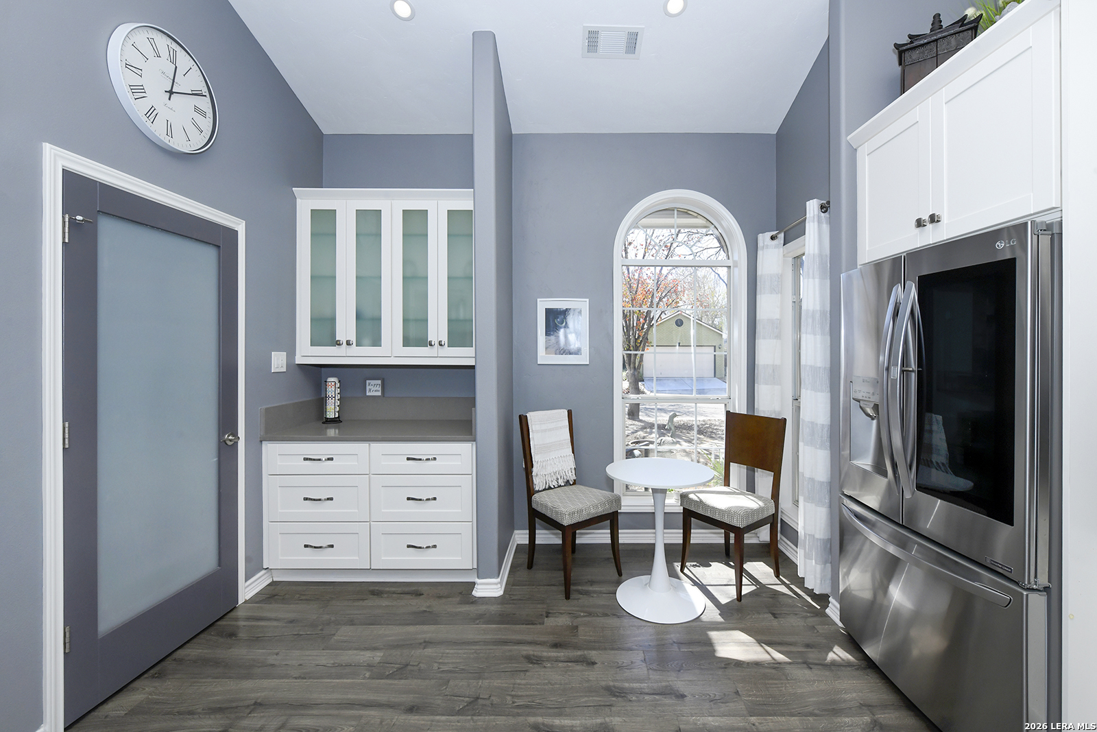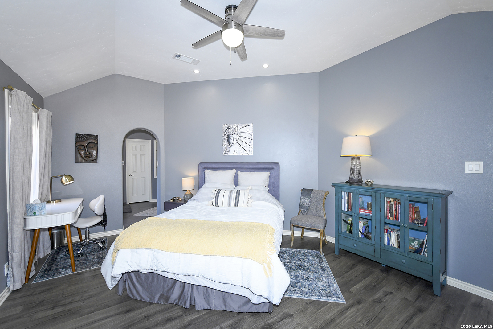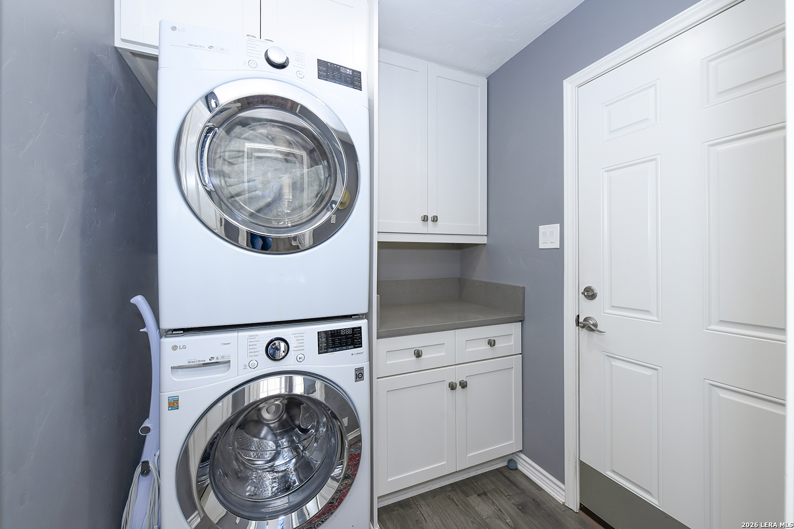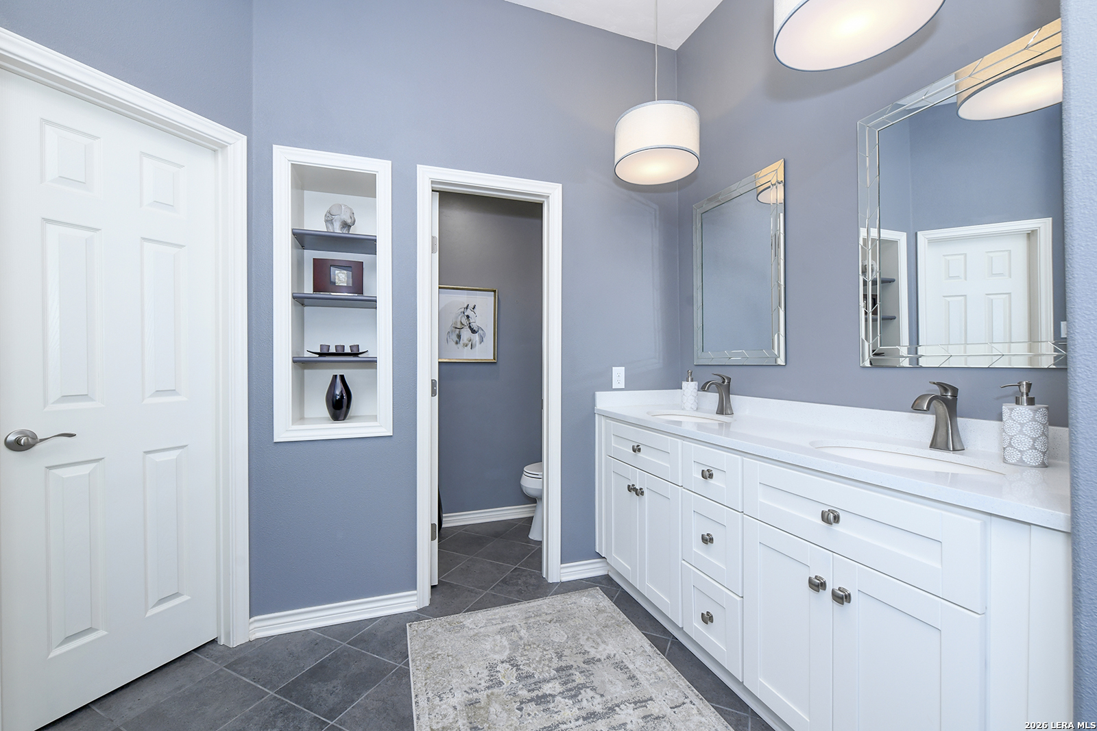 Come home to this beautifully updated 2-owner brick home in highly desirable and gated Parkside Estates. Fantastic location near Wurzbach Pkwy, Hwy 281, the airport, library, and HEB! Situated on a corner lot with mature trees and a maintained green space behind. This beauty underwent a complete interior renovation (2020-21), including replacing all the old plumbing with PEX. It features 13' vaulted ceilings, updated LED lighting and Pergo laminate flooring throughout, Daltile ceramic tile flooring in bathrooms and a custom wood-burning fireplace. The kitchen offers Malibu White shaker cabinetry (soft-close), quartz countertops & backsplash, LED cabinet lighting, Kraus undermount sink, Kohler pull-down faucet, and stainless steel appliances (2020). Primary suite includes electric fireplace, spa-style bathroom with custom glass walk-in shower, dual undermount sinks, quartz countertops, garden window, and a walk-in closet with custom built-ins. All this plus more major upgrades such as a newer roof (2021), Rheem high-efficiency water heater (2021), a professionally maintained water softener, custom exterior doors, and double garage door (2025). Plus a finished 2-car garage with mud sink and storage. Covered 19'x11' porch, xeriscaped yard, and shed and much. much, more! For the right offer, Refrigerator and washer and dryer will be included! Hurry! This one won't last!