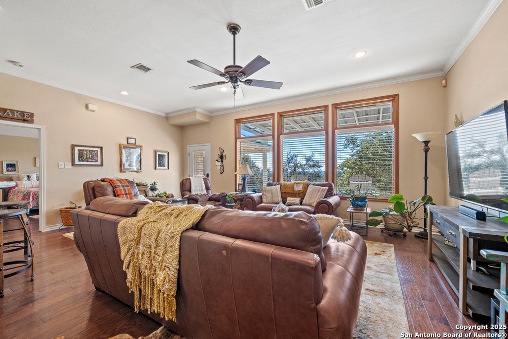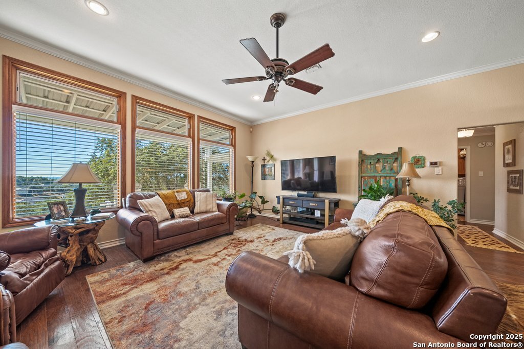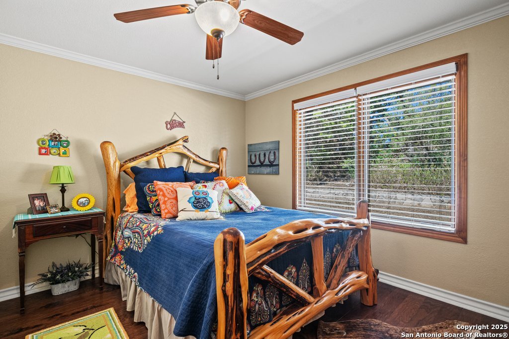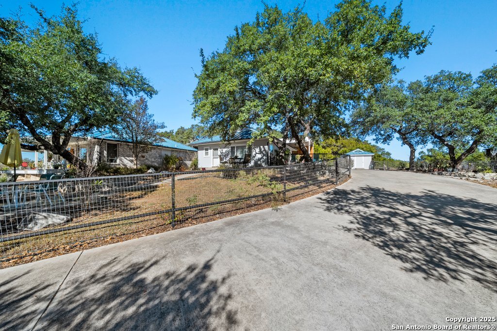 Nestled on just under 5 private, gated acres in the highly desired Rocky Creek Ranch subdivision, this Hill Country retreat offers the perfect blend of serenity, space, and comfort. Enter through the electric gate and take in sweeping views of the Texas Hill Country and Canyon Lake that set the tone for true getaway living. Inside, the home features warm real-wood flooring, upgraded swing-out windows that frame the scenery, and a cozy yet refined layout complete with granite countertops, stainless steel appliances, and an electric range. The property also includes a versatile 12x20 garage apartment with its own full bathroom-ideal for guests, extended family, or rental income. Outdoors, you'll find a covered RV carport with a 50-amp hookup, an irrigation system, a dedicated dog run, and plenty of usable land to create your own vision. All of this is located in a community known for its low POA dues yet outstanding amenities, including a private gated park with a clubhouse, pool, sports courts, and a playground-making this an exceptional opportunity to enjoy the best of Canyon Lake living.