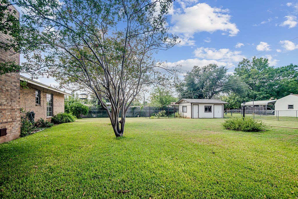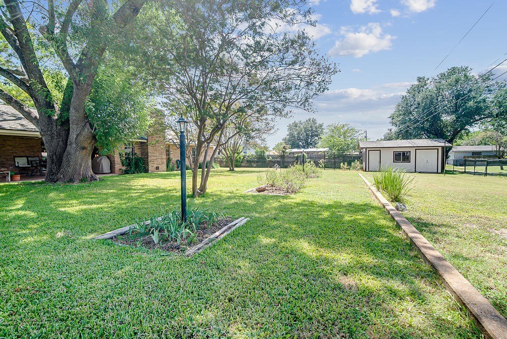VERY well-maintained 3BR/2BA home with 1,977 sf on a generous .38-acre lot. The spacious living room features a brick fireplace, built-ins, and French doors that open to the backyard. The kitchen offers plenty of cabinet space and connects easily to the dining area. The primary suite includes a dressing vanity, shower, and ample closet storage. Two additional bedrooms and a full hall bath provide comfortable accommodations for family or guests. Outside, a covered patio overlooks the fenced yard with mature trees, perfect for relaxing or entertaining. A detached workshop/storage building adds versatile space. Located in an established and welcoming neighborhood. * MOTIVATED SELLERS! *