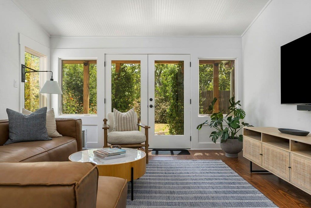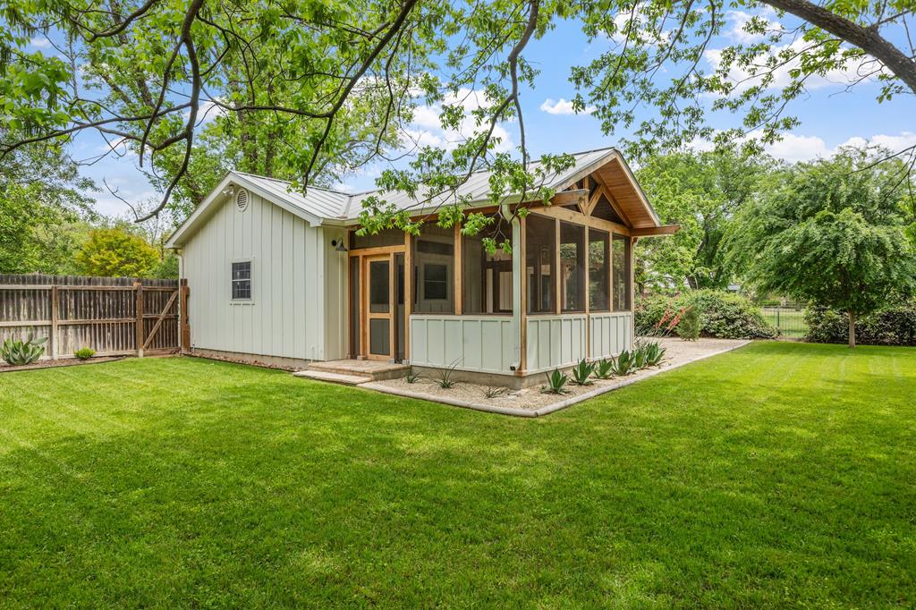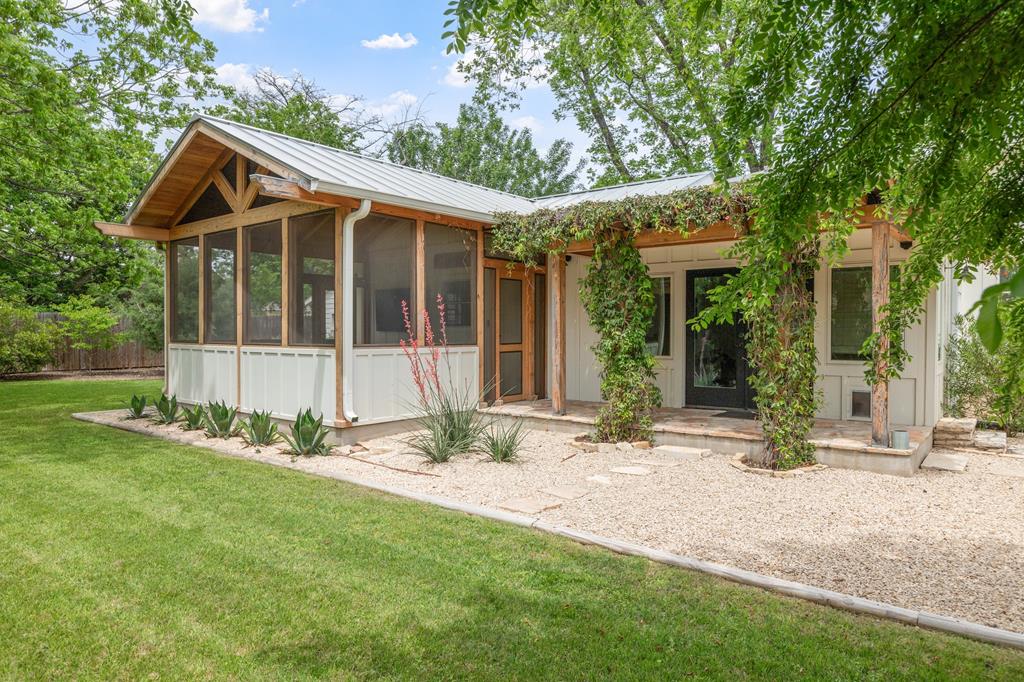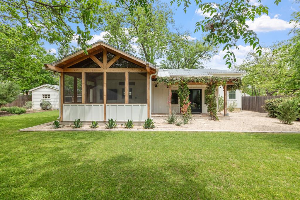 Welcome to this charming Hill Country style farmhouse nestled on an oversized lot just a short walk from historic Main St. The property underwent a meticulous transformation in 2023, blending modern comforts w/ timeless character. Step inside to discover a spacious open concept living, dining & kitchen area that features soaring ceilings, rich wood floors, exposed beams & a stunning floor-to-ceiling stone fireplace flanked by cabinetry. The chef's kitchen is a dream, boasting solid surface counters, a Sub-Zero refrigerator, stainless steel appliances, a Wolf gas range, a wine refrigerator & a large sit-at island perfect for cooking & entertaining. This home offers two primary suites, each with beautifully renovated bathrooms & ample closet space. A flexible sunroom overlooks the lush, perfectly landscaped yard providing a peaceful retreat. The impressive screened porch offers even more space to relax & enjoy the outdoors. With abundant storage & thoughtful updates, this property is the perfect blend of luxury & convenience. Don't miss this exquisite farmhouse. More Information: https://www.adamccarroll.com/listings/205-e-centre/