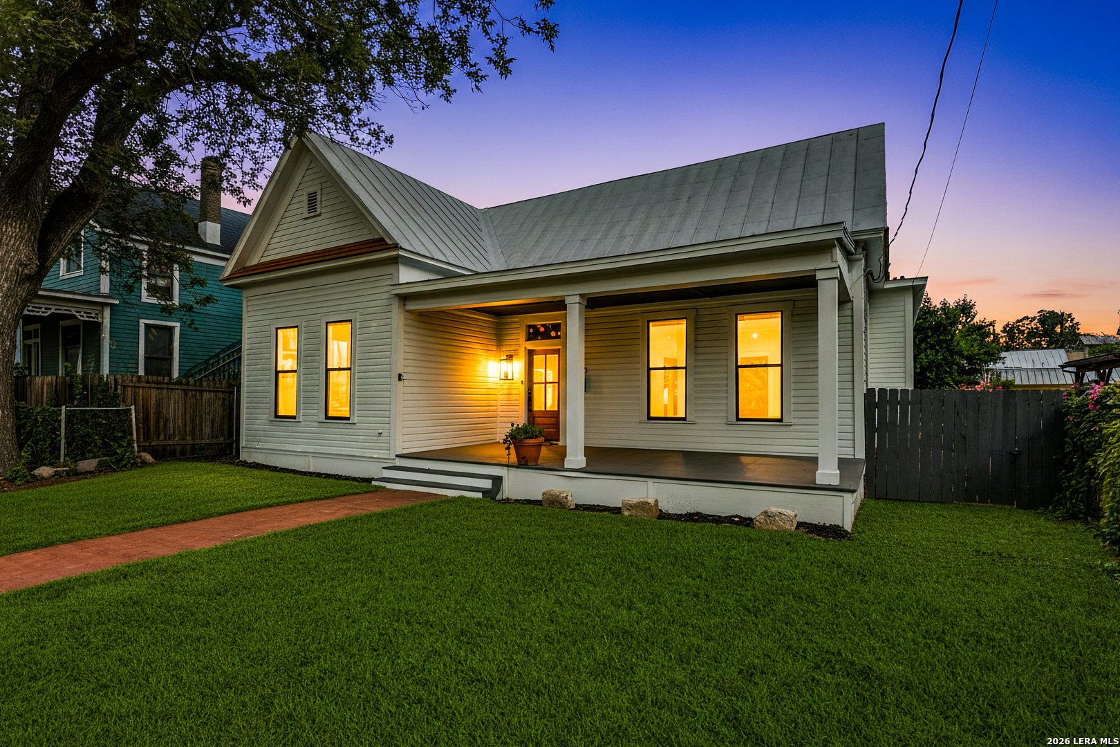 Experience the rare blend of historic character and modern design at 205 E. Rische in the heart of Southtown. Located in the Nathan Historic District, this beautifully restored Folk Victorian home captures the architectural charm buyers love about nearby King William-while delivering the comfort and efficiency of a complete, down-to-the-studs renovation. Step inside and immediately feel the scale and craftsmanship: soaring ceilings, oversized six-foot windows, herringbone hardwood floors, exposed beams, and a custom stained-glass transom that pays tribute to the home's 1930 origins. Natural light fills the open living spaces, creating an inviting setting for both everyday living and entertaining. At the center of the home is a stunning chef's kitchen designed for gathering. The oversized island anchors the space, complemented by luxury appliances, Calcutta Idlillo quartz countertops, and warm brass finishes that bring the Urban Farmhouse aesthetic to life. The thoughtful layout includes three spacious bedrooms and two-and-a-half refined baths, offering flexibility for guests, family, or a home office. Step outside to a covered rear porch ideal for relaxing evenings, while gated parking adds convenience and peace of mind. From your front porch, enjoy views of the iconic Pioneer Flour Mills and the Tower of the Americas. Just minutes from Blue Star Arts Complex, King William, and the River Walk, this location delivers the walkable Southtown lifestyle buyers seek. Homes with this level of restoration and location rarely come available-schedule your private showing today.