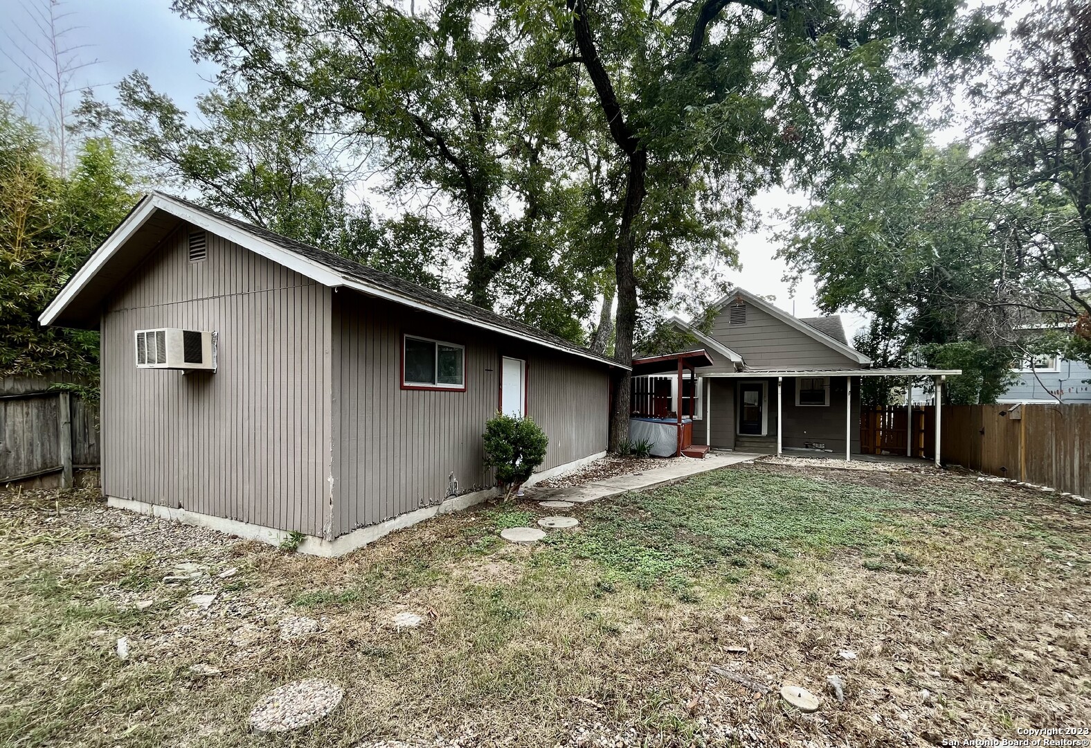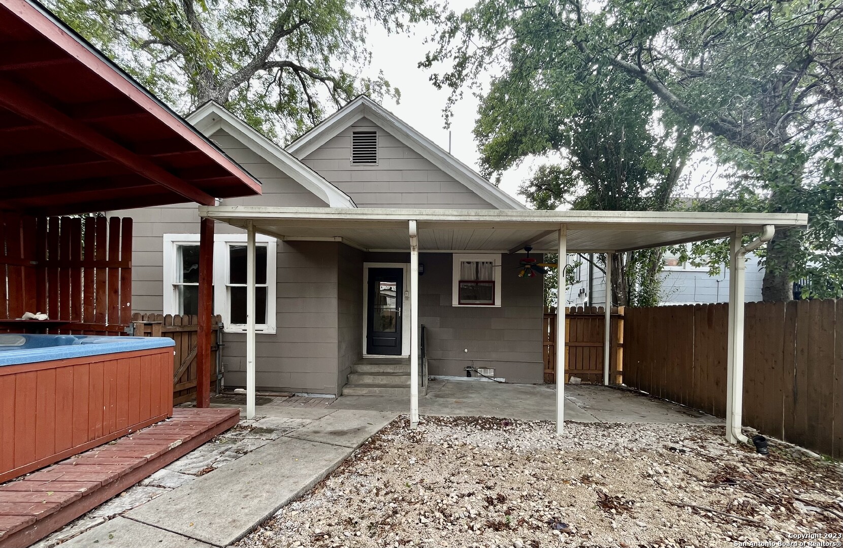 *AGGRESSIVE BREEDS NOT ALLOWED* Birdy has a Low Cost Security Deposit Alternative Option Available for qualified applicants thru Rhino. Welcome to this charming 2-bedroom, 1-bathroom home, thoughtfully designed to offer modern comforts and a cozy living space. This well-appointed residence features a combination of warm wood and elegant ceramic tile, creating a stylish and inviting atmosphere. The kitchen is well-equipped with essential appliances, including a stove/range, microwave, and a refrigerator, ensuring convenience in meal preparation and everyday living. The bathroom is equipped with a practical shower/tub combo, and a laundry closet is conveniently located within the bathroom, allowing for a stacked washer and dryer setup. Step outside to the backyard, where you'll discover a covered patio, perfect for outdoor relaxation or dining. Additionally, there's a hot tub for your enjoyment, all within the confines of a privacy fence that ensures a serene outdoor environment. This home also includes a detached 1-car garage, offering shelter for your vehicle and additional storage space. With its modern comforts and cozy design, this home presents an excellent rental opportunity. "RESIDENT BENEFIT PACKAGE" ($50/Month)*Renters Insurance Recommended*PET APPS 1st$20/2nd+$15