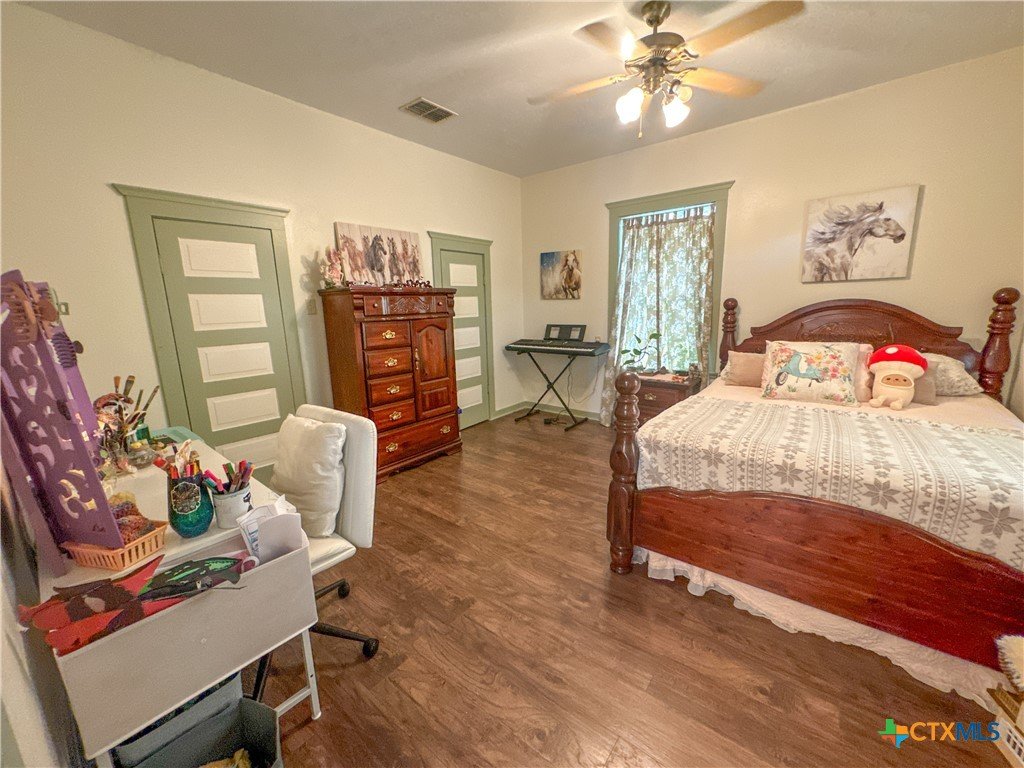 MOTIVATED SELLERS!!! Charming 5 bed 2 and 1/2 bath home in downtown Yoakum. Located just around the corner from HEB and the city park. This property has two lots giving you ample amount of space to for those family functions, large families or a space to start up a business. The 25x40 shop was added in 2023. The home has a fresh coat of paint throughout. All major systems have been updated including HVAC, plumbing and electrical. The AC is still under warranty. Two of the upstairs bedrooms have their own study/office/living area. There is also a Pear tree and two Pecan trees for some fresh fruit. The chicken coop is set up for your fresh eggs too! Come get that country feel right in the heart of Yoakum, Tx