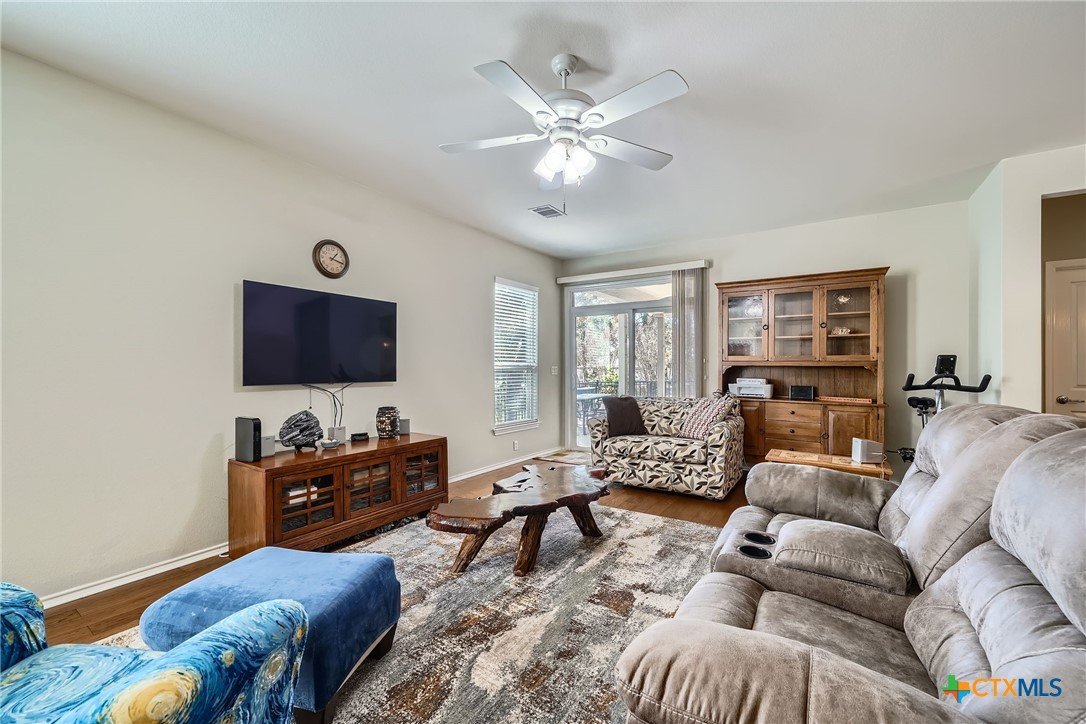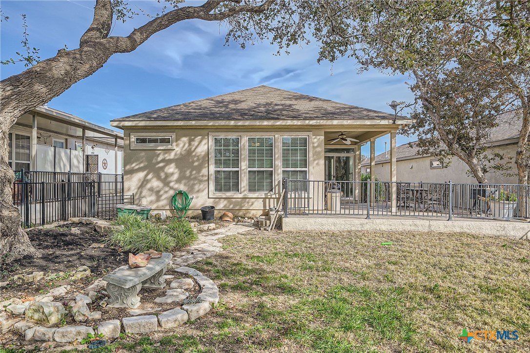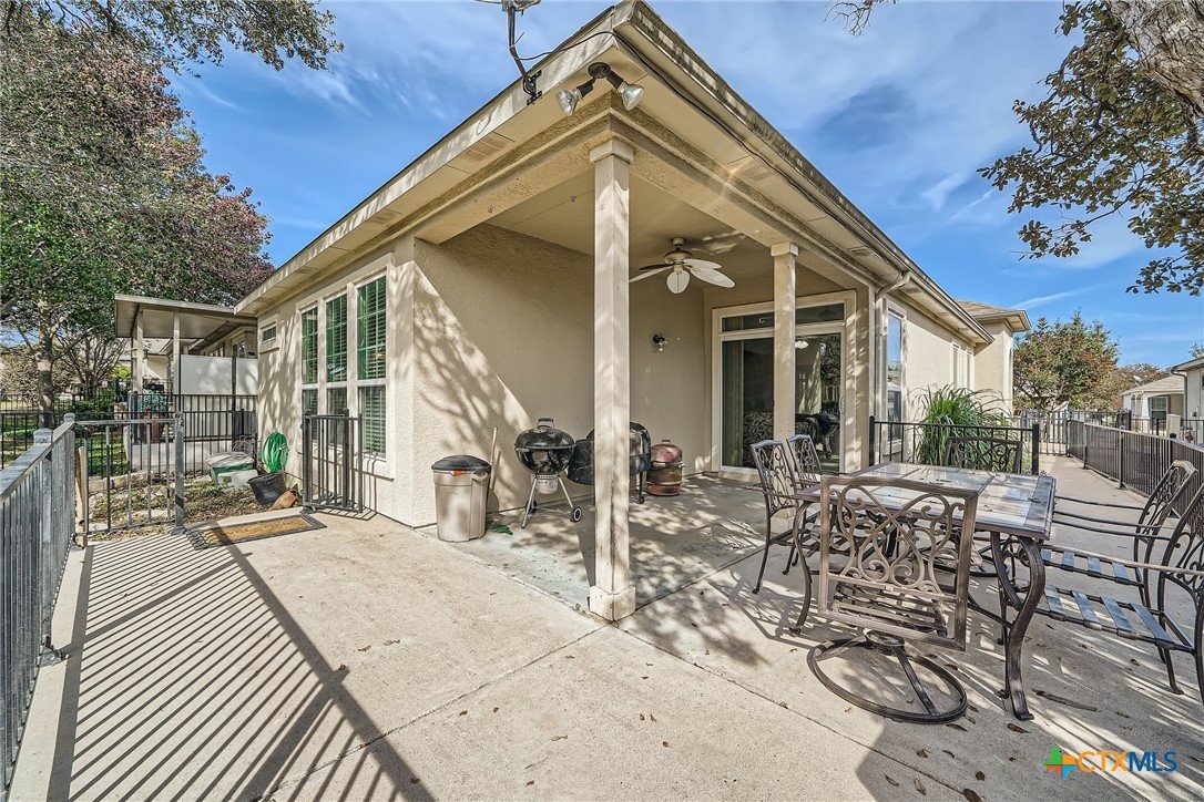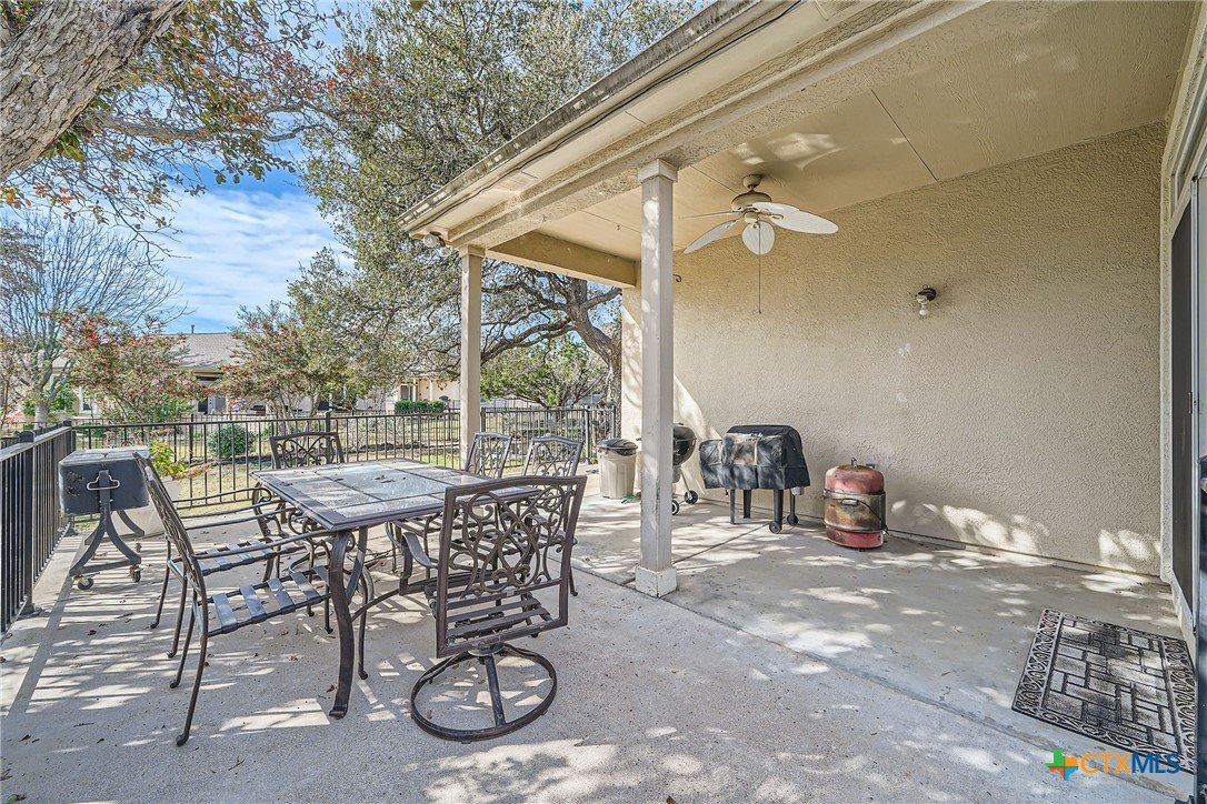 Welcome to Sun City in Georgetown! This charming Llano floorplan boasts 2-bedrooms, 2-bathrooms and offers a blend of comfort and style. Inside, an inviting living area connects seamlessly to a well-appointed kitchen. The master suite features an ensuite bathroom, providing convenience and privacy. Enjoy outdoor living with two lovely patios—perfect for morning coffee on the front patio and evening gatherings on the back patio, surrounded by lush landscaping and mature trees. As part of the Sun City community, you'll have access to amenities like golf courses, fitness centers, and pools. New Roof installed mid-April 2025! Experience the best of indoor and outdoor living in this vibrant, active-adult community.