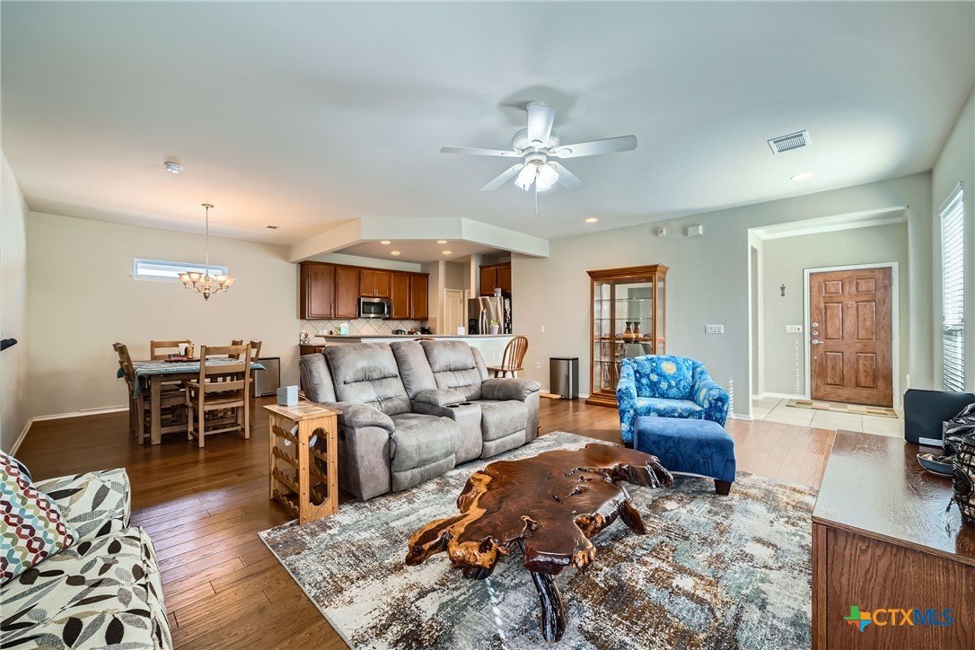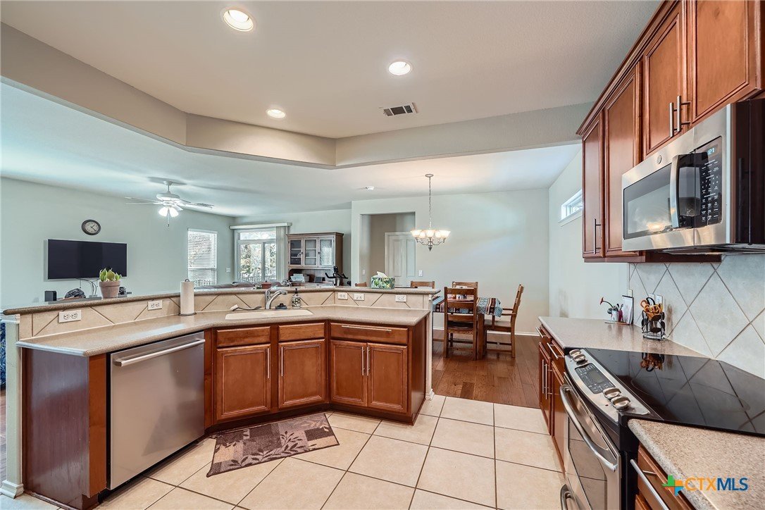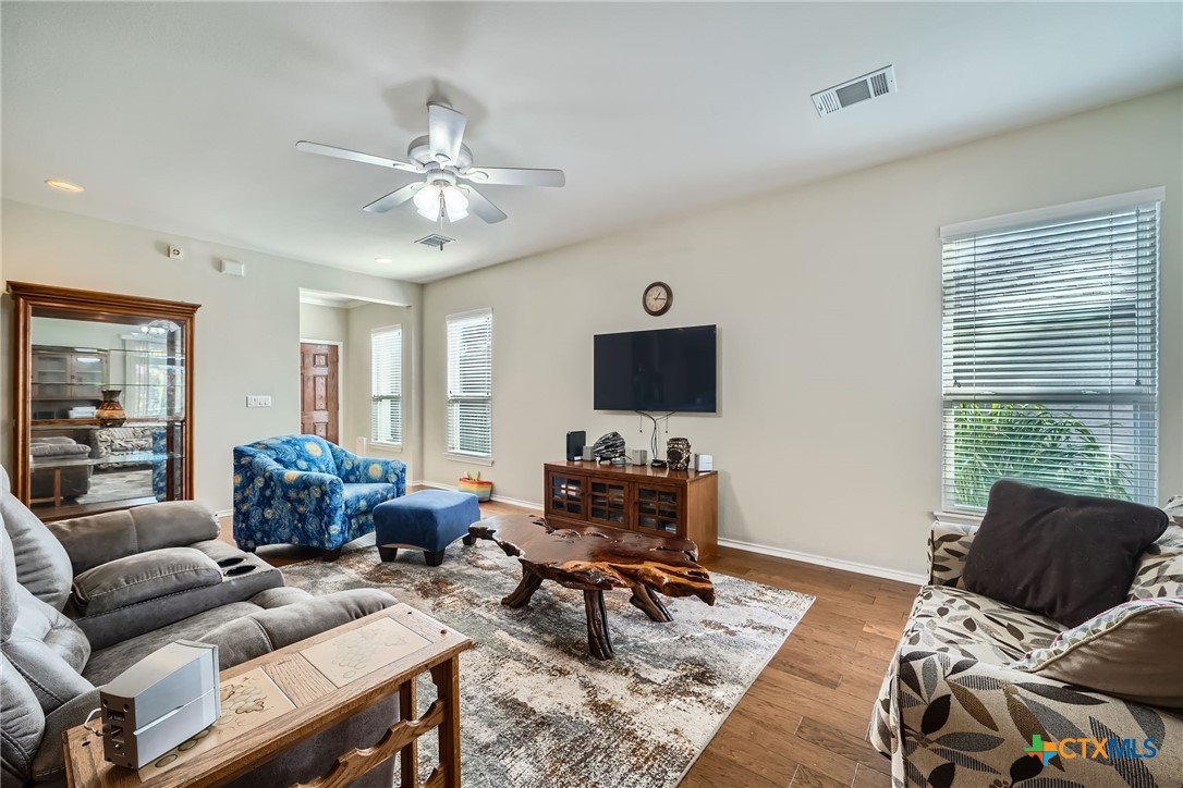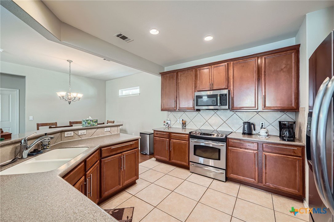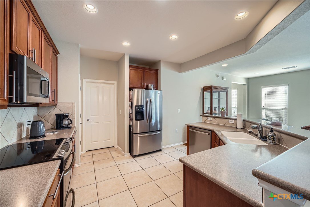 Welcome to Sun City in Georgetown! This charming Llano floorplan boasts 2-bedrooms, 2-bathrooms and offers a blend of comfort and style. Inside, an inviting living area connects seamlessly to a well-appointed kitchen. The master suite features an ensuite bathroom, providing convenience and privacy. Enjoy outdoor living with two lovely patios—perfect for morning coffee on the front patio and evening gatherings on the back patio, surrounded by lush landscaping and mature trees. As part of the Sun City community, you'll have access to amenities like golf courses, fitness centers, and pools. New Roof installed mid-April 2025! Experience the best of indoor and outdoor living in this vibrant, active-adult community.
