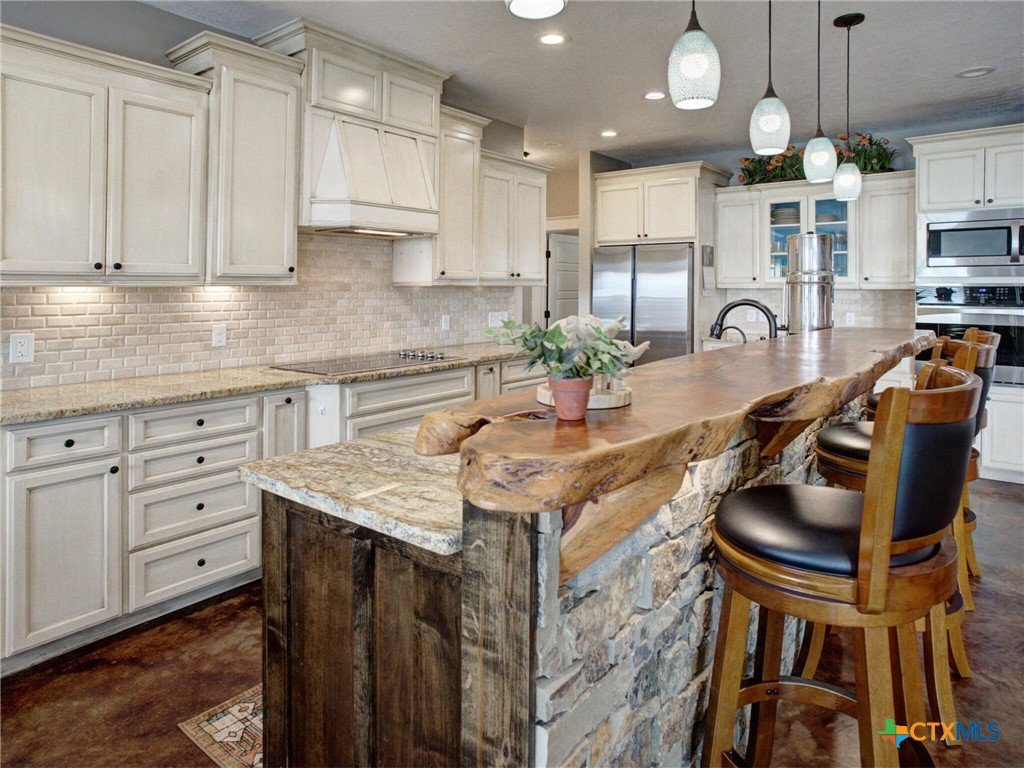 Don’t miss this stunning custom-built 2,350 square foot home, thoughtfully designed for both comfort and entertainment. From the moment you step through the front doors, you’re welcomed into a spacious open-concept layout that showcases everything this home has to offer. The expansive living area features a raised ceiling, large windows, and a stone gas fireplace, creating a warm and inviting focal point. The gourmet island kitchen is a true showstopper, offering custom cabinetry with granite countertops, walk-in pantry, and plenty of space for gathering. The home offers four bedrooms and two bathrooms. The primary suite is a relaxing retreat with an ensuite bath featuring double vanities, a tiled walk-in shower, a jetted tub, and a spacious walk-in closet. Additional highlights include an indoor laundry room with storage, a private office, and a two-car garage. Outside, enjoy a large, covered patio and outdoor kitchen with a stone wood burning fireplace. The kitchen includes two grills, a smoker, mini-fridge, and sink. The patio leads to a beautiful in-ground pool with hot tub and security fencing. The property includes an additional garage or workshop, storage for yard equipment and a sprinkler system. This home truly has it all—schedule your private showing today!