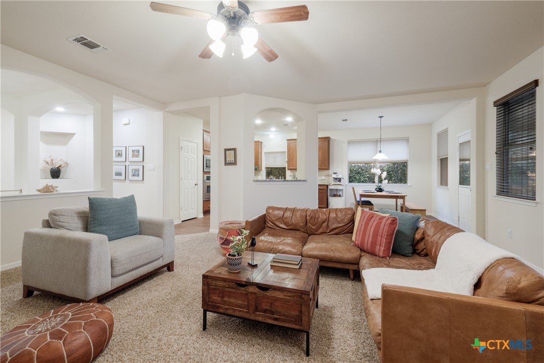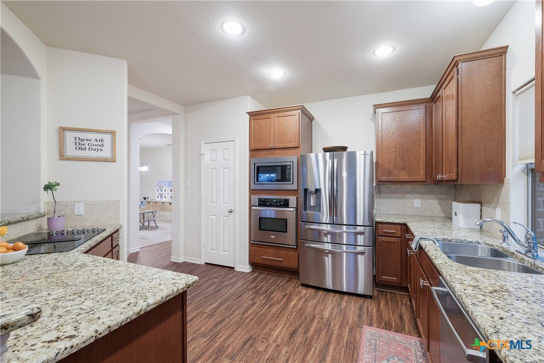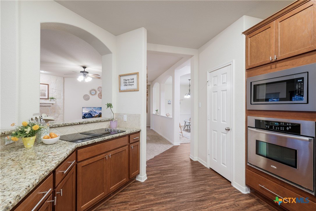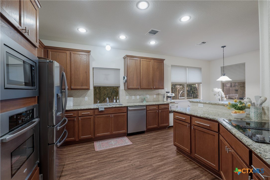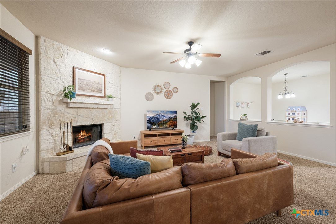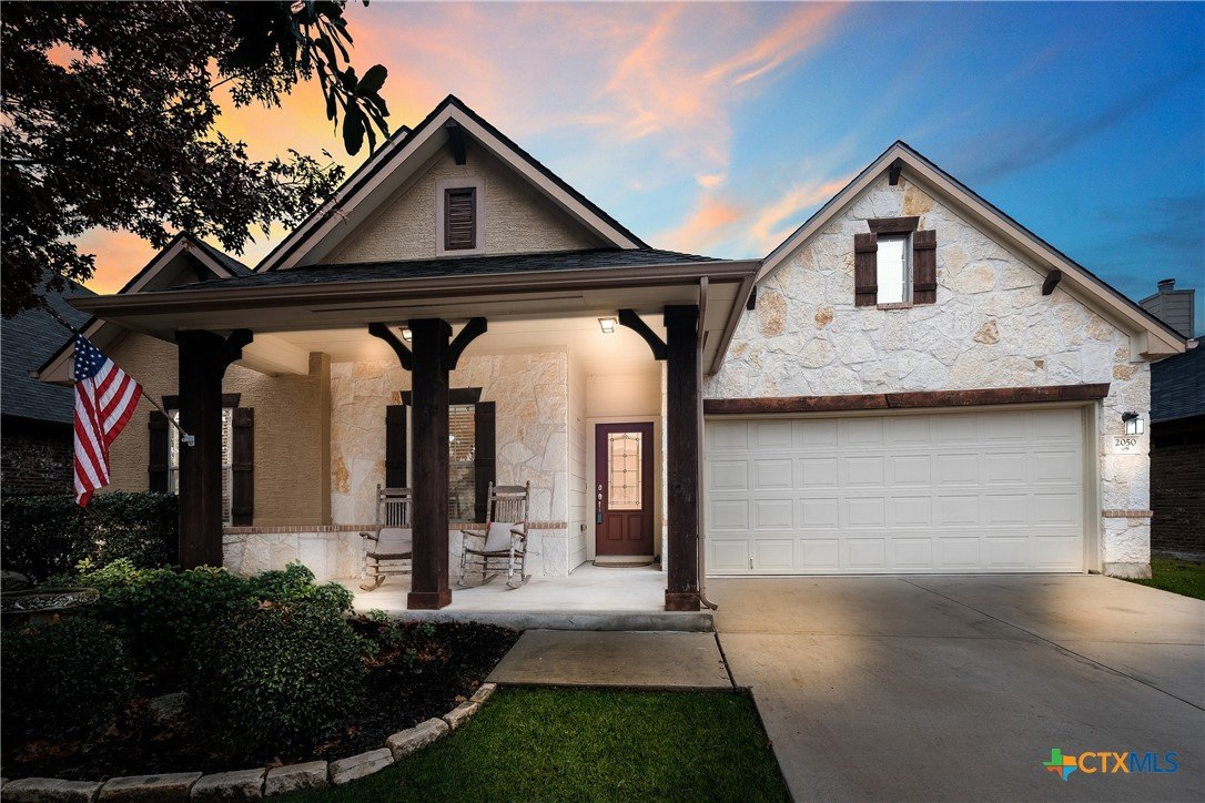 Welcome to this beautifully maintained home, where charm meets modern convenience. The inviting stone exterior facade and spacious front porch gives you a warm welcome. Inside, you'll find new flooring in the entry and kitchen, complementing the open layout that effortlessly connects the main living spaces. The kitchen is a chef's dream, featuring stainless steel appliances, granite countertops, and ample cabinetry-perfect for cooking and entertaining. The primary suite offers a peaceful retreat and primary bath includes double sinks, a separate garden tub, and a walk-in shower. Step outside to the oversized back porch, where you can relax in your private backyard, offering plenty of space for outdoor living. Recent updates provide peace of mind, including a new roof (2023), new water softener (2023), and water heater replaced in 2021. This home blends style, comfort, and thoughtful updates, making it the perfect place to call home. This is where your next chapter begins!
