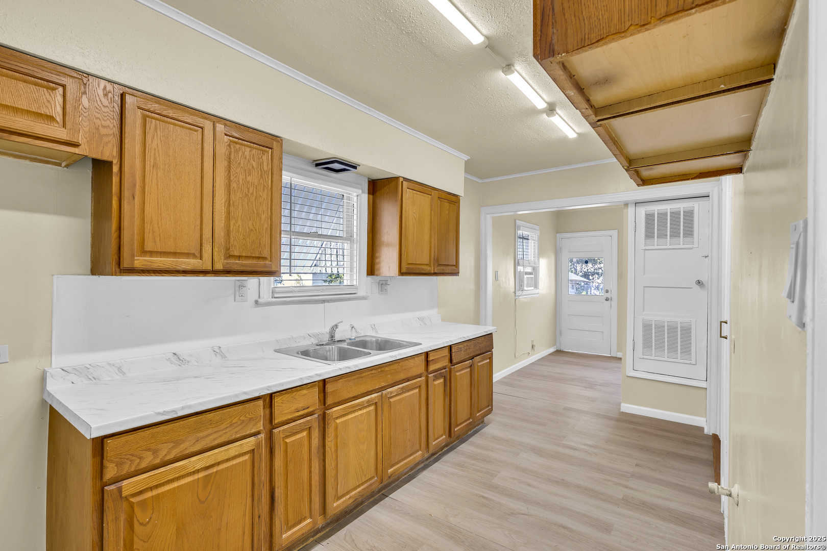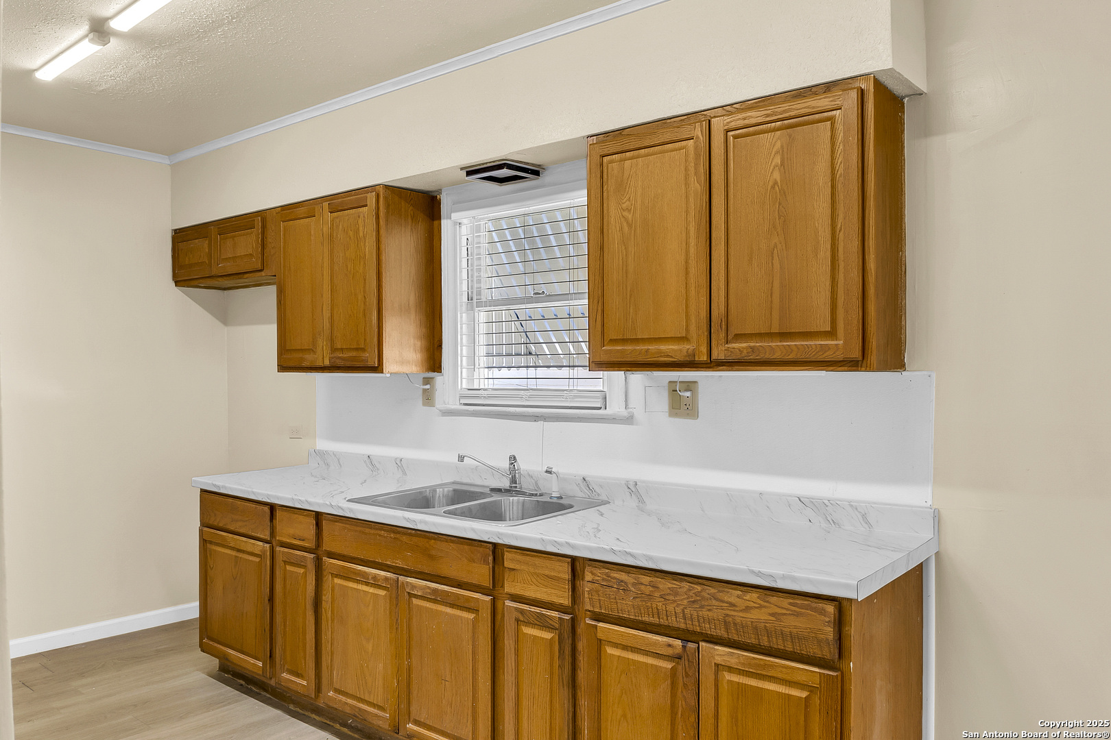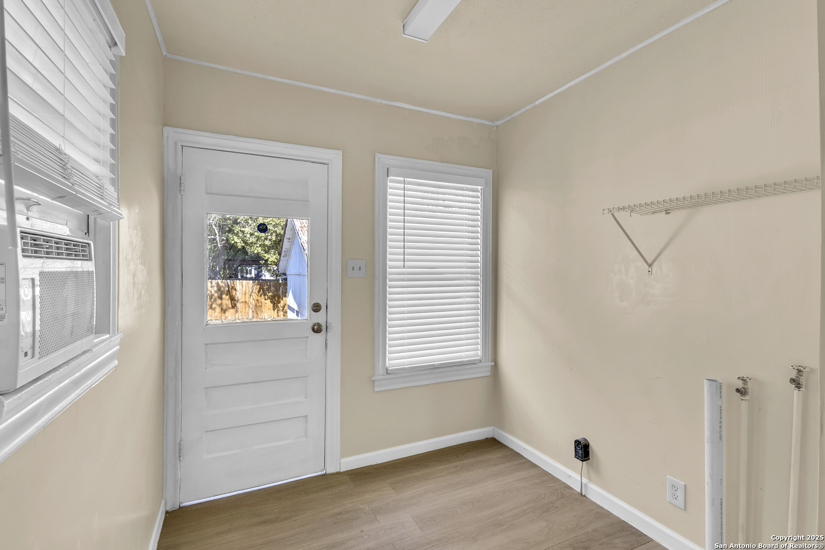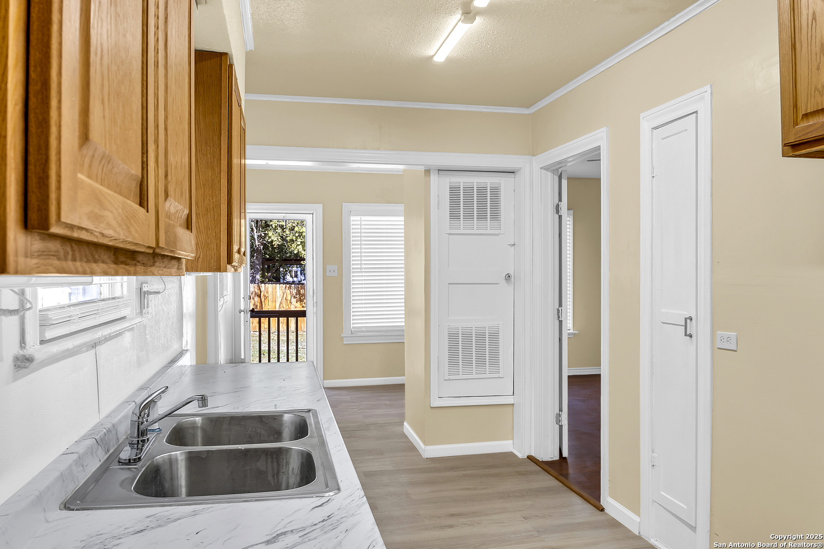 Renovated Corner-Lot Home Minutes from Downtown & Project Marvel. This move-in-ready 3-bedroom, 1-bath home offers 1,054 sq. ft. of comfortable living space on a quiet corner lot, blending classic character with thoughtful updates throughout. Interior renovations include new flooring, trim, interior and exterior paint, updated lighting and hardware, new electrical plates, and window air-conditioning units with heating functions. Structural improvements provide added reassurance with a leveled foundation and repaired bathroom floor. The garage has been fully restored with new wood, fresh paint, and re-hung sliding doors. The exterior features refreshed landscaping, a repainted fence, and a complete power wash, enhancing curb appeal and maintaining low upkeep. The spacious corner lot provides both privacy and flexibility for outdoor use. Located in San Antonio's Eastside corridor, the property offers convenient access to Downtown San Antonio, the AT&T Center, Fort Sam Houston, St. Philip's College, and major routes including I-10 and I-37. The area includes a mix of established homes and new construction, as well as proximity to Project Marvel, a redevelopment initiative featuring plans for a new Spurs arena, expanded entertainment and convention spaces, and infrastructure improvements.