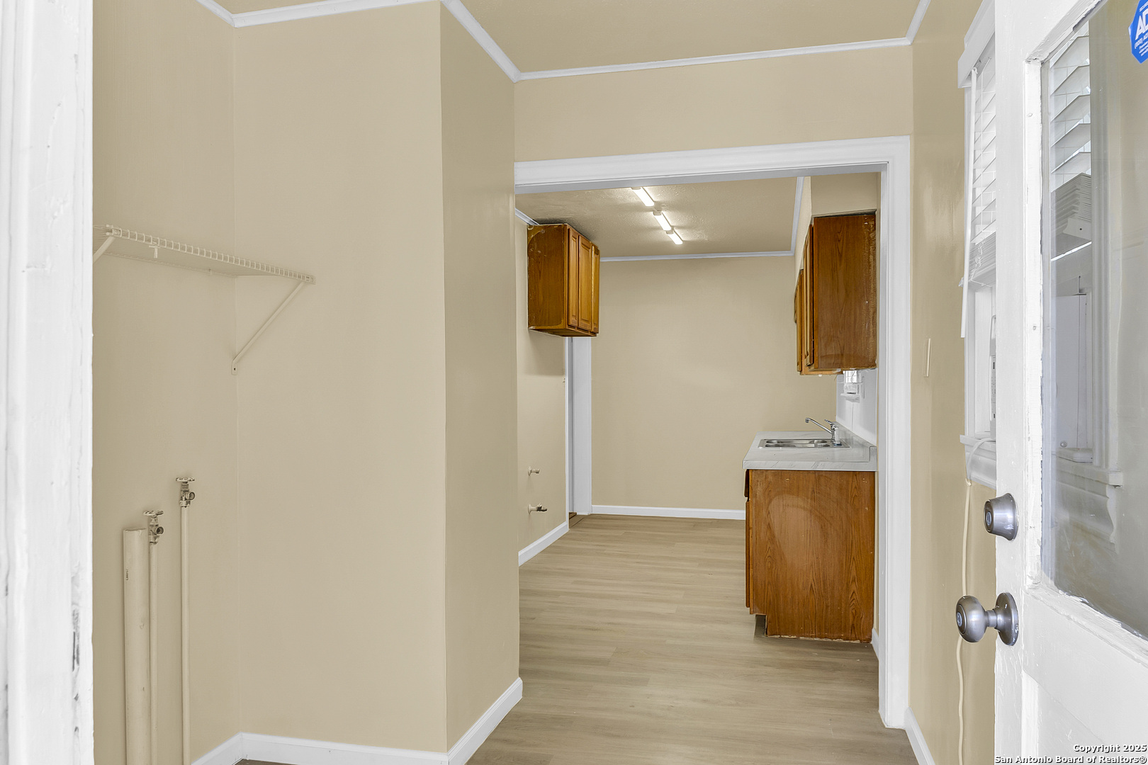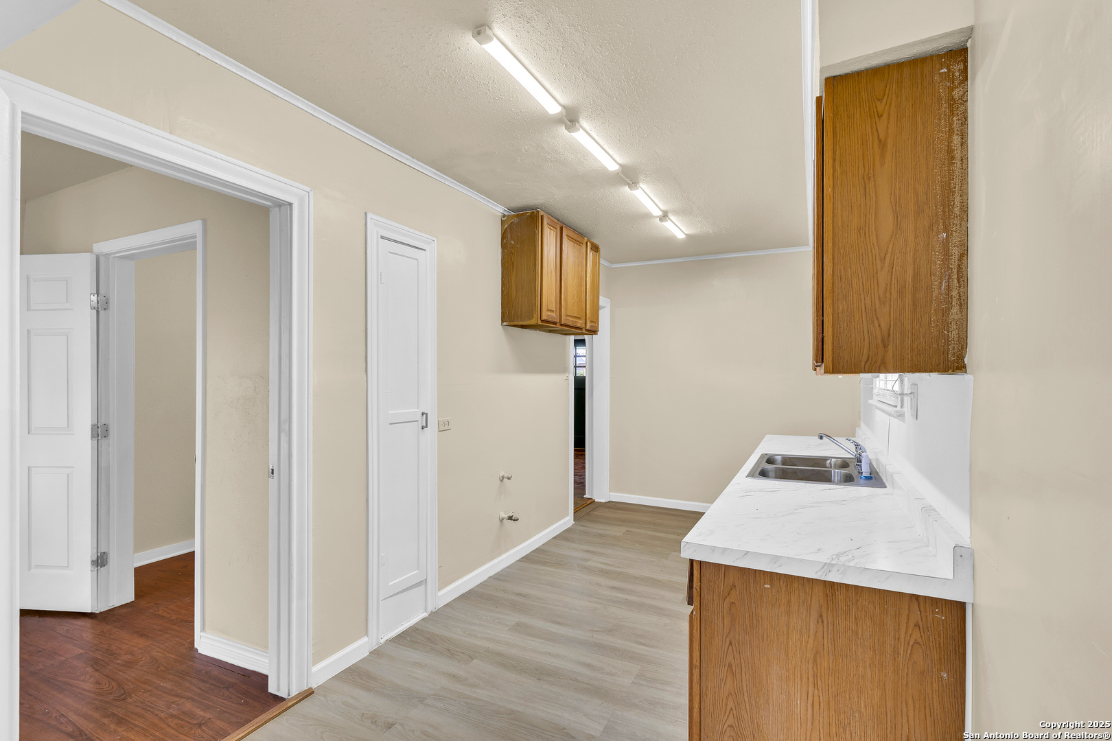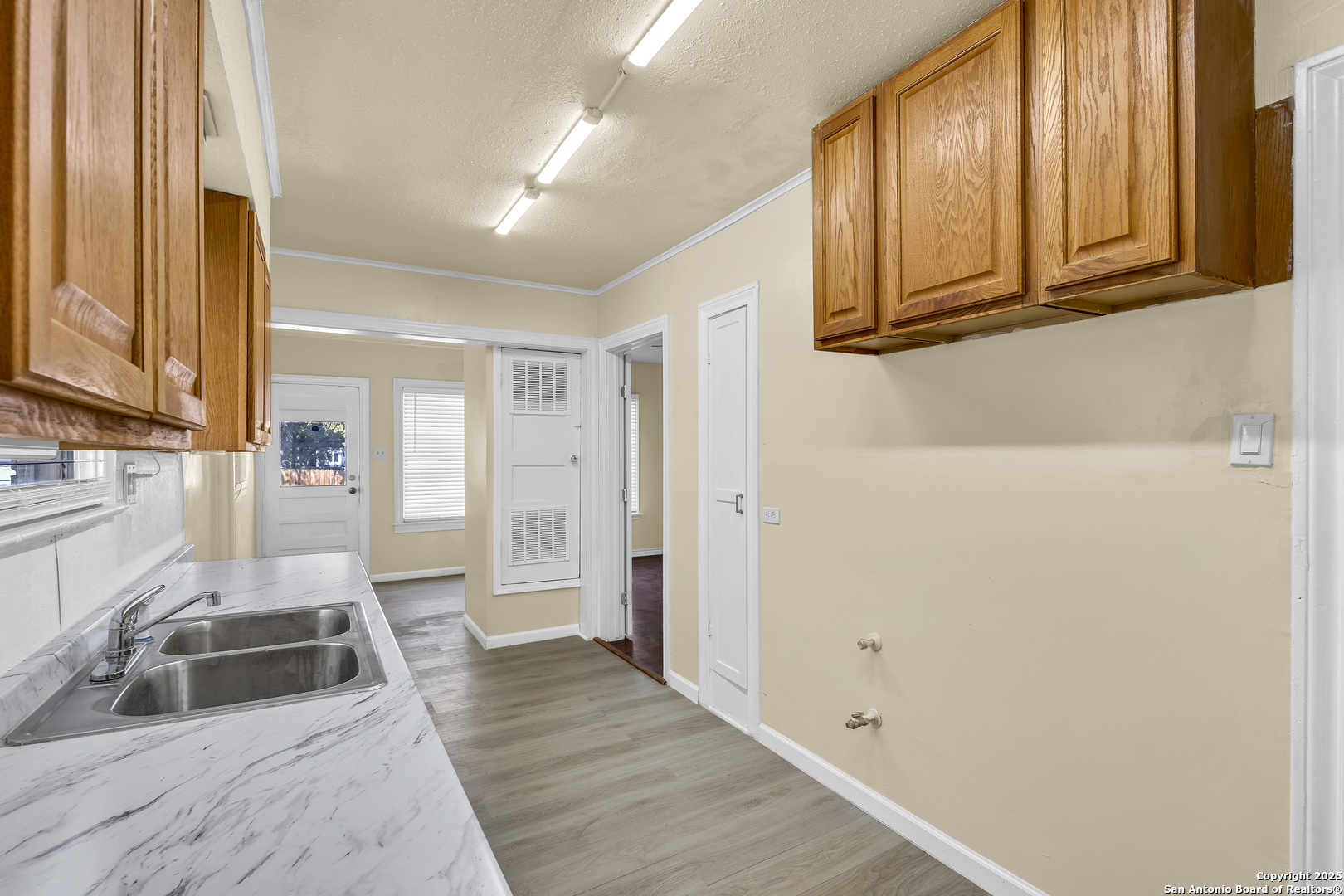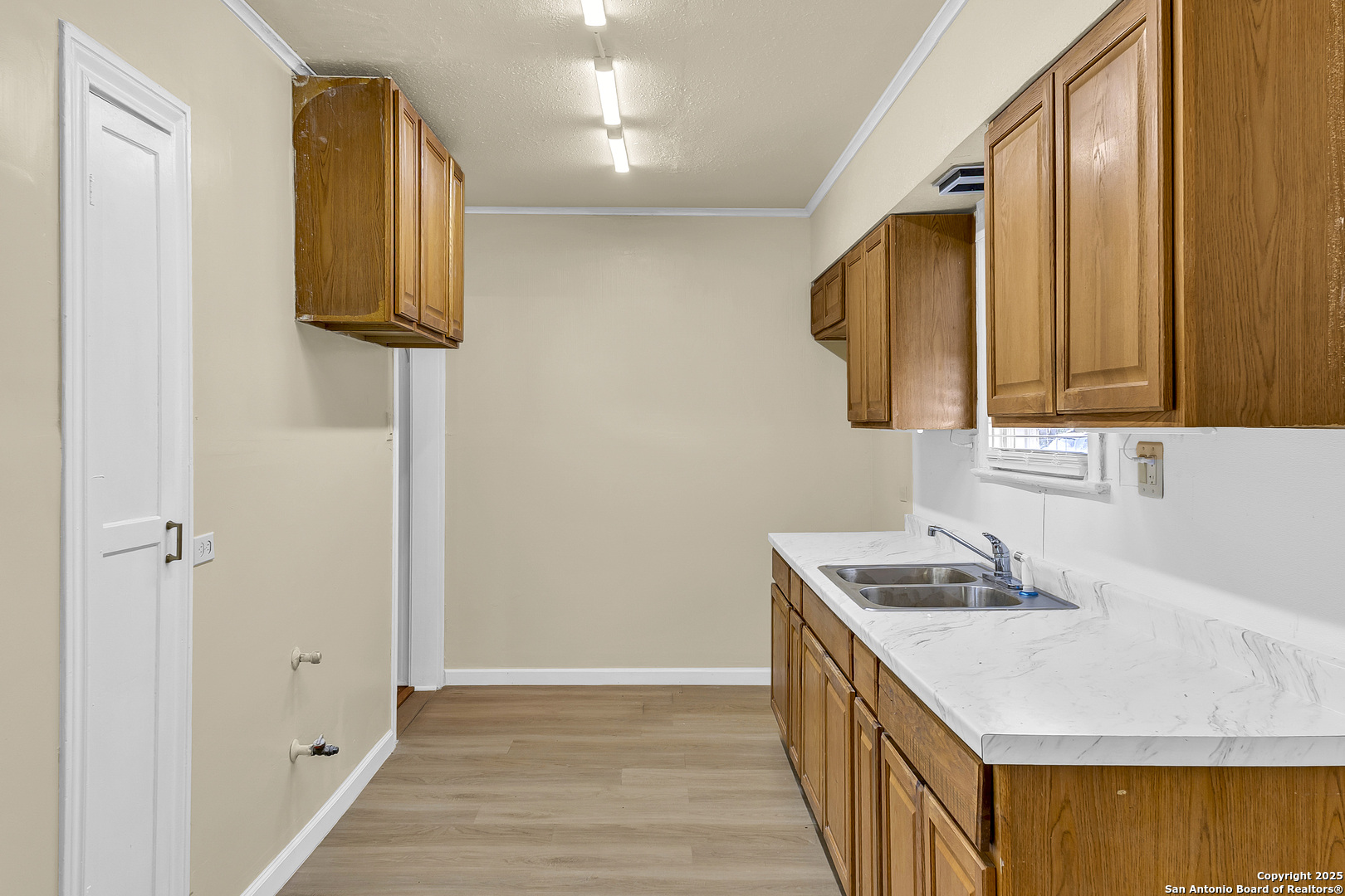 Renovated Corner-Lot Home Minutes from Downtown & Project Marvel. This move-in-ready 3-bedroom, 1-bath home offers 1,054 sq. ft. of comfortable living space on a quiet corner lot, blending classic character with thoughtful updates throughout. Interior renovations include new flooring, trim, interior and exterior paint, updated lighting and hardware, new electrical plates, and window air-conditioning units with heating functions. Structural improvements provide added reassurance with a leveled foundation and repaired bathroom floor. The garage has been fully restored with new wood, fresh paint, and re-hung sliding doors. The exterior features refreshed landscaping, a repainted fence, and a complete power wash, enhancing curb appeal and maintaining low upkeep. The spacious corner lot provides both privacy and flexibility for outdoor use. Located in San Antonio's Eastside corridor, the property offers convenient access to Downtown San Antonio, the AT&T Center, Fort Sam Houston, St. Philip's College, and major routes including I-10 and I-37. The area includes a mix of established homes and new construction, as well as proximity to Project Marvel, a redevelopment initiative featuring plans for a new Spurs arena, expanded entertainment and convention spaces, and infrastructure improvements.