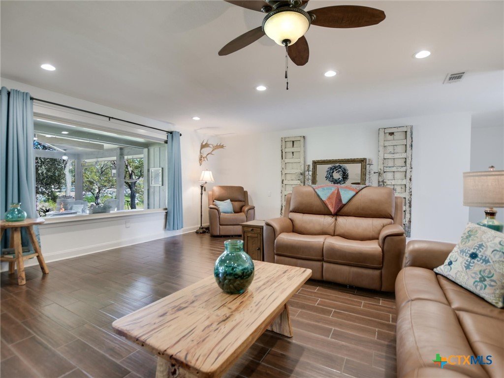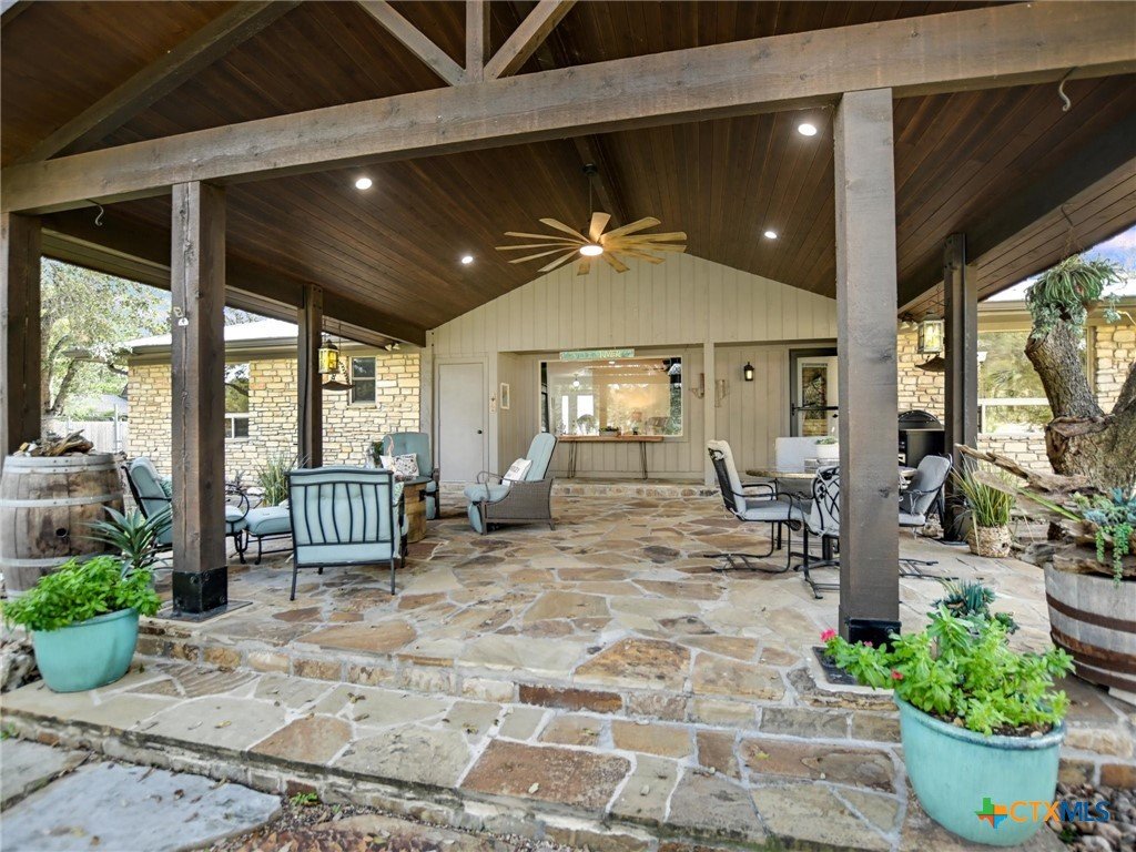 Welcome to your dream riverfront retreat! This remodeled 3-bedroom, 3-bathroom home sits on 1.02 acres, along the banks of the beautiful Blanco River. Nestled among large, mature trees, this property offers an ideal blend of tranquility and nature’s beauty—all within reach of the river’s soothing waters. Step inside to experience a light-filled interior that has been updated to provide comfort and style. The large picture windows bring the outdoors in, capturing breathtaking views from multiple rooms. Imagine waking up each morning to the serene sight of the water and lush greenery just beyond your windows, creating a sense of peace. Extend your living space outdoors with the covered back patio, the perfect spot for morning coffee, evening dinners, or simply unwinding while soaking in your surroundings. This expansive outdoor area lets you enjoy the best of Texas Hill Country living. This rare riverfront property offers the best of both worlds: a beautifully updated, comfortable home set on a spacious lot with access to the Blanco River. This home provides the perfect setting for a lifestyle of relaxation and natural beauty. Don't miss this opportunity to own a one-of-a-kind riverfront property!