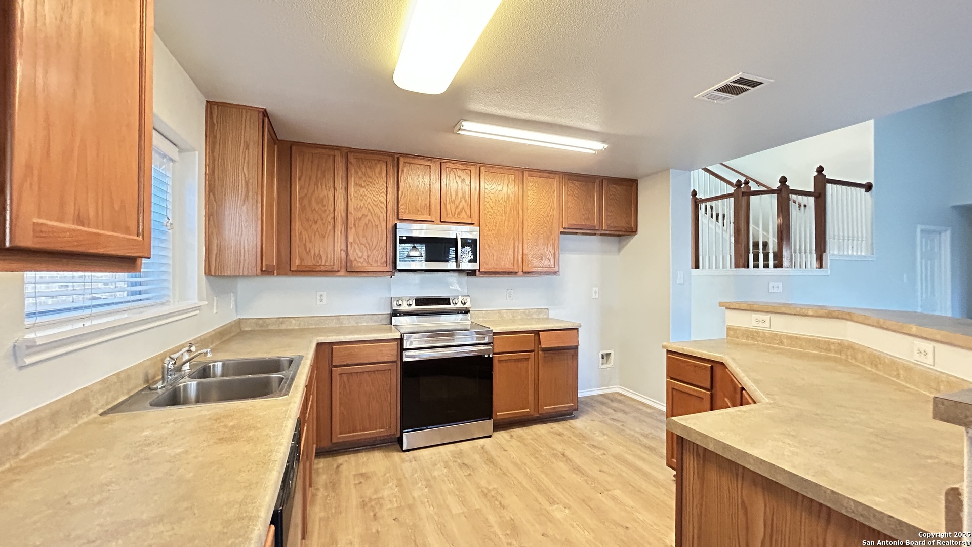 Freshly updated two-story home featuring 4 bedrooms and 3.5 baths. Enjoy two spacious living areas downstairs, a separate dining area for entertaining, and a versatile loft upstairs-perfect for a home office or playroom. The open main living space boasts tall ceilings and connects effortlessly to the kitchen, which offers an island and stainless steel appliances. All bedrooms are generously sized and feature lovely arch top windows. With new flooring and fresh paint throughout, this home feels clean and inviting. Outside, a good-sized backyard awaits, ideal for family gatherings and outdoor activities.