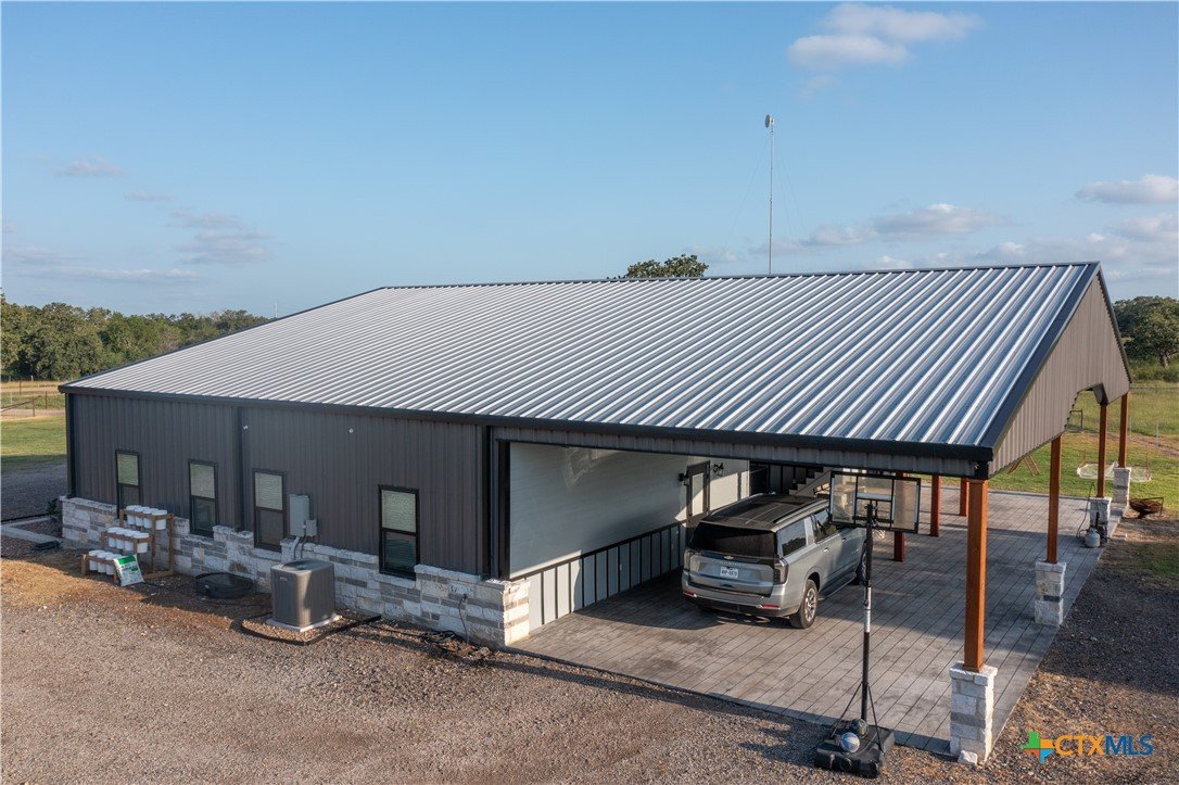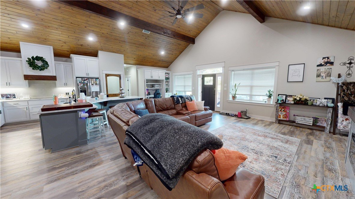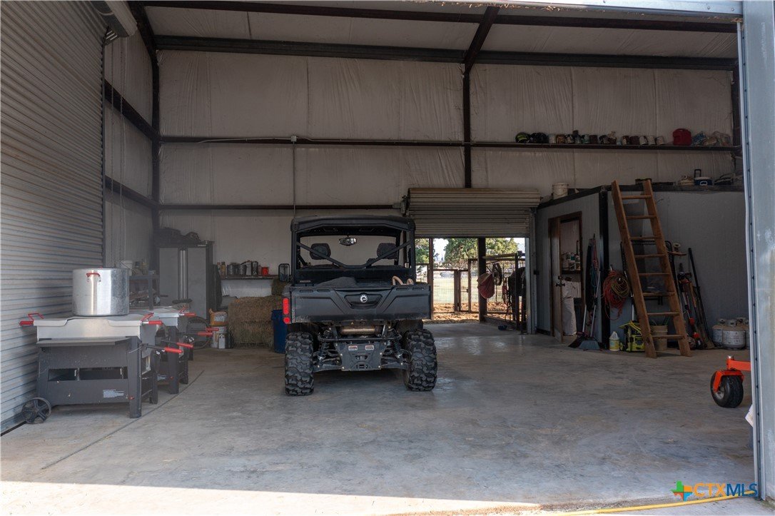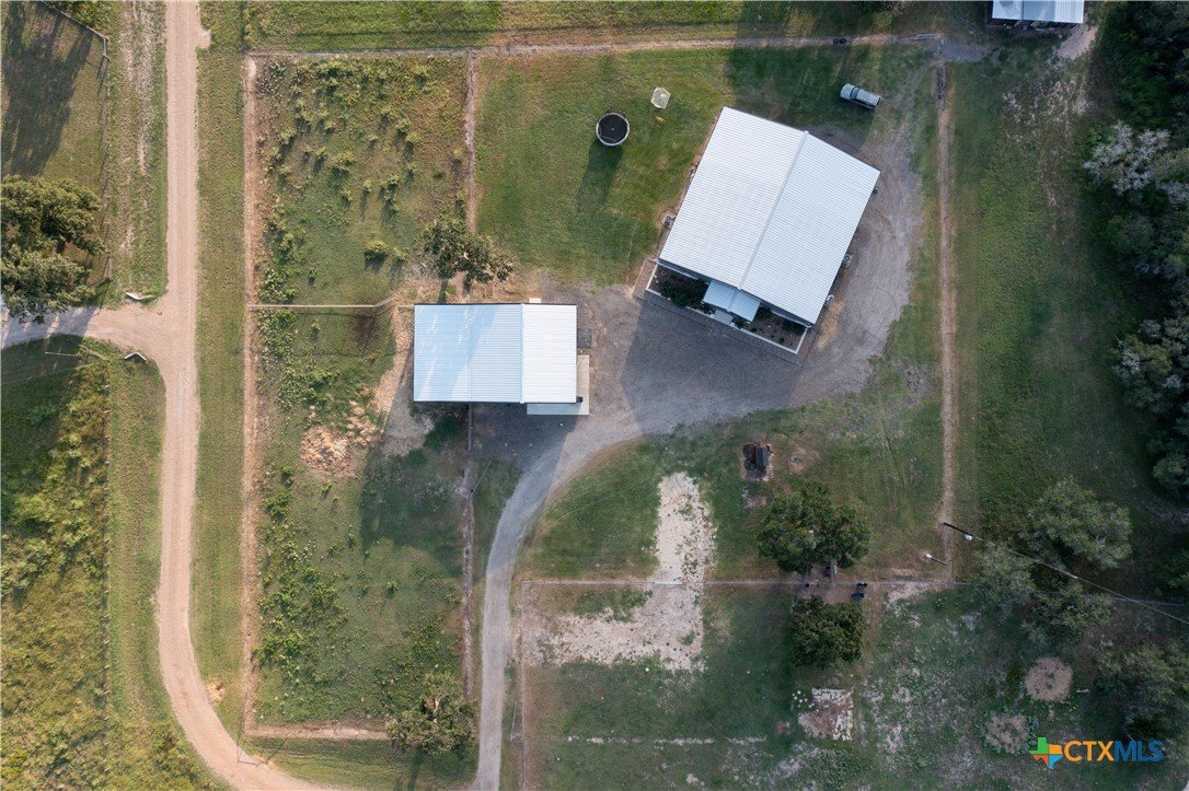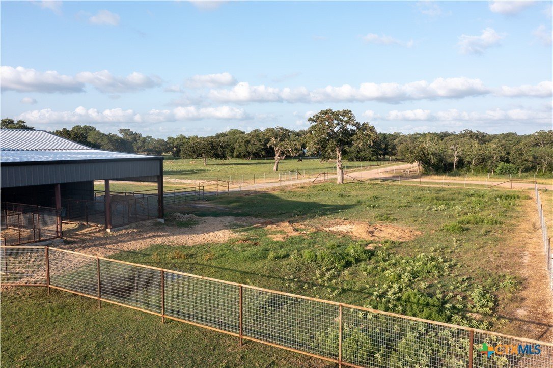 Welcome to 206 Deer Trail Lane—a stunning custom barndominium on 1.72 acres in Goliad, Texas, offering the perfect blend of country lifestyle and modern luxury. Built in 2019, this 4-bedroom, 3-bath home features an open-concept layout, soaring vaulted wood ceilings, and durable vinyl plank flooring throughout. The heart of the home is the gourmet kitchen with a large island, granite countertops, double ovens, farmhouse-style cabinetry, and a walk-in pantry with a custom wood door. The spacious living area flows perfectly for everyday comfort or entertaining guests. Retreat to the spa-like master bath, complete with a walk-in dual-entry shower with multiple rain heads, stunning tile work, a large soaking tub, custom niches, and pebble stone flooring—designed for both luxury and relaxation. Outside, enjoy the oversized ~2,000 sq ft covered back porch and impressive 30x40 shop/barn, which includes a 15x9 tack room, 15x9 loft, and 36x40 lean-to. The four 15x15 stalls can be converted into two oversized 15x30 stalls, with concrete sidewalks for easy care and access. Additional highlights include asphalt parking, fenced areas, and a thoughtful layout perfect for livestock, horses, or outdoor hobbies. This move-in-ready home offers space, functionality, and style in a peaceful setting.