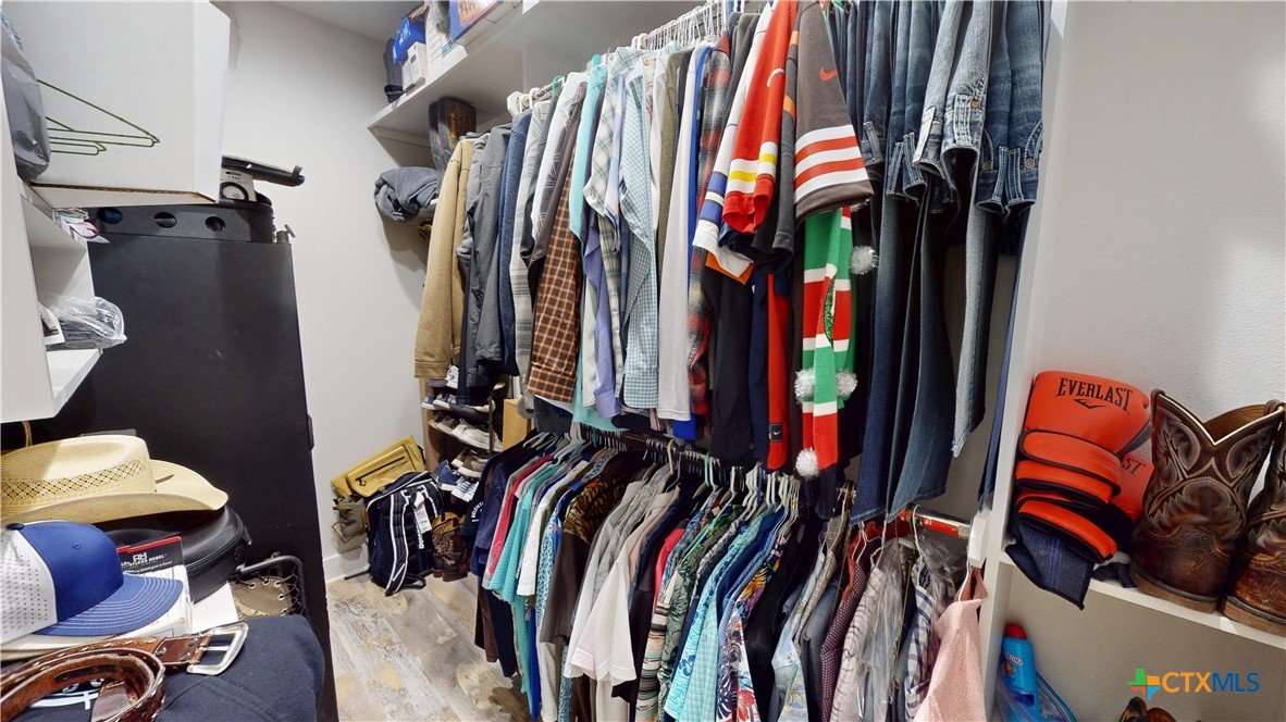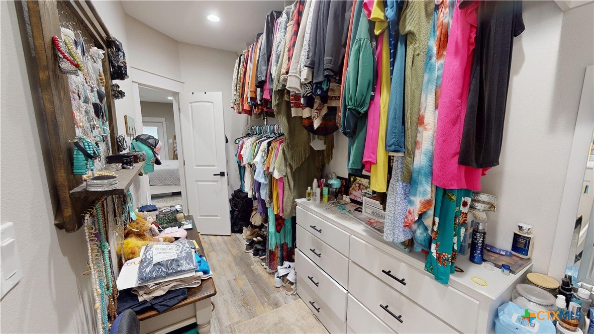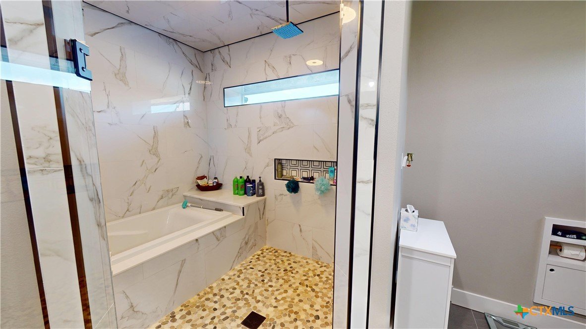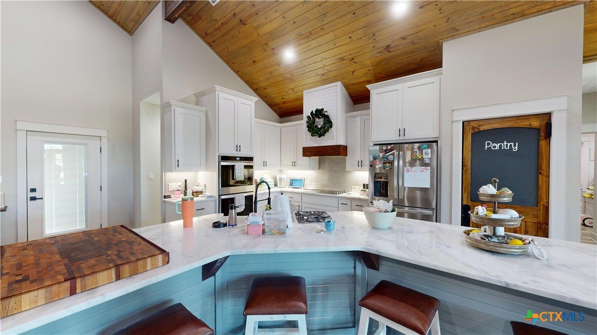 Welcome to 206 Deer Trail Lane—a stunning custom barndominium on 1.72 acres in Goliad, Texas, offering the perfect blend of country lifestyle and modern luxury. Built in 2019, this 4-bedroom, 3-bath home features an open-concept layout, soaring vaulted wood ceilings, and durable vinyl plank flooring throughout. The heart of the home is the gourmet kitchen with a large island, granite countertops, double ovens, farmhouse-style cabinetry, and a walk-in pantry with a custom wood door. The spacious living area flows perfectly for everyday comfort or entertaining guests. Retreat to the spa-like master bath, complete with a walk-in dual-entry shower with multiple rain heads, stunning tile work, a large soaking tub, custom niches, and pebble stone flooring—designed for both luxury and relaxation. Outside, enjoy the oversized ~2,000 sq ft covered back porch and impressive 30x40 shop/barn, which includes a 15x9 tack room, 15x9 loft, and 36x40 lean-to. The four 15x15 stalls can be converted into two oversized 15x30 stalls, with concrete sidewalks for easy care and access. Additional highlights include asphalt parking, fenced areas, and a thoughtful layout perfect for livestock, horses, or outdoor hobbies. This move-in-ready home offers space, functionality, and style in a peaceful setting.