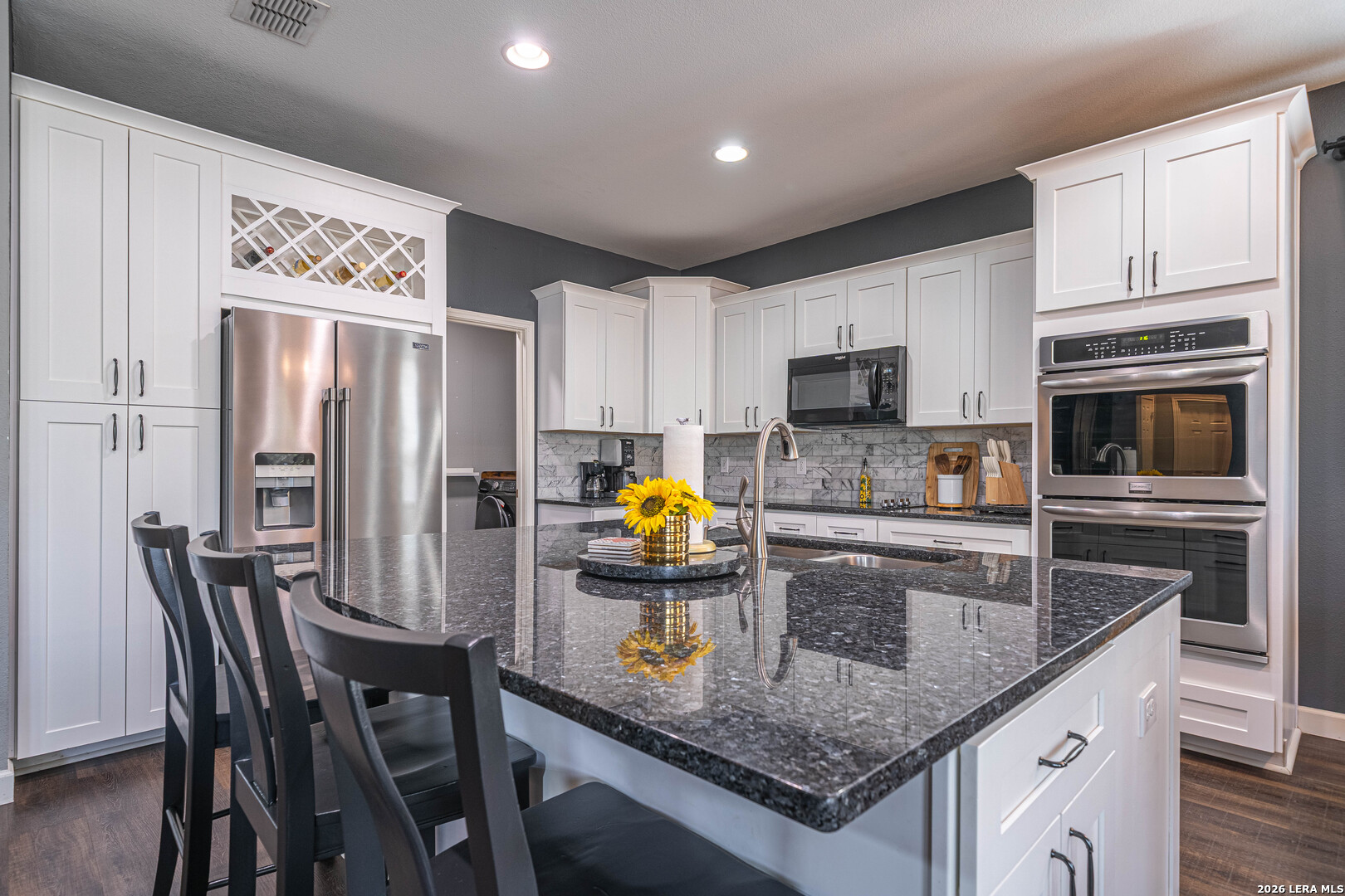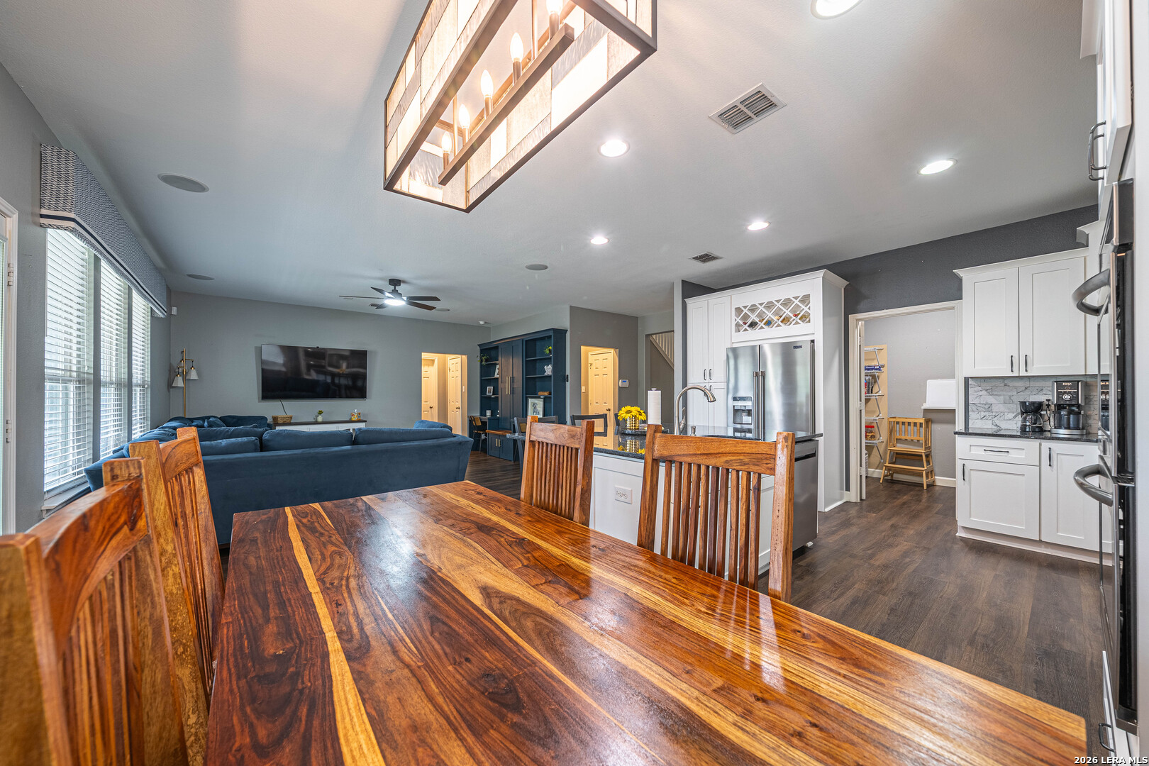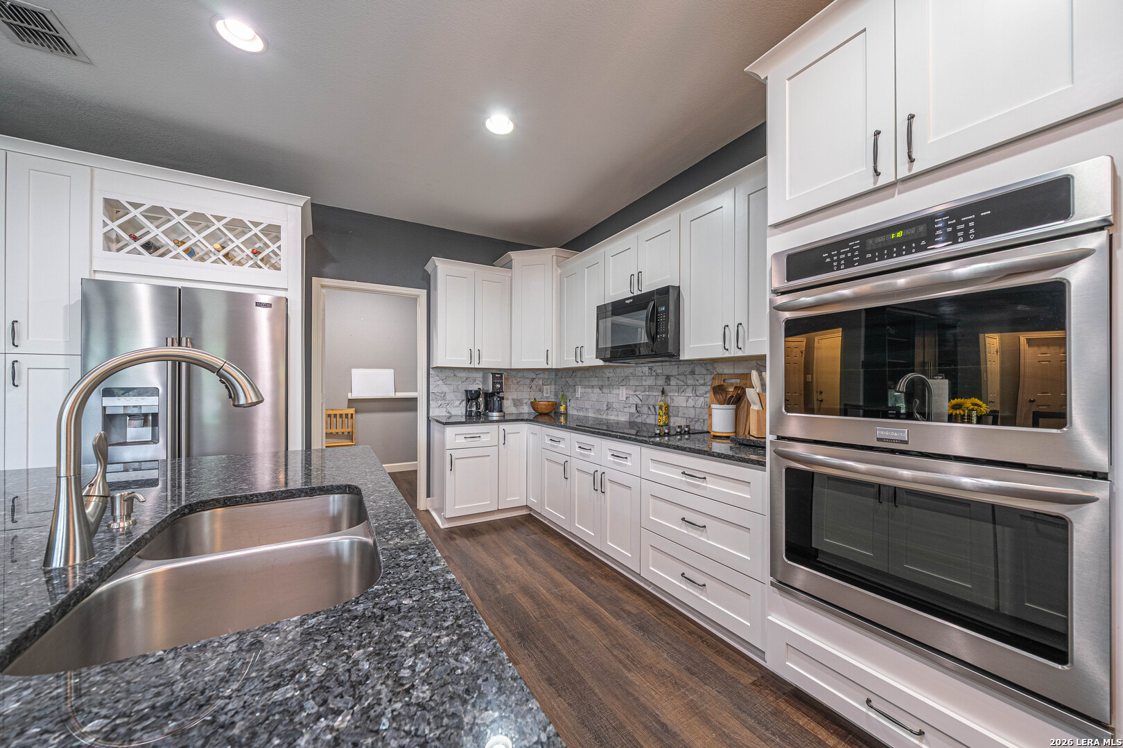 Tucked away on a quiet cul-de-sac, this thoughtfully designed home offers the perfect blend of modern style, space, and functionality. From the moment you walk in, you're greeted with an inviting layout that's ideal for both everyday living and entertaining. At the heart of the home is a stunning white kitchen that truly stands out featuring a large island perfect for gathering, a built-in wine rack, and plenty of space for prepping, hosting, and making memories. The kitchen flows seamlessly into the living and dining areas, creating that open, connected feel today's buyers love. A dedicated office with a trendy barn door sits downstairs, offering the perfect work-from-home setup or flex space. You'll also find a full bathroom on the main level ideal for guests or multi-generational living. Upstairs, the home continues to impress with a spacious loft that can serve as a game room, media space, or second living area. The primary suite provides a relaxing retreat, while three additional generously sized bedrooms ensure there's room for everyone. With its smart layout, stylish finishes, and location in a peaceful cul-de-sac, this home offers the space you need with the vibe you want all in a convenient Cibolo location close to shopping, dining, and major roadways. This is the one that just feels right the moment you walk in.