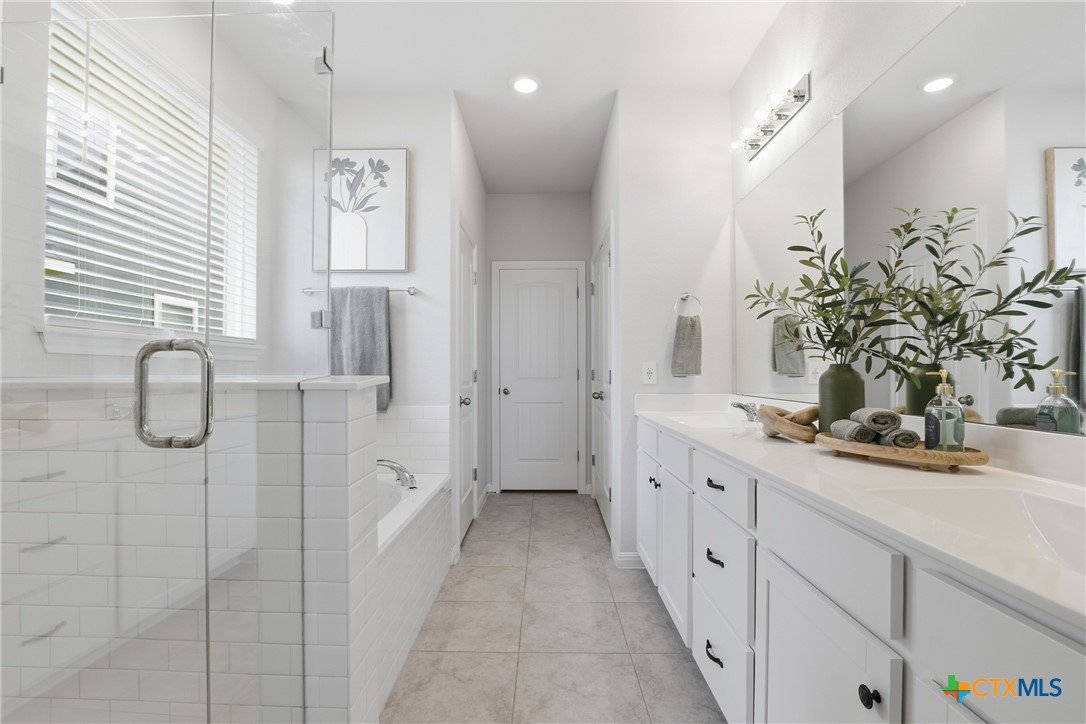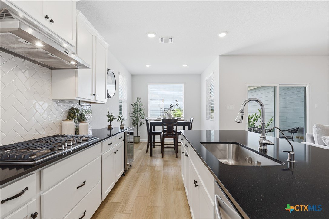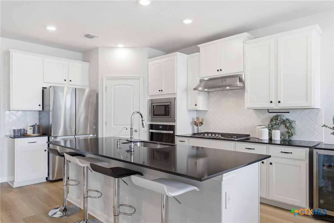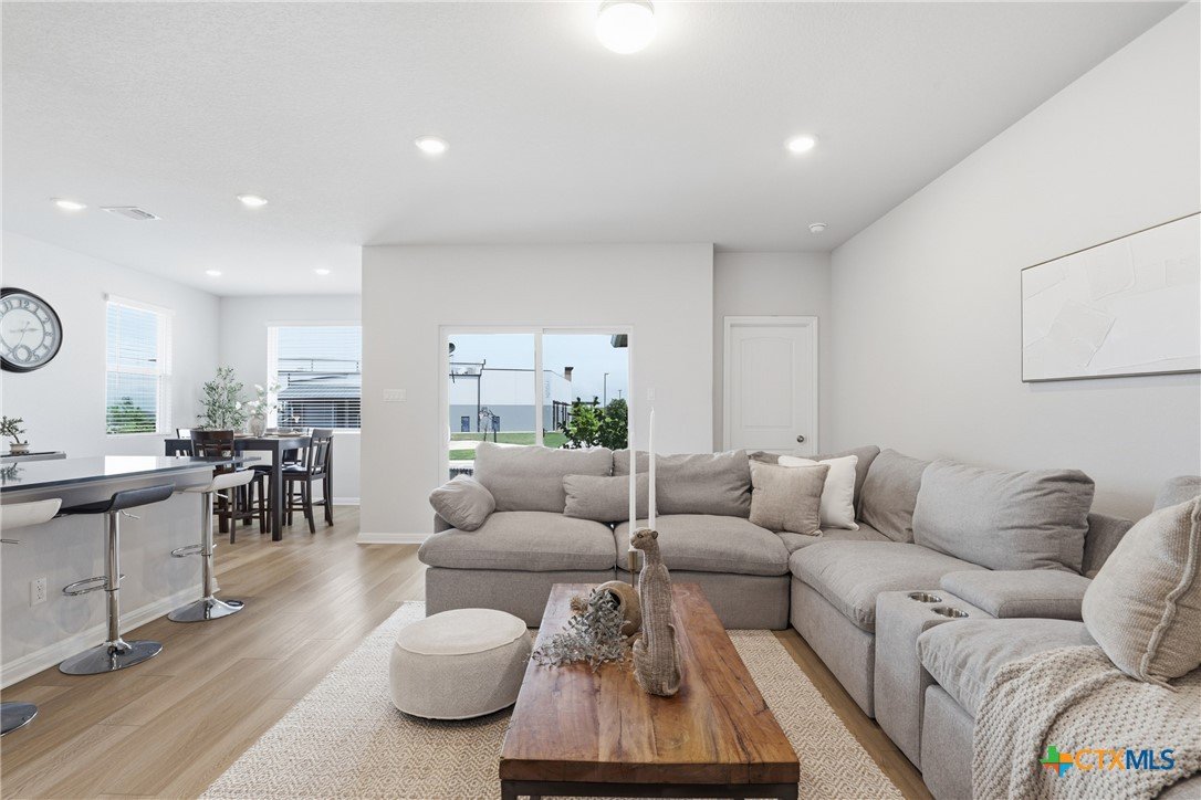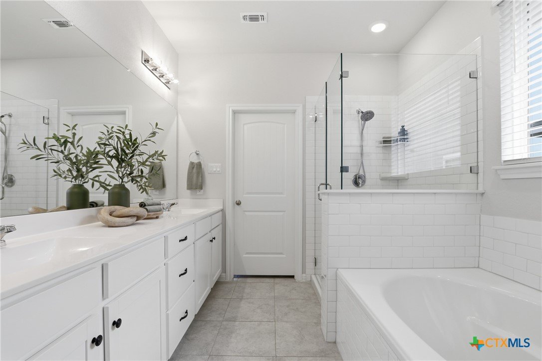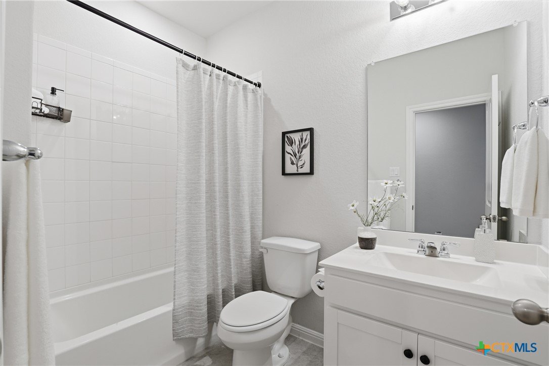 Gorgeous, one-story home that is less than 3 years old and nestled within a boutique-style community, this thoughtfully upgraded home offers a rare combination of curated design and everyday functionality. Enjoy morning coffee on the covered patio watching the sunrise! Luxury vinyl plank flooring runs throughout the entire home—no carpet—offering both durability and style. The kitchen stands out with 42” white shaker-style cabinetry, sleek black hardware, Silestone countertops, a large center island with a stainless steel sink, and a full suite of Energy Star Whirlpool appliances, including a 5-burner gas cooktop. The spacious primary suite provides a private retreat, featuring a walk-in glass shower enclosure, a garden tub, dual vanities, and an oversized linen closet. A split floor plan adds privacy, while a flexible fourth bedroom offers versatility for a variety of uses, such as multi-generational living, hobbies, or an office. Outdoor living is equally inviting with an extended composite deck, covered patio, gas grill hookup, full gutters, sprinkler system, whole house water filtration system and UV disinfection system for City Water, plus attached water softener. Outdoor living is just as impressive with a composite deck, a covered patio, a gas grill hookup, full gutters, and an automated sprinkler system. The 2023 HVAC system, 2023 roof, and 2023 gas water heater provide added peace of mind. Altogether, over $43,000 in upgrades and improvements have been invested into the home, creating a truly move-in-ready opportunity! A convenient location, close to: SH45/SH 130, shopping, restaurants, gyms, and top-rated schools! A quick 20-30 minutes to downtown Austin, the airport, located on the border of Round Rock and Pflugerville with Georgetown only a few minutes away. Don't miss this one!