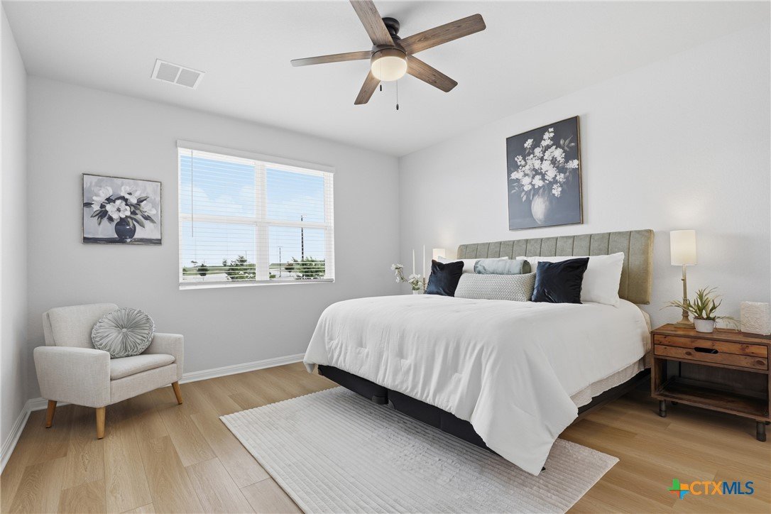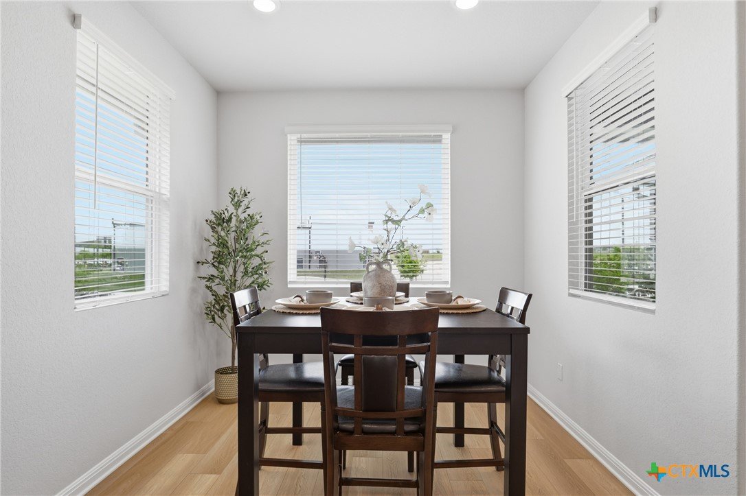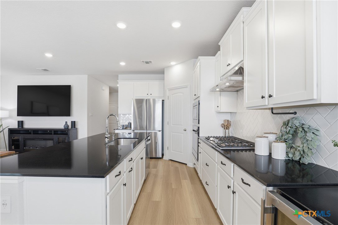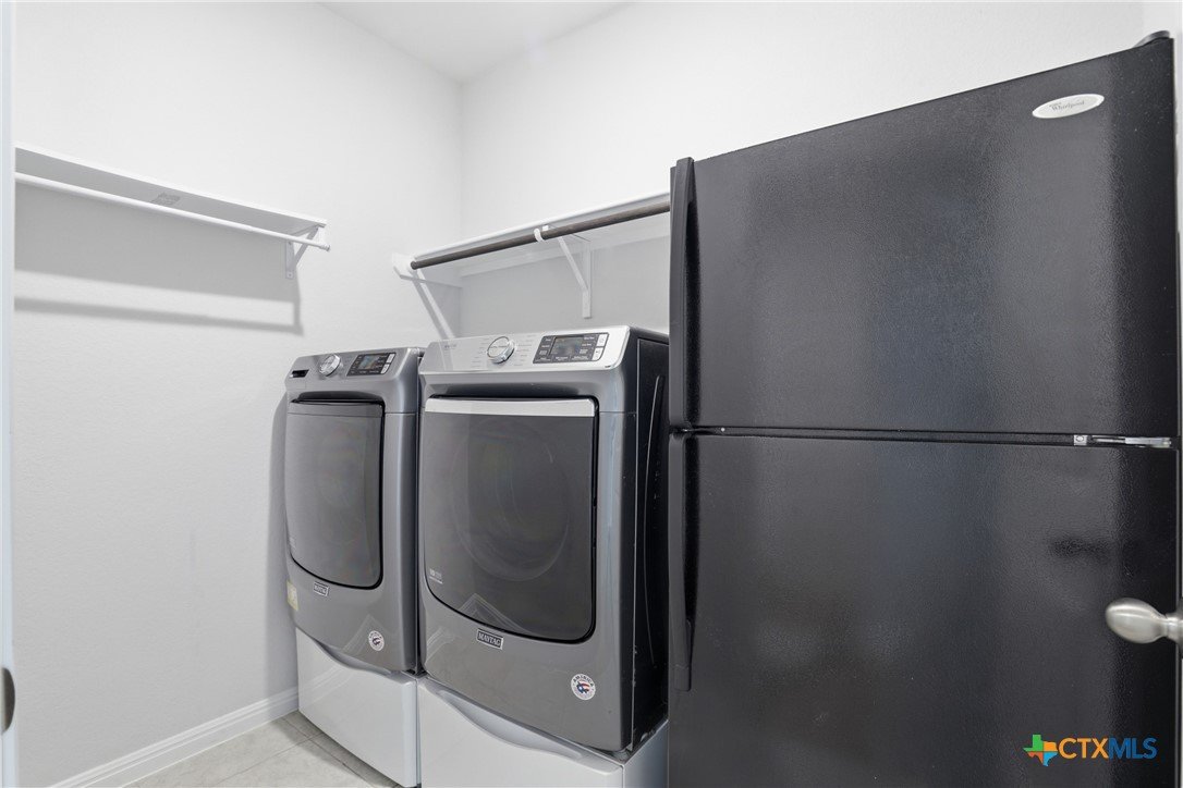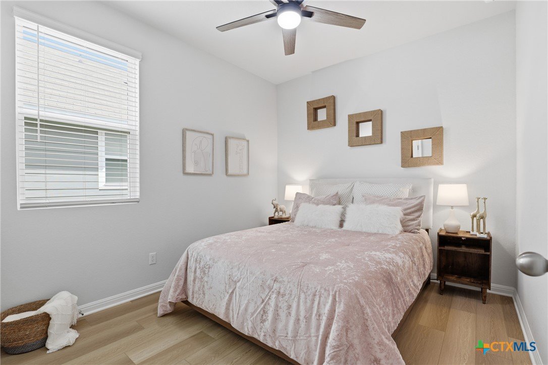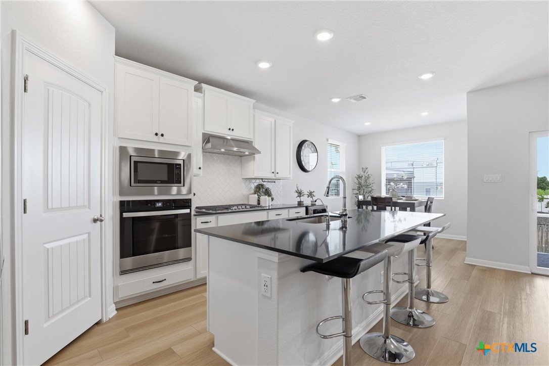 Gorgeous, one-story home that is less than 3 years old and nestled within a boutique-style community, this thoughtfully upgraded home offers a rare combination of curated design and everyday functionality. Enjoy morning coffee on the covered patio watching the sunrise! Luxury vinyl plank flooring runs throughout the entire home—no carpet—offering both durability and style. The kitchen stands out with 42” white shaker-style cabinetry, sleek black hardware, Silestone countertops, a large center island with a stainless steel sink, and a full suite of Energy Star Whirlpool appliances, including a 5-burner gas cooktop. The spacious primary suite provides a private retreat, featuring a walk-in glass shower enclosure, a garden tub, dual vanities, and an oversized linen closet. A split floor plan adds privacy, while a flexible fourth bedroom offers versatility for a variety of uses, such as multi-generational living, hobbies, or an office. Outdoor living is equally inviting with an extended composite deck, covered patio, gas grill hookup, full gutters, sprinkler system, whole house water filtration system and UV disinfection system for City Water, plus attached water softener. Outdoor living is just as impressive with a composite deck, a covered patio, a gas grill hookup, full gutters, and an automated sprinkler system. The 2023 HVAC system, 2023 roof, and 2023 gas water heater provide added peace of mind. Altogether, over $43,000 in upgrades and improvements have been invested into the home, creating a truly move-in-ready opportunity! A convenient location, close to: SH45/SH 130, shopping, restaurants, gyms, and top-rated schools! A quick 20-30 minutes to downtown Austin, the airport, located on the border of Round Rock and Pflugerville with Georgetown only a few minutes away. Don't miss this one!