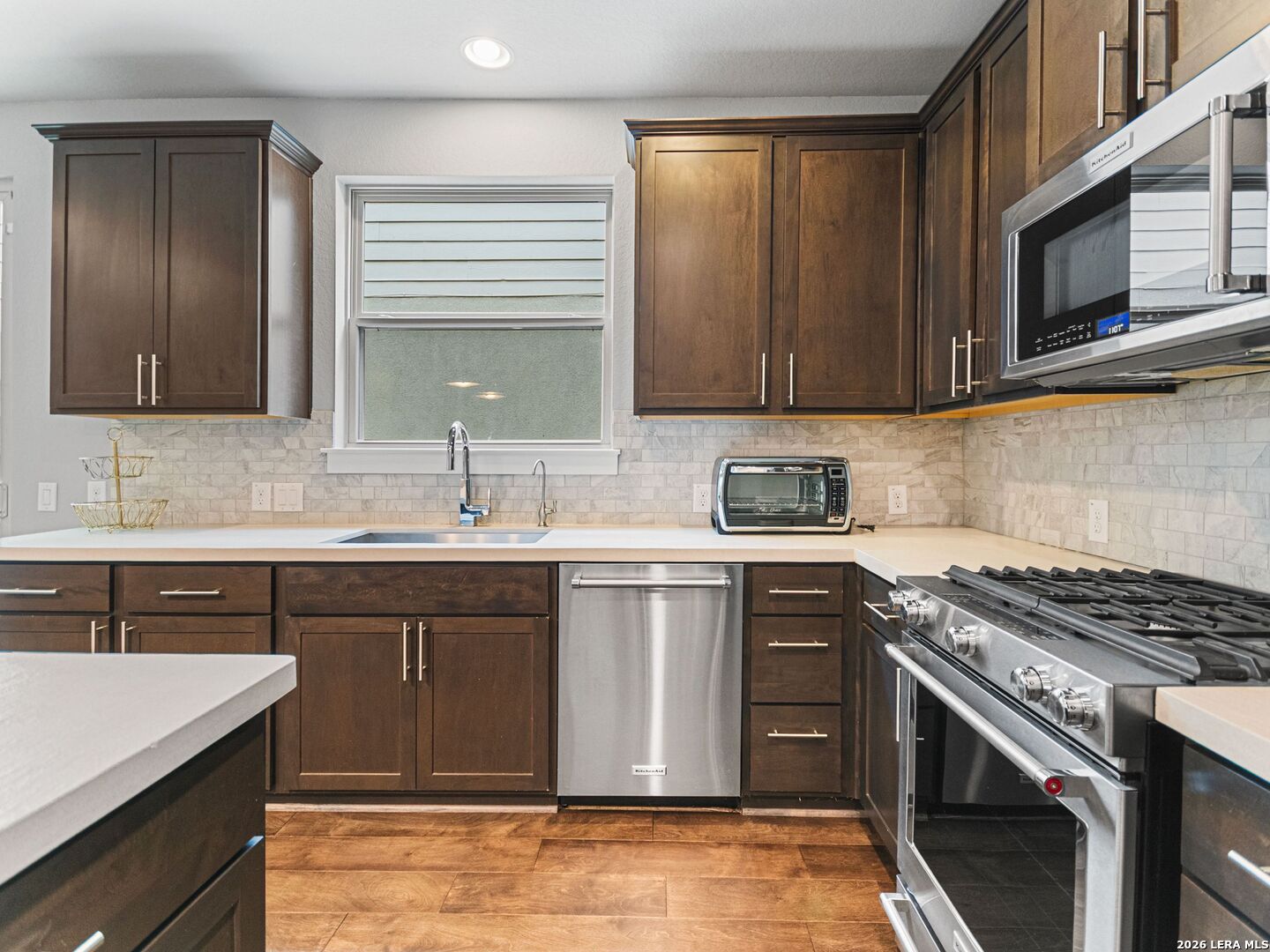 Don't miss this opportunity to own a 3 bedroom, 2.5 bathroom home in this quaint neighborhood of Ridgecrest Villas which is located in AHISD. There is a centrally located gated courtyard and a private rear entry to a 2 car garage. Thoughtful details throughout the home creating a welcoming and comfortable atmosphere. Open floorpan with attractive wood flooring and a well designed kitchen with stainless appliances including a 5 burner gas cooktop. Also included is rich cabinetry with pull out shelving. Upstairs, you will find a large primary suite that offers a relaxing retreat with a well-appointed en-suite bath and generous closet space. There is a loft and two additional bedrooms that provide flexibility for guests, a home office, or hobbies. Step outside to enjoy the private courtyard setting, ideal for morning coffee or evening gatherings. With its prime location near shopping, and dining. This home offers both convenience and charm in one of the area's most distinctive communities. Unique neighborhood, a community close to everything.
